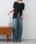 ギャザーデザインが女性らしいシルエットを演出◎二の腕を優しくカバーしてくれるので体形にも効果的です。