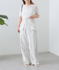 ギャザーデザインが女性らしいシルエットを演出◎二の腕を優しくカバーしてくれるので体形にも効果的です。