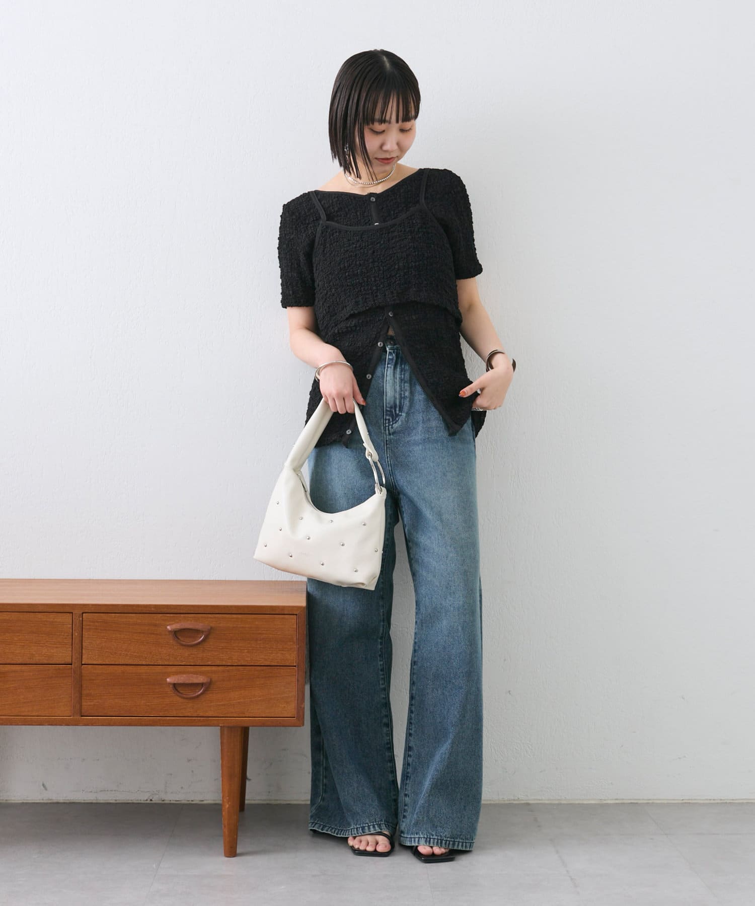 カーデとキャミソールをレイヤードしてこなれ感のある着こなしが叶います♡