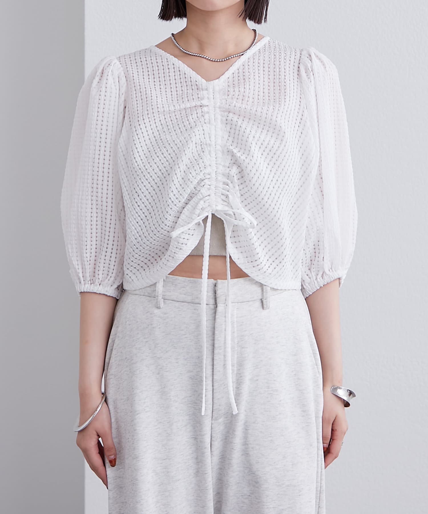 ・フロント部分の目を惹くシャーリングデザインが特別感のあるアイテムです。1枚着るだけで着映え間違いなし♡