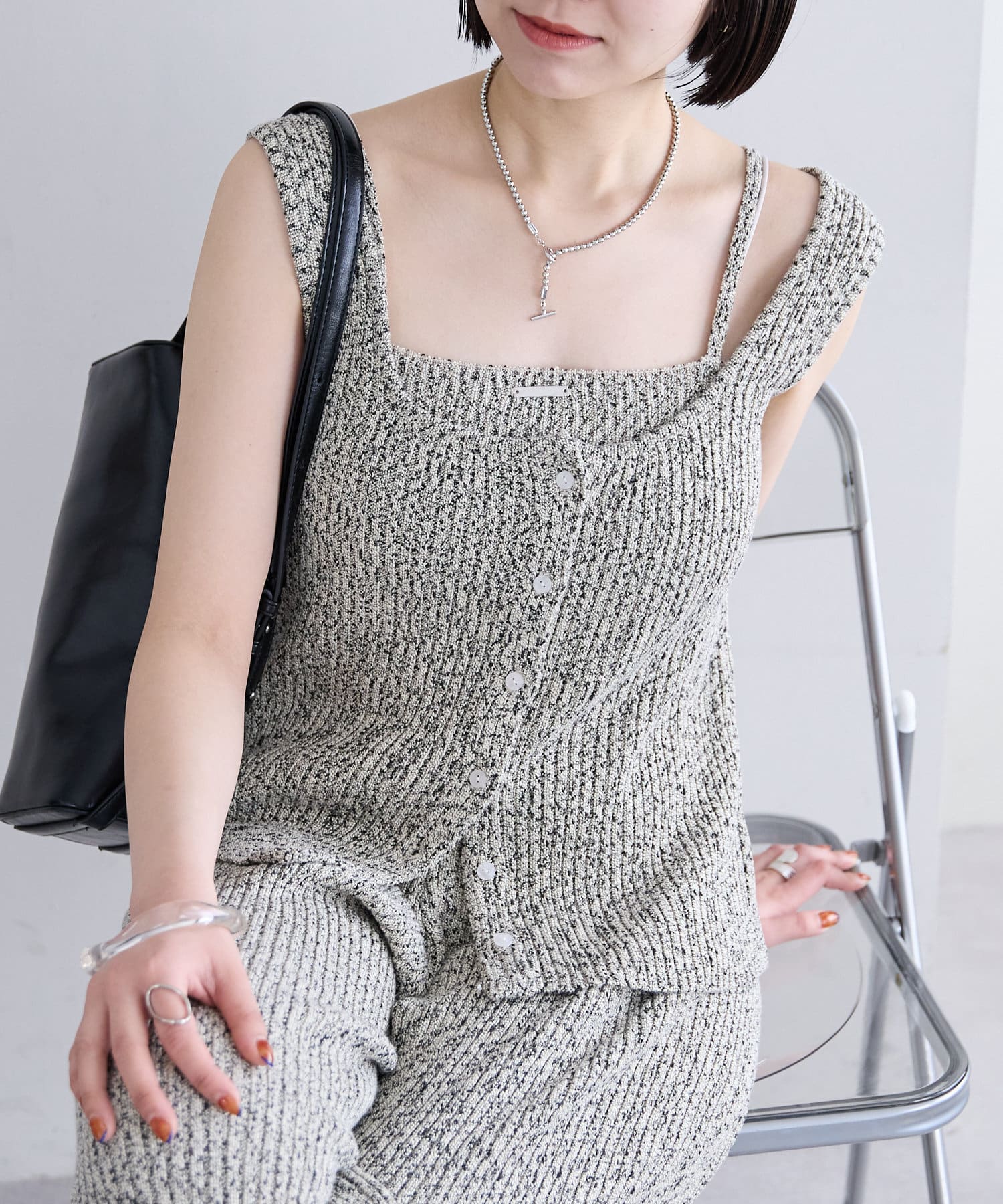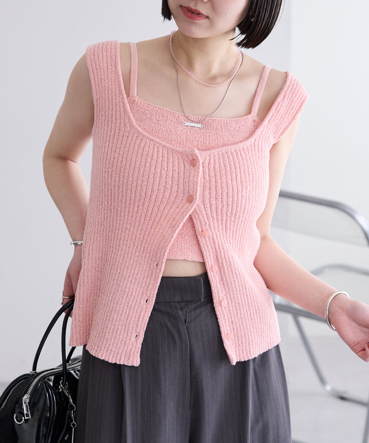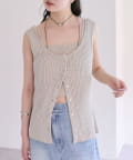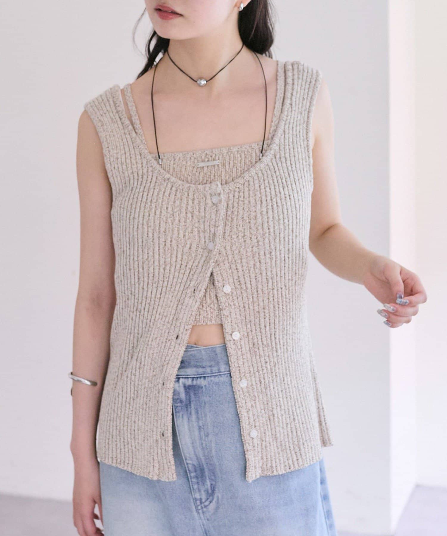 肌触りの良いニット素材を使用したタンクトップとキャミソールがセットになったアイテム。