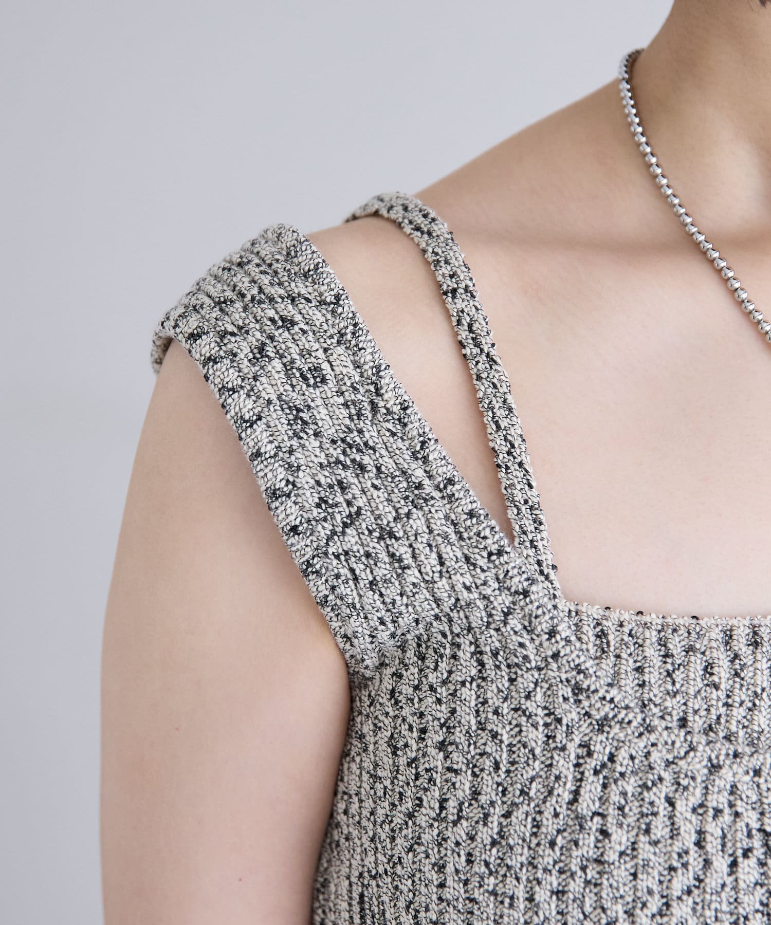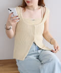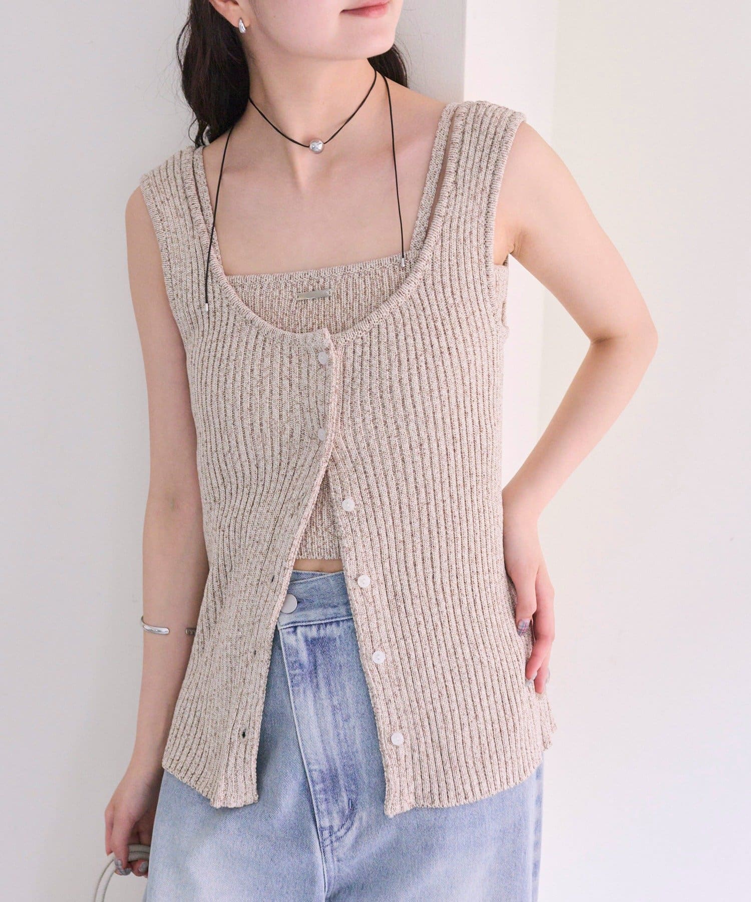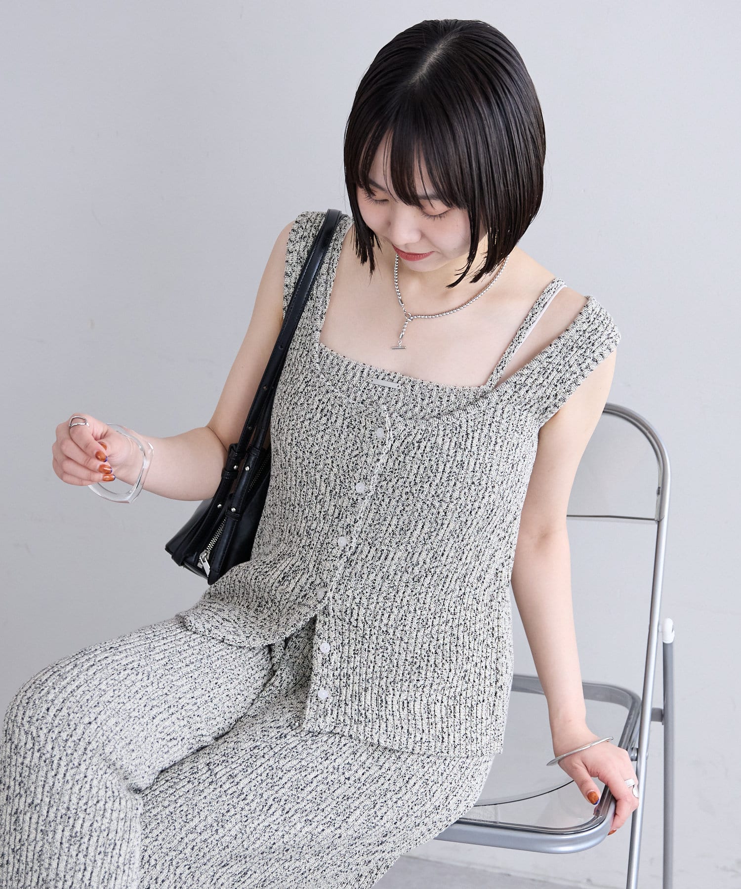 肌触りの良いニット素材を使用したタンクトップとキャミソールがセットになったアイテム。
