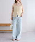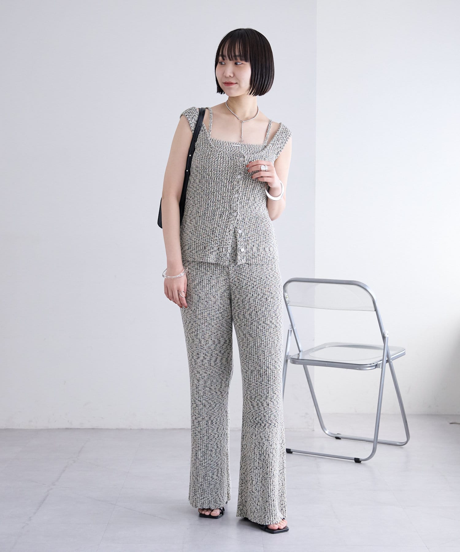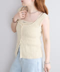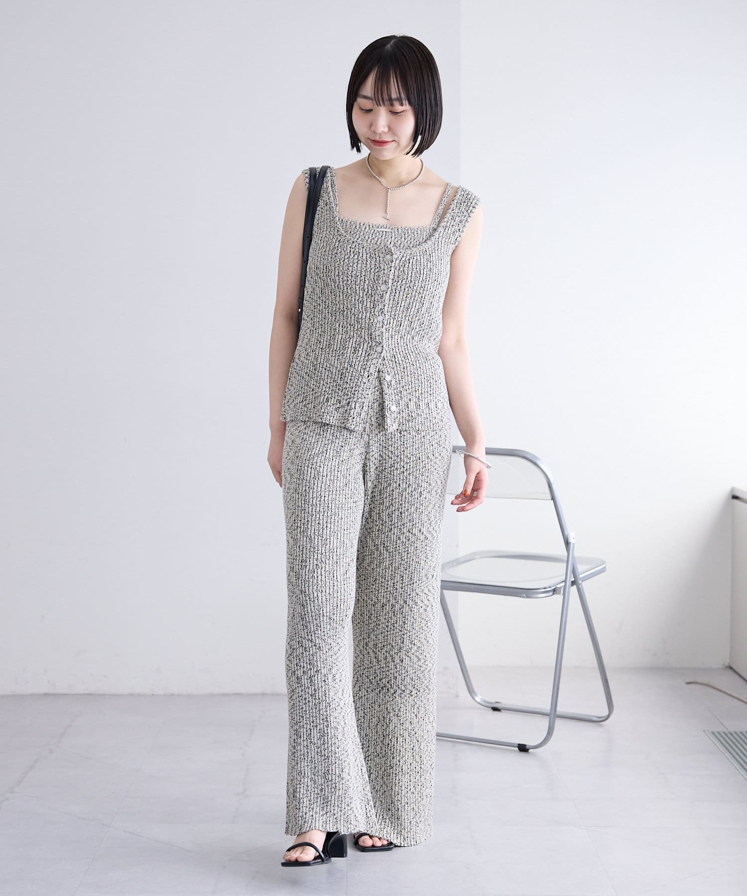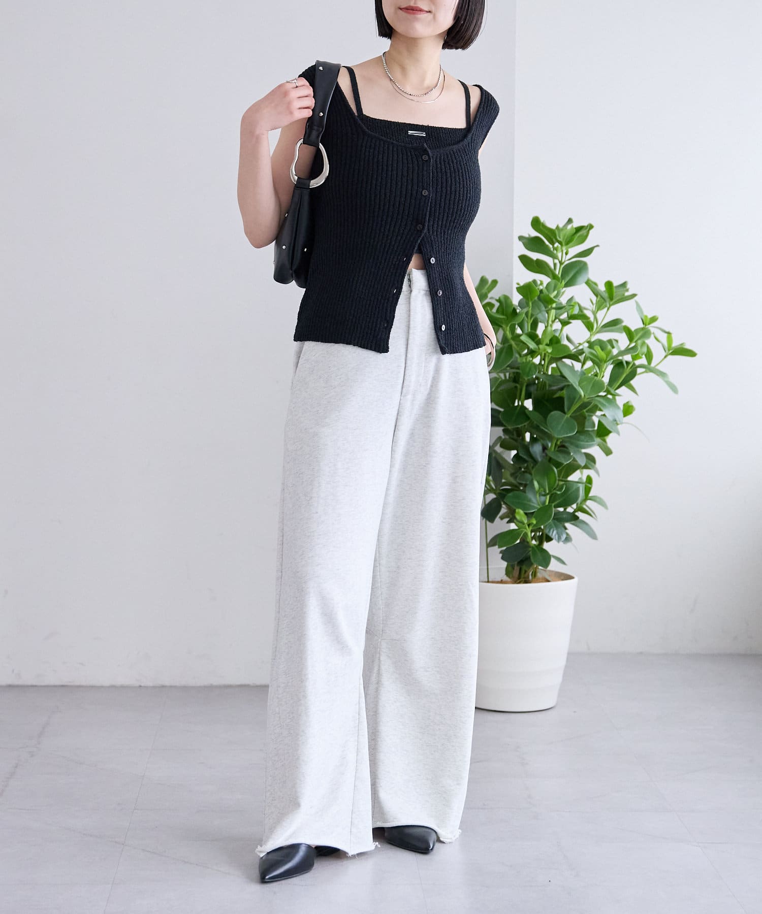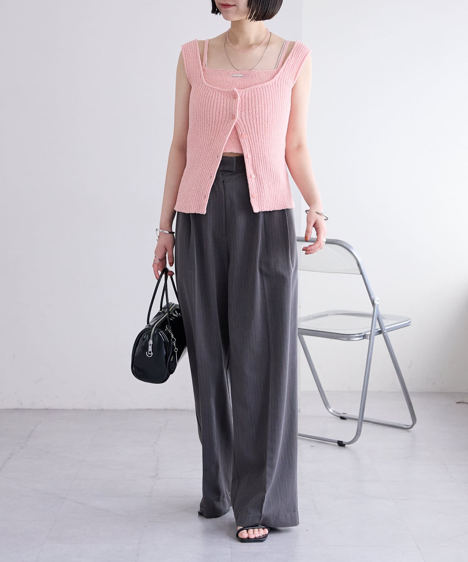 タンクトップはボタンで開け具合を調整でき、キャミソールに重ね着するだけでこなれ感のあるレイヤードスタイルが完成します!