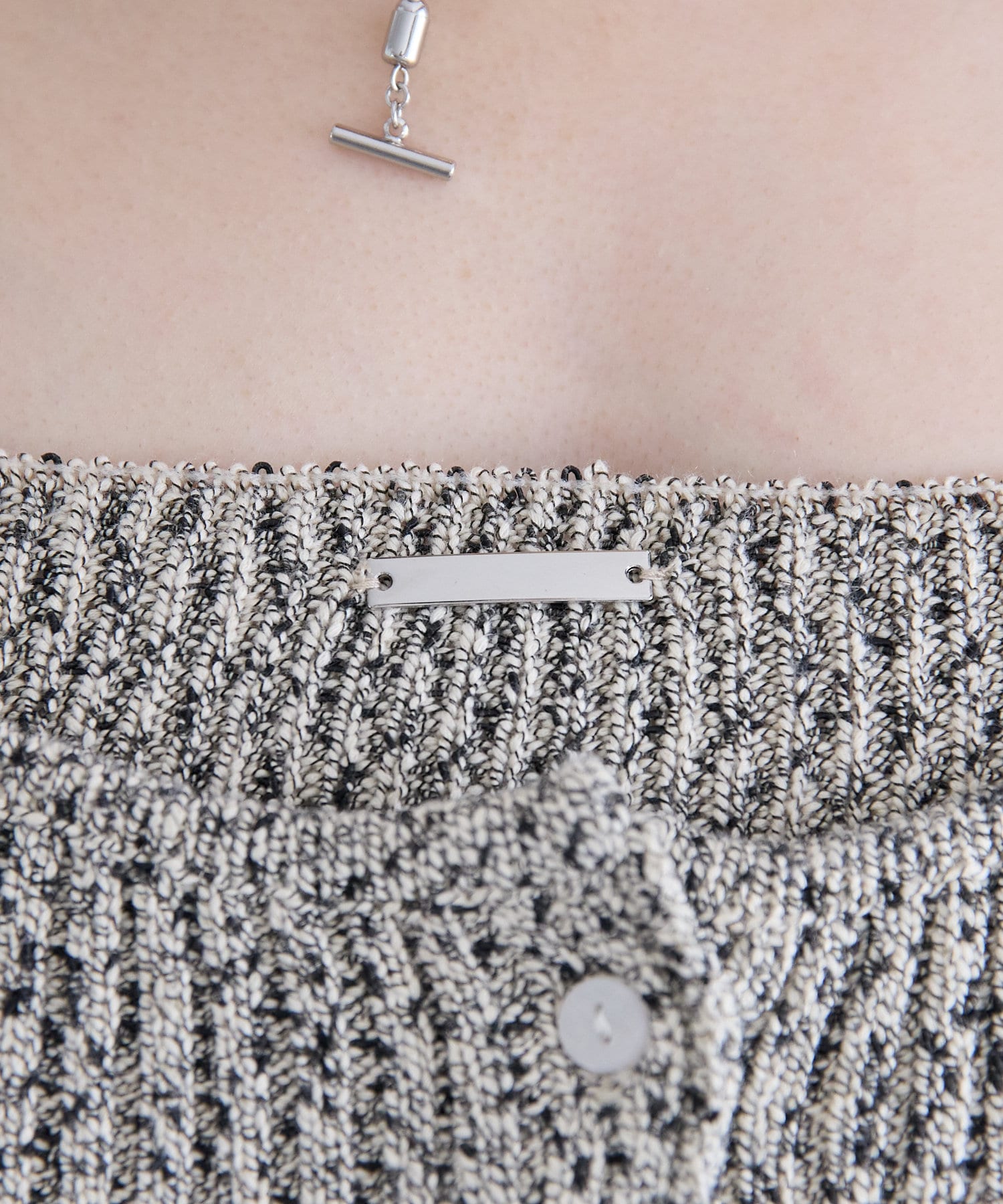 キャミソールの胸元部分のワンポイントプレートがコーデにアクセントをつけてくれます◎