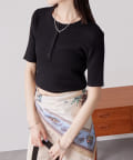 程よく体にフィットするシルエットが女性らしい、ヘンリーネックのリブニット。
