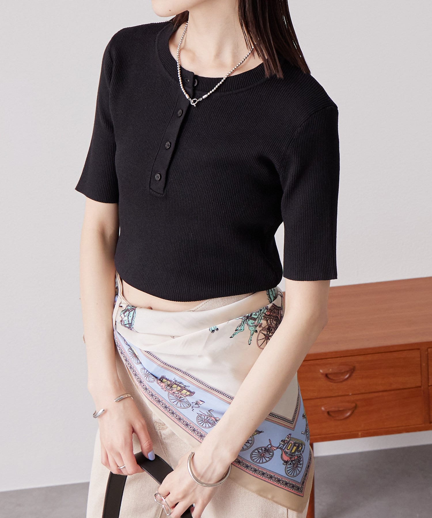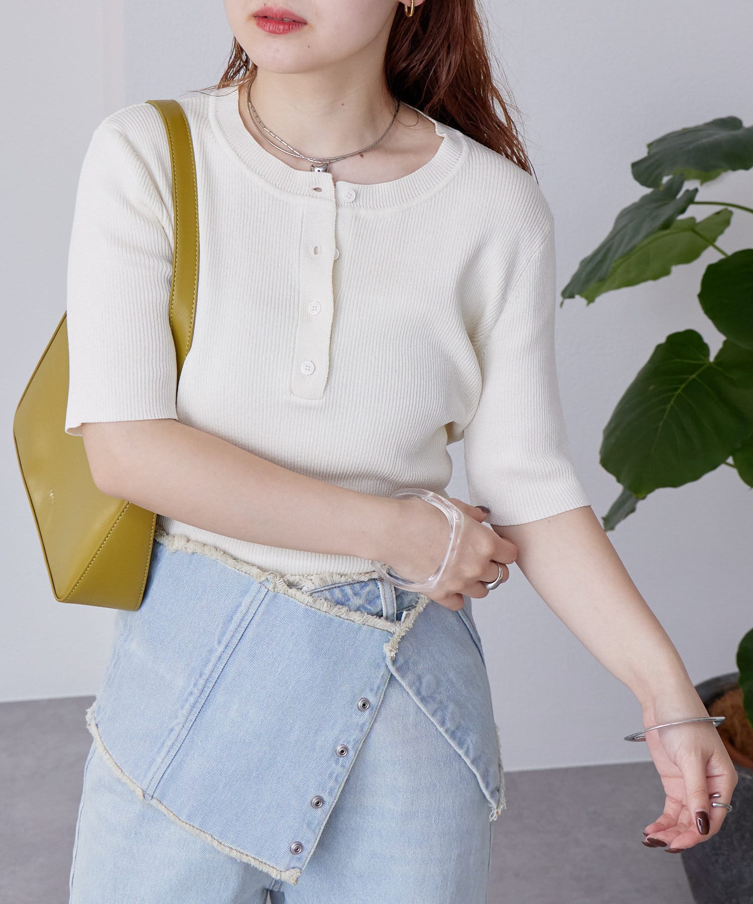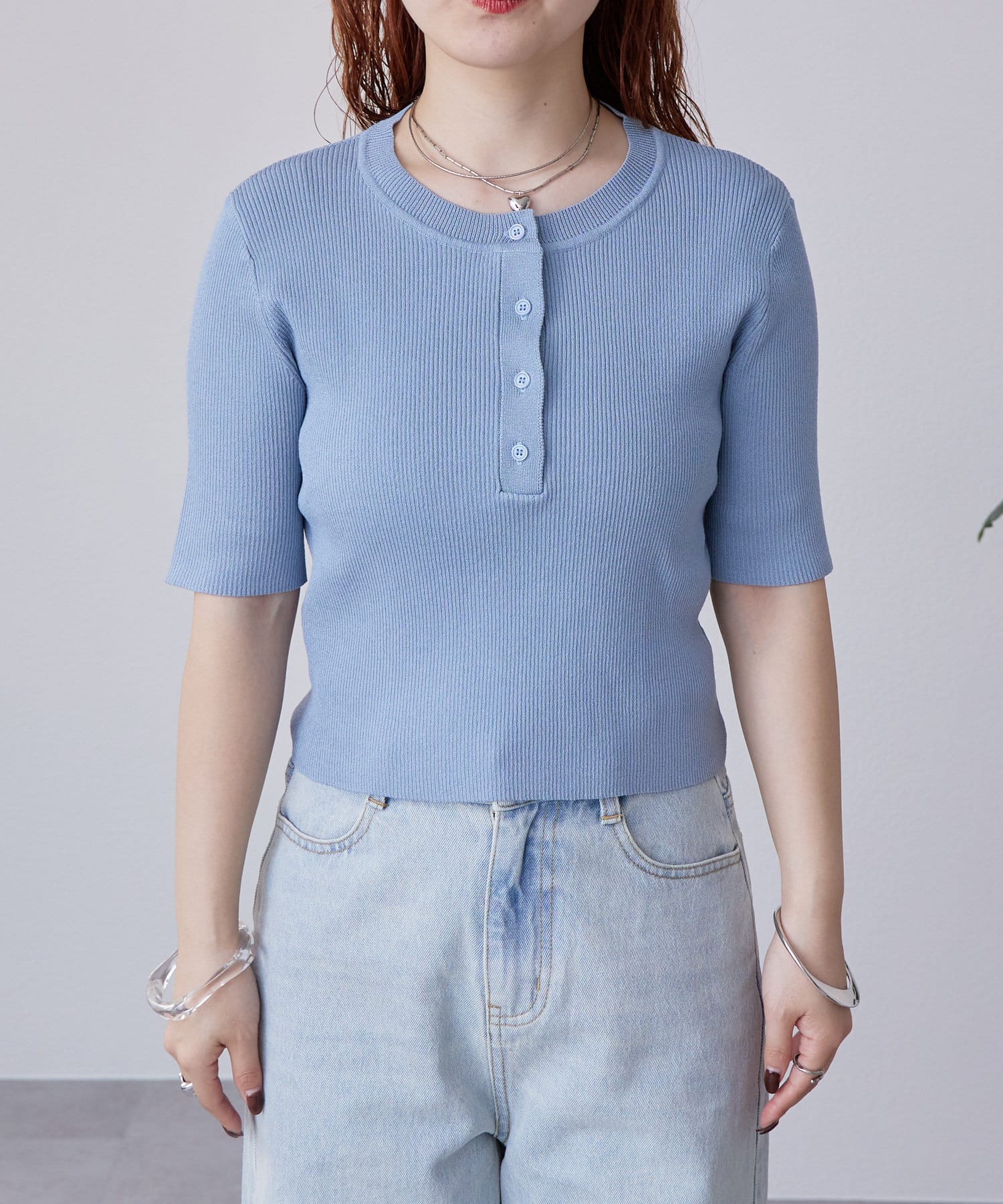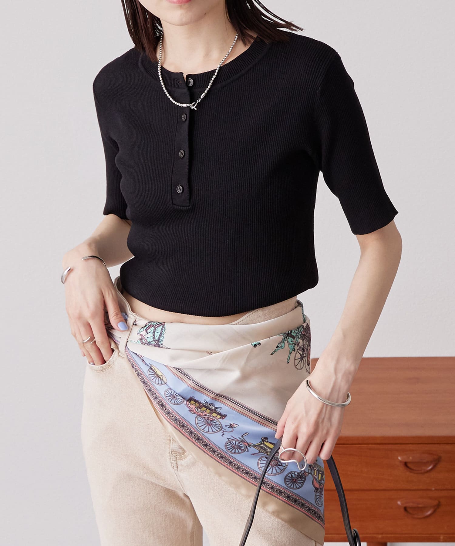 着回し力抜群◎ヘンリーネックのニットの半袖バージョンが登場!