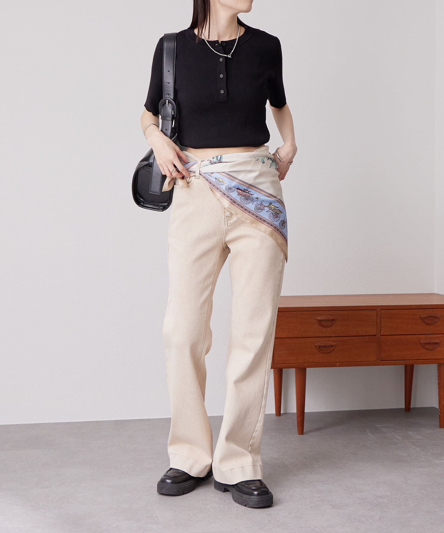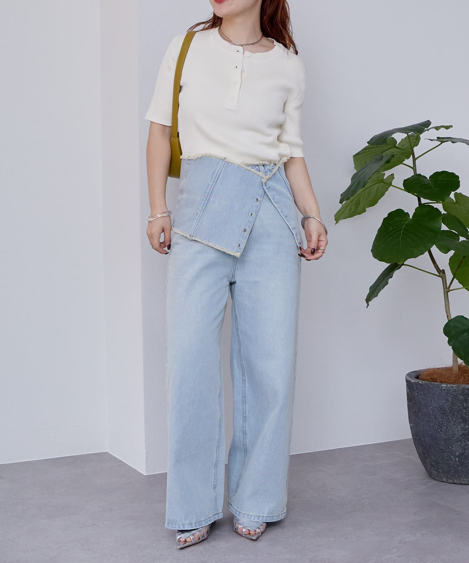 ワイドシルエットのボトムス合わせでバランス良く決まります◎