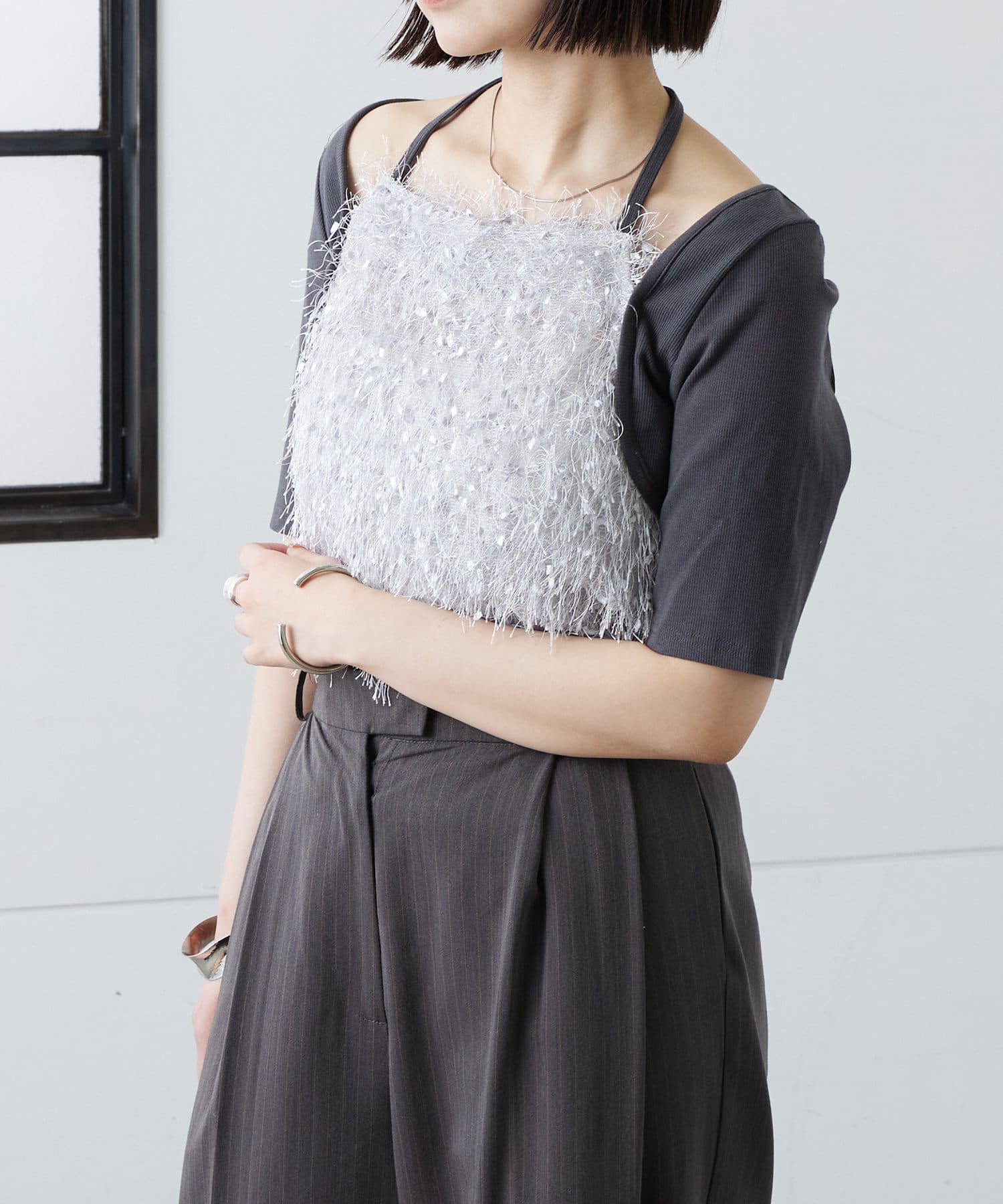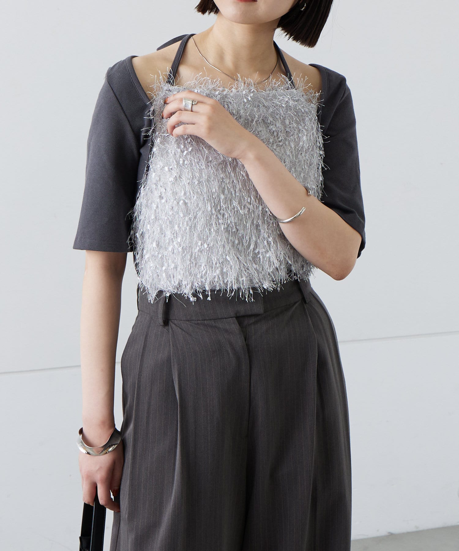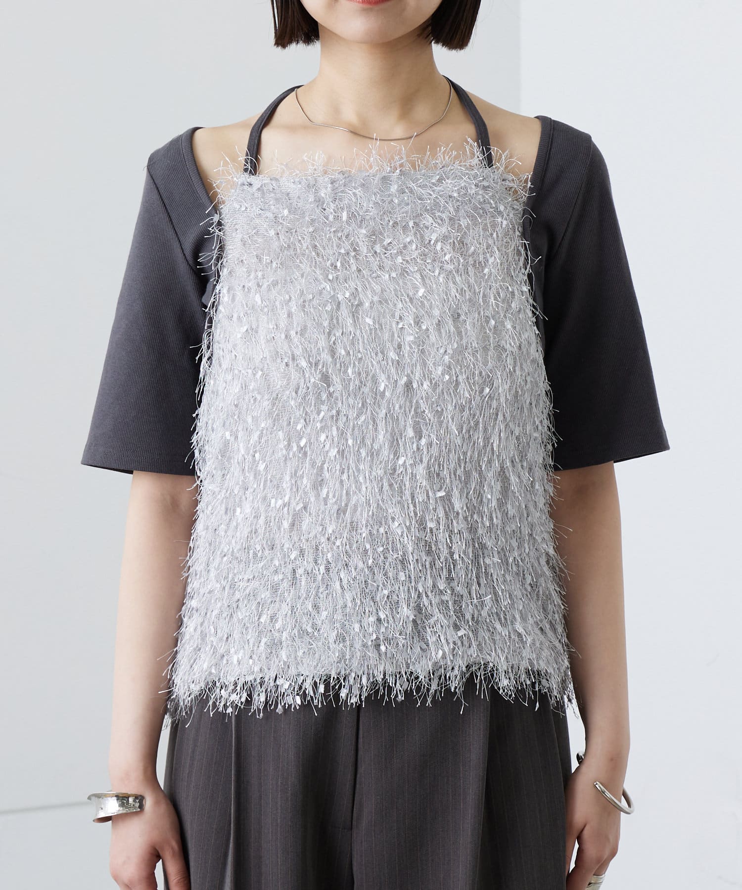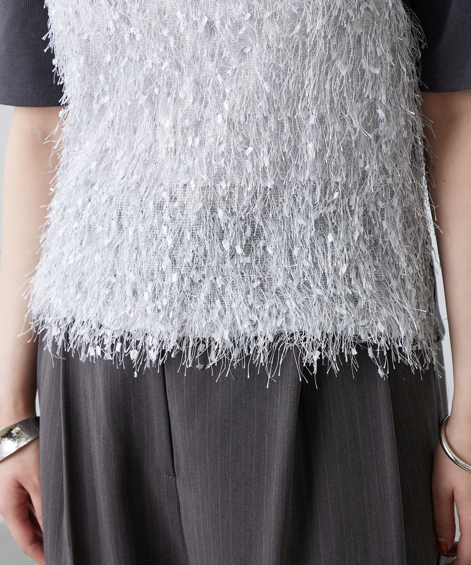 ふわふわのフリンジが目を惹く1枚で存在感のある1枚です♡