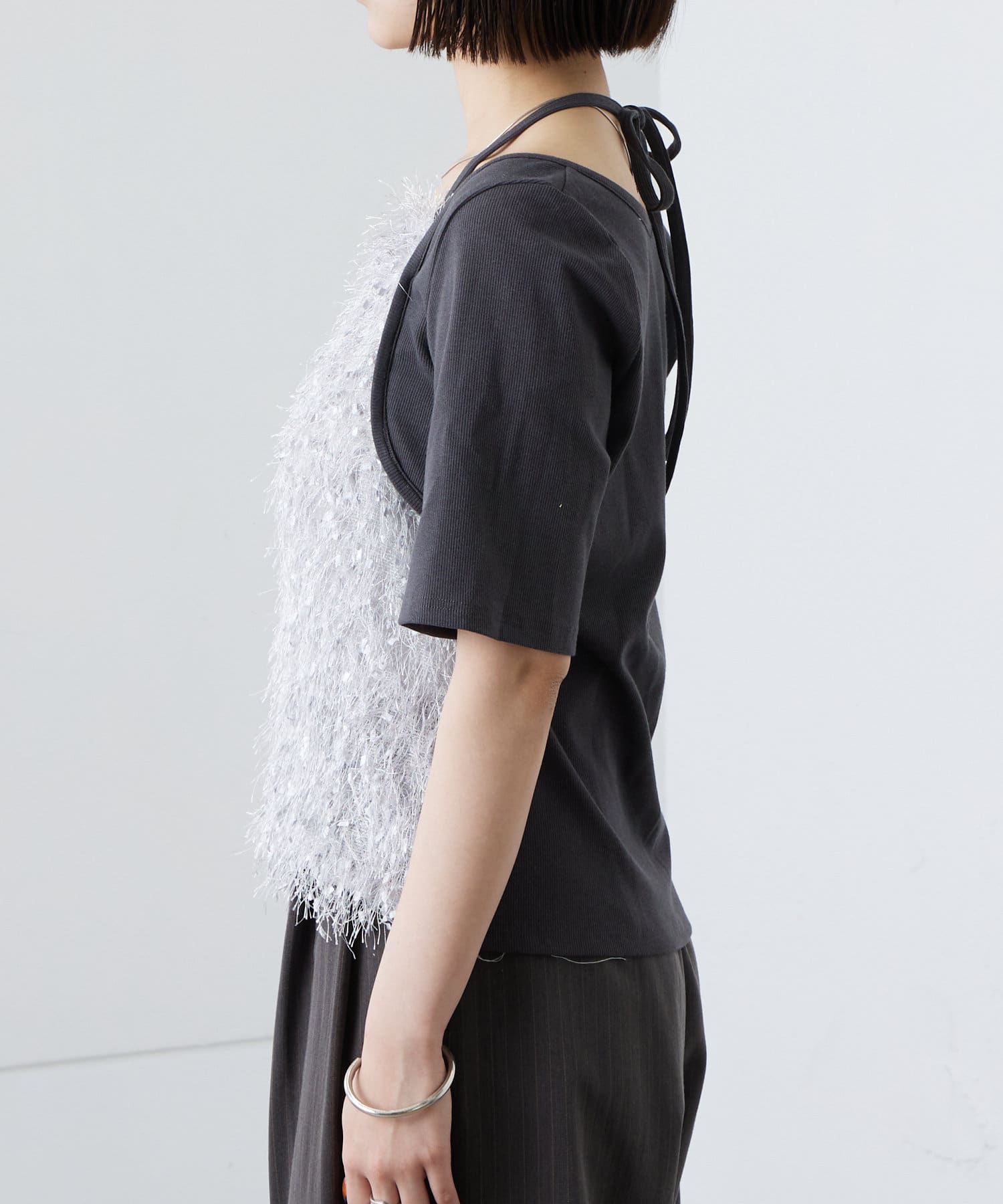1枚で華やかな印象になれる♡フリンジドッキングTシャツ