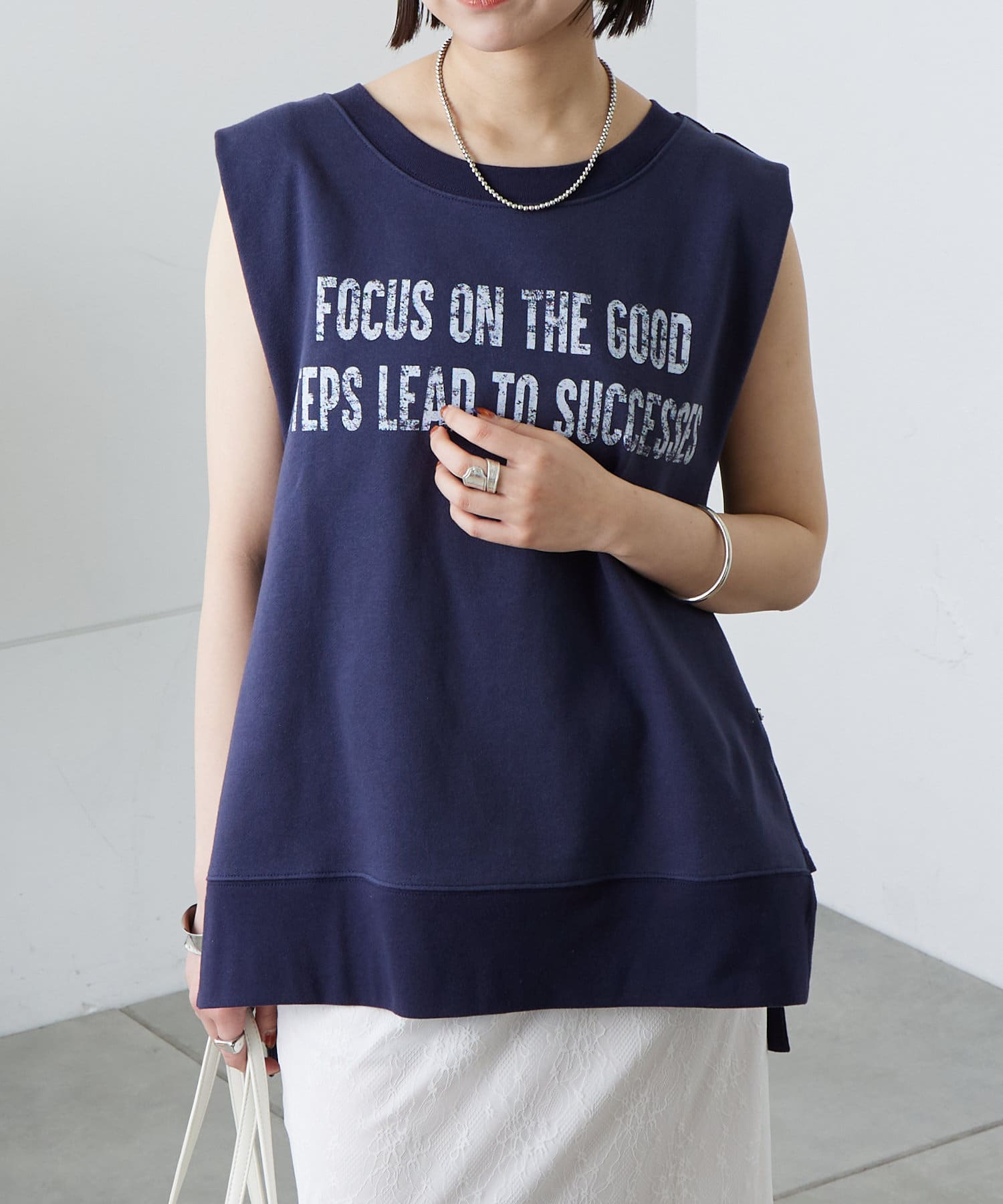 胸元のロゴが、ヴィンテージ感のあるプリントで施されたノースリロゴスウェット。