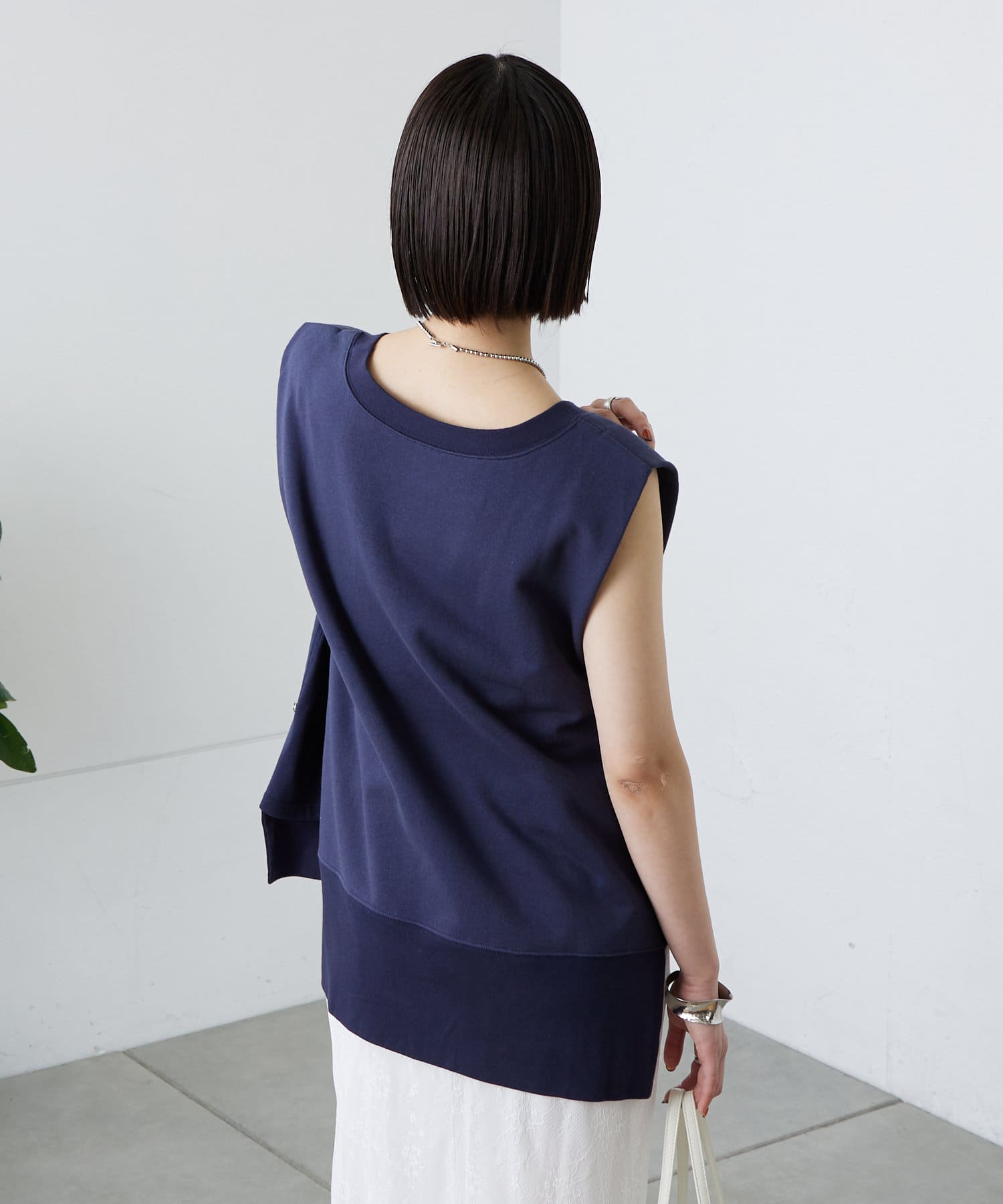 両サイドに2か所スナップボタンが付いているので、お好みでシルエットを変えて着ていただけます◎