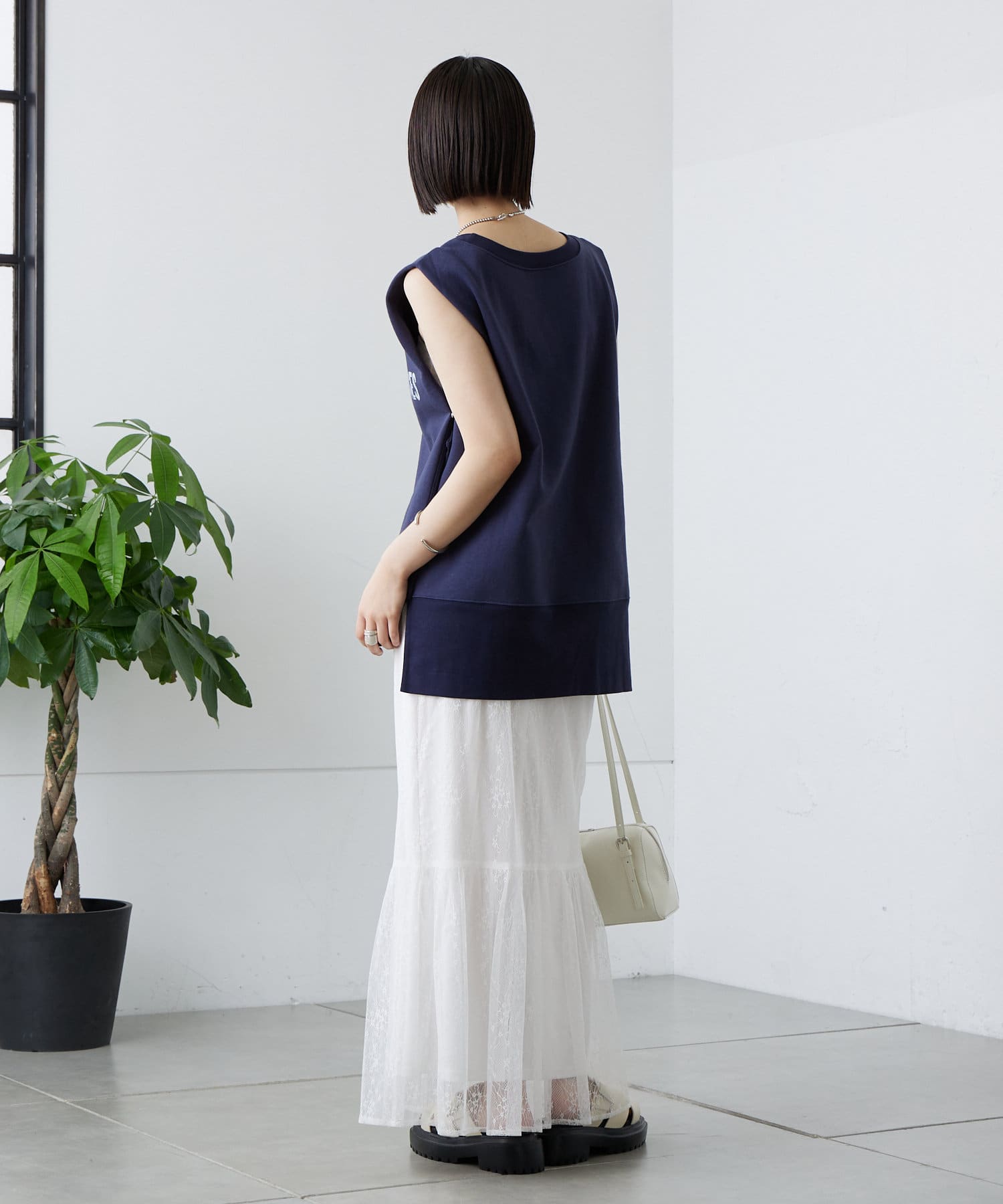 レーススカートやプリーツスカートと合わせて、甘めカジュアルなスタイルに。