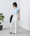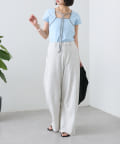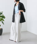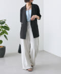 テーパードパンツやワイドパンツと合わせて、上品な着こなしに。足元はパンプスやフラットシューズで女性らしさをプラス◎