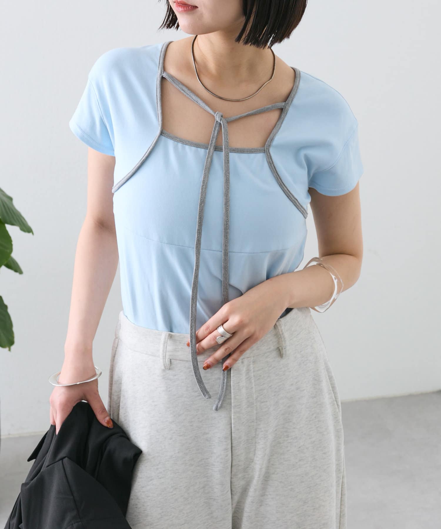 TOP > OUTLET > レディース > トップス > Tシャツ/カットソー > 【mystic】配色チョーカーカットソー