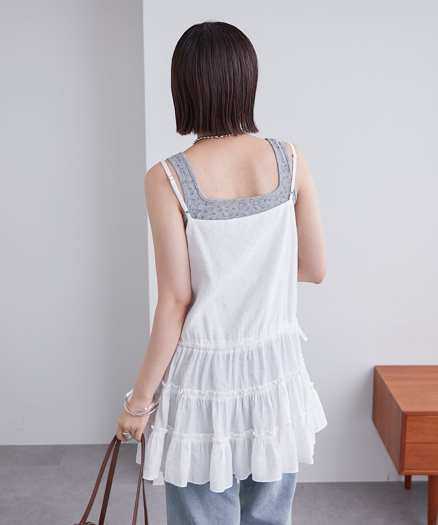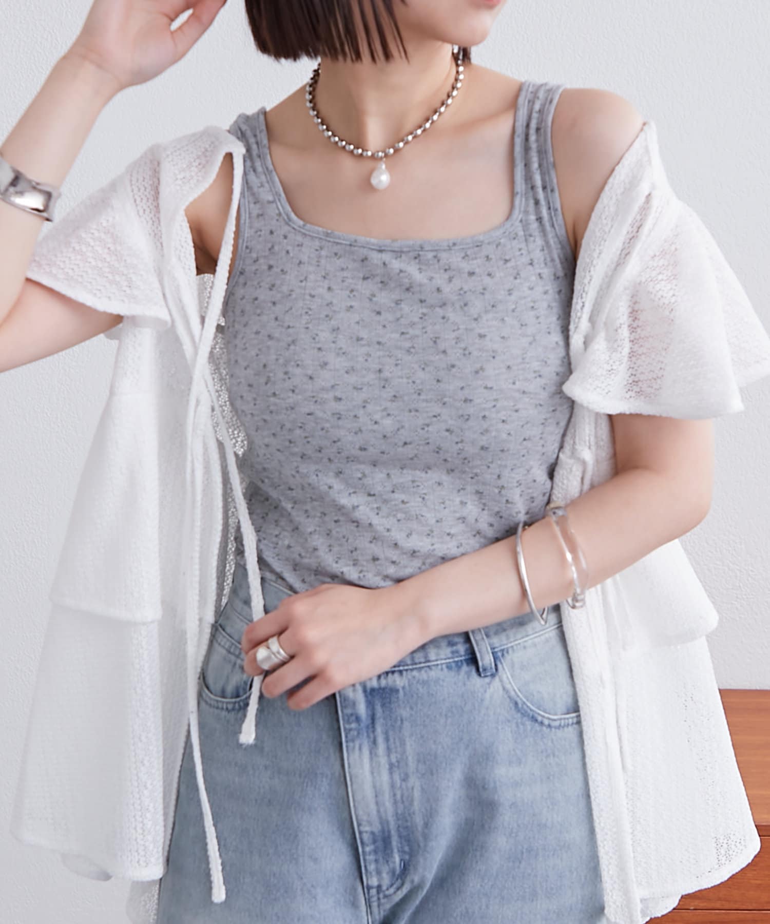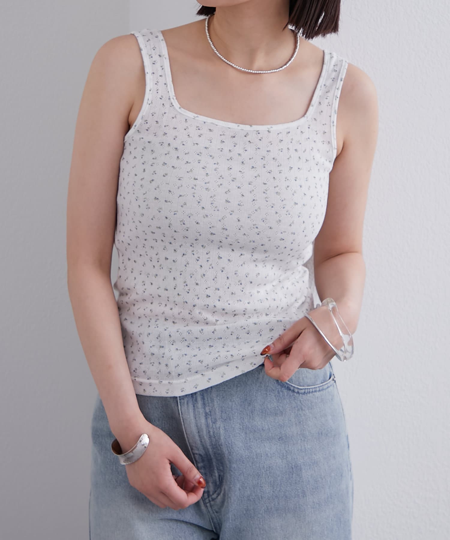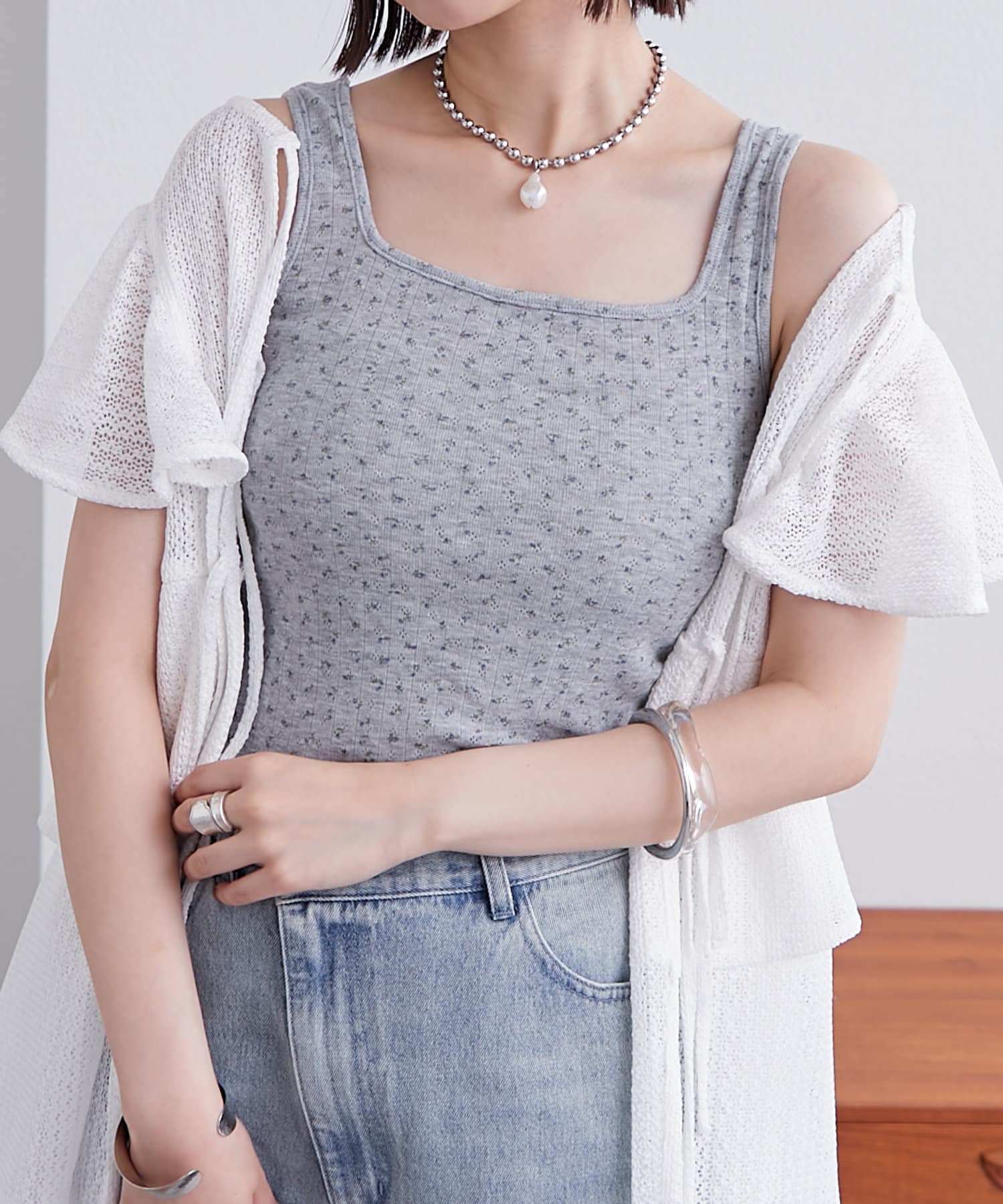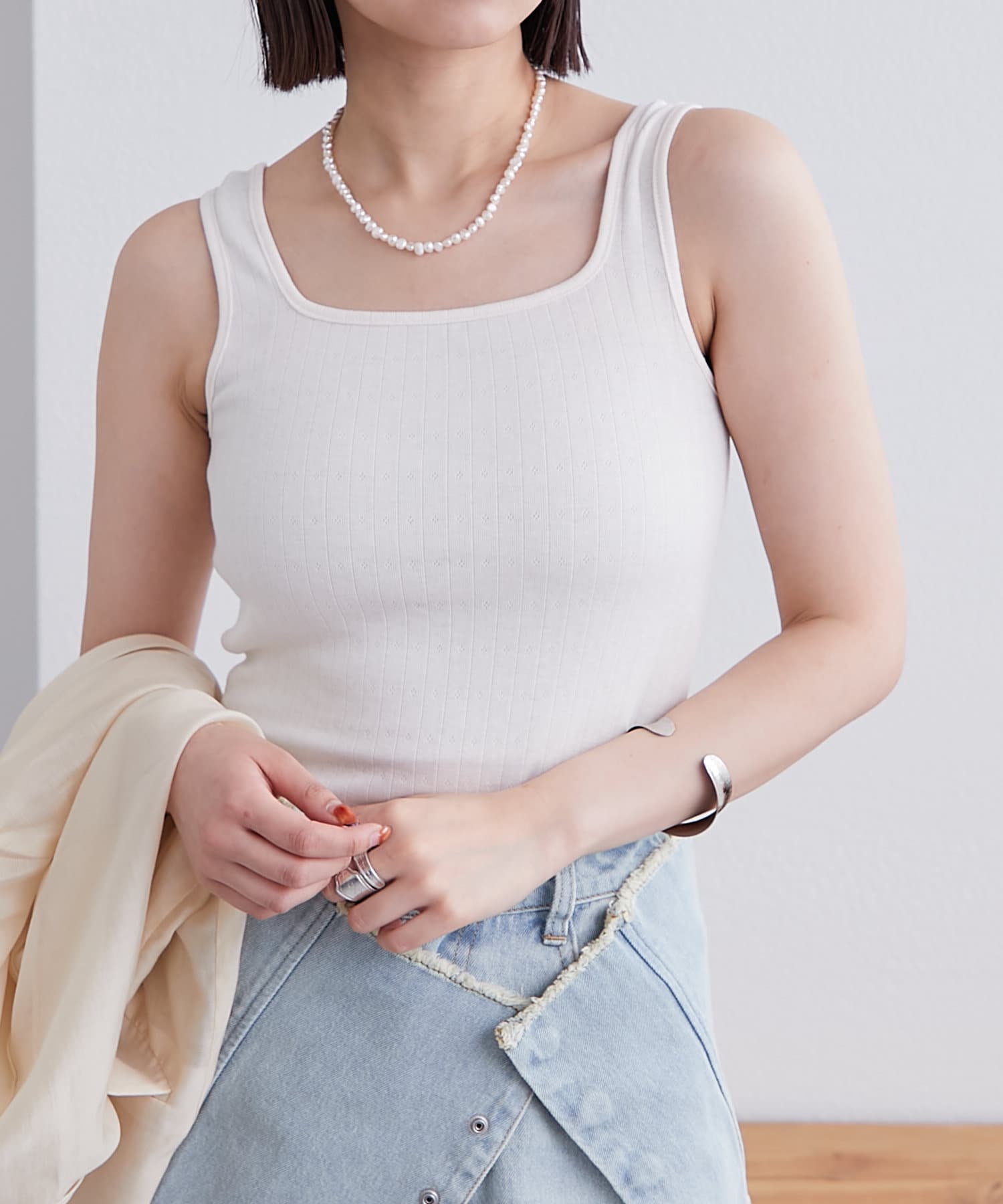 ・スクエアデザインですっきりした印象に見せてくれるタンクトップ。
