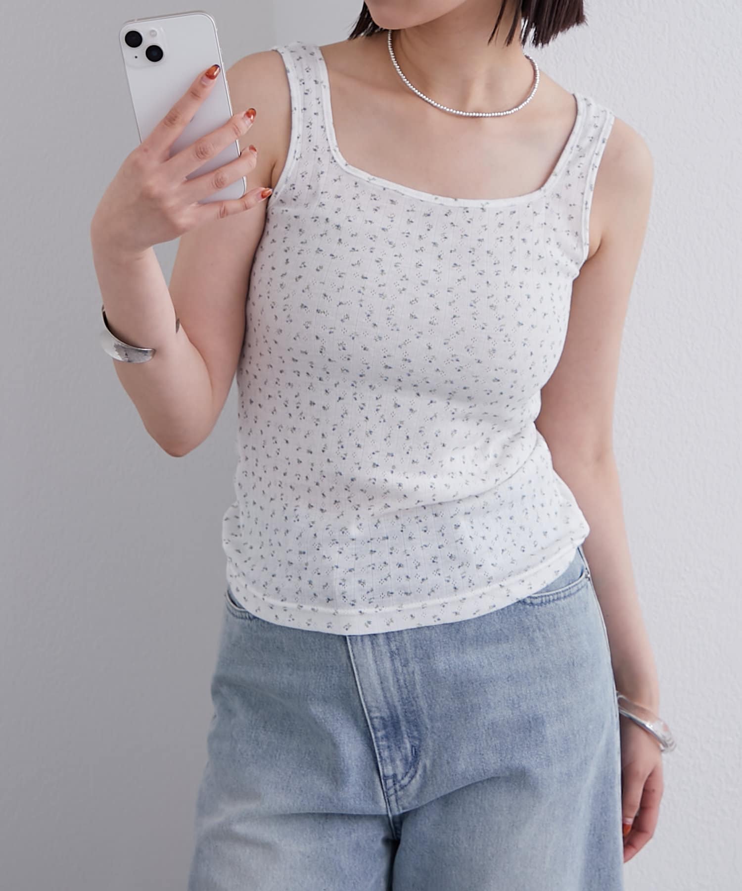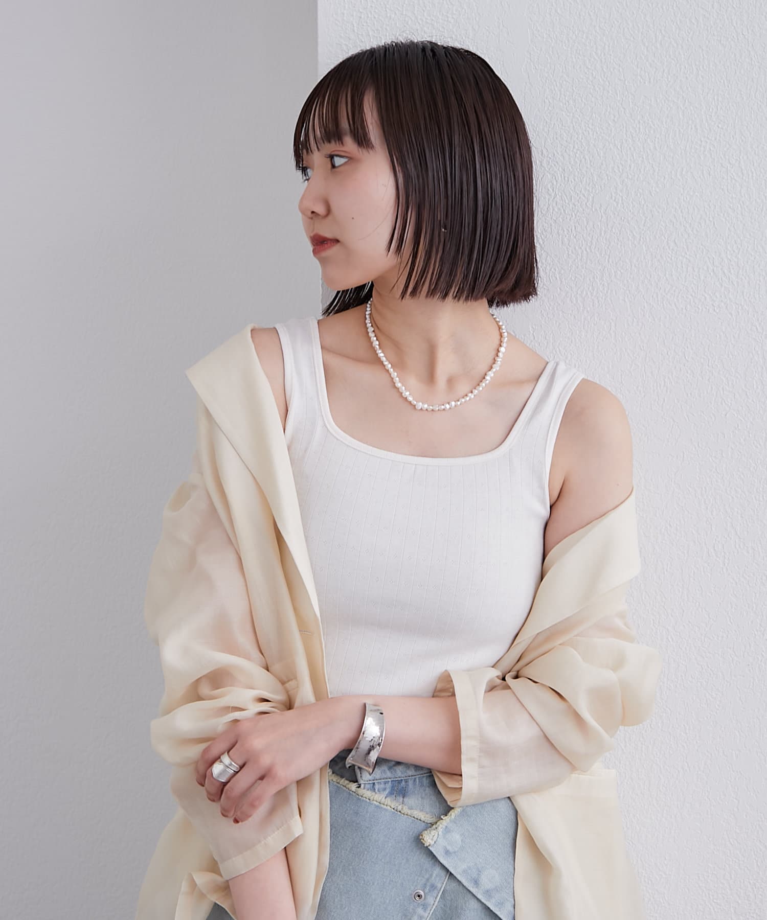 スクエアネックなので首をより長く見せてくれるタンクトップです!