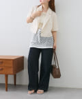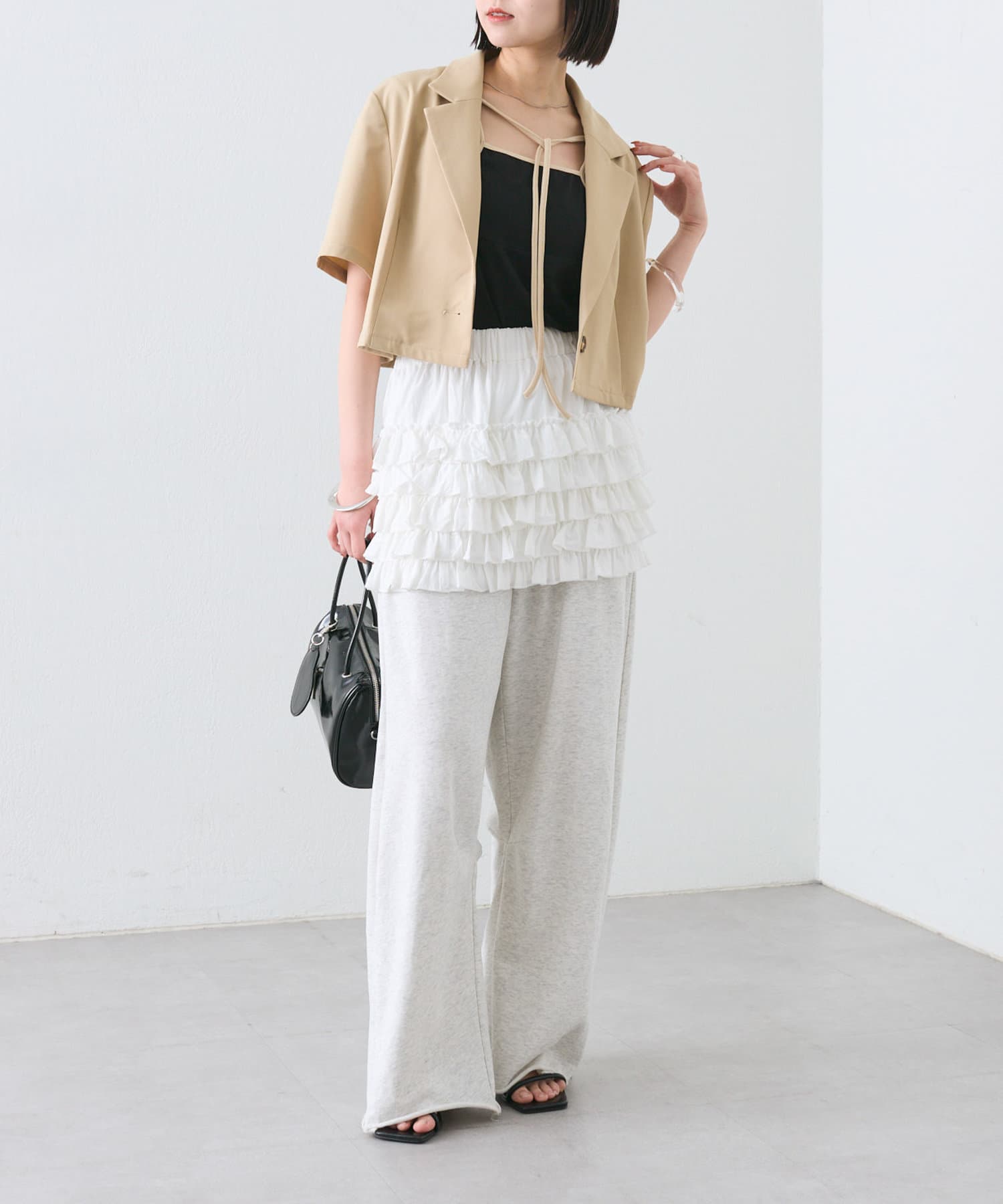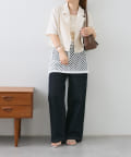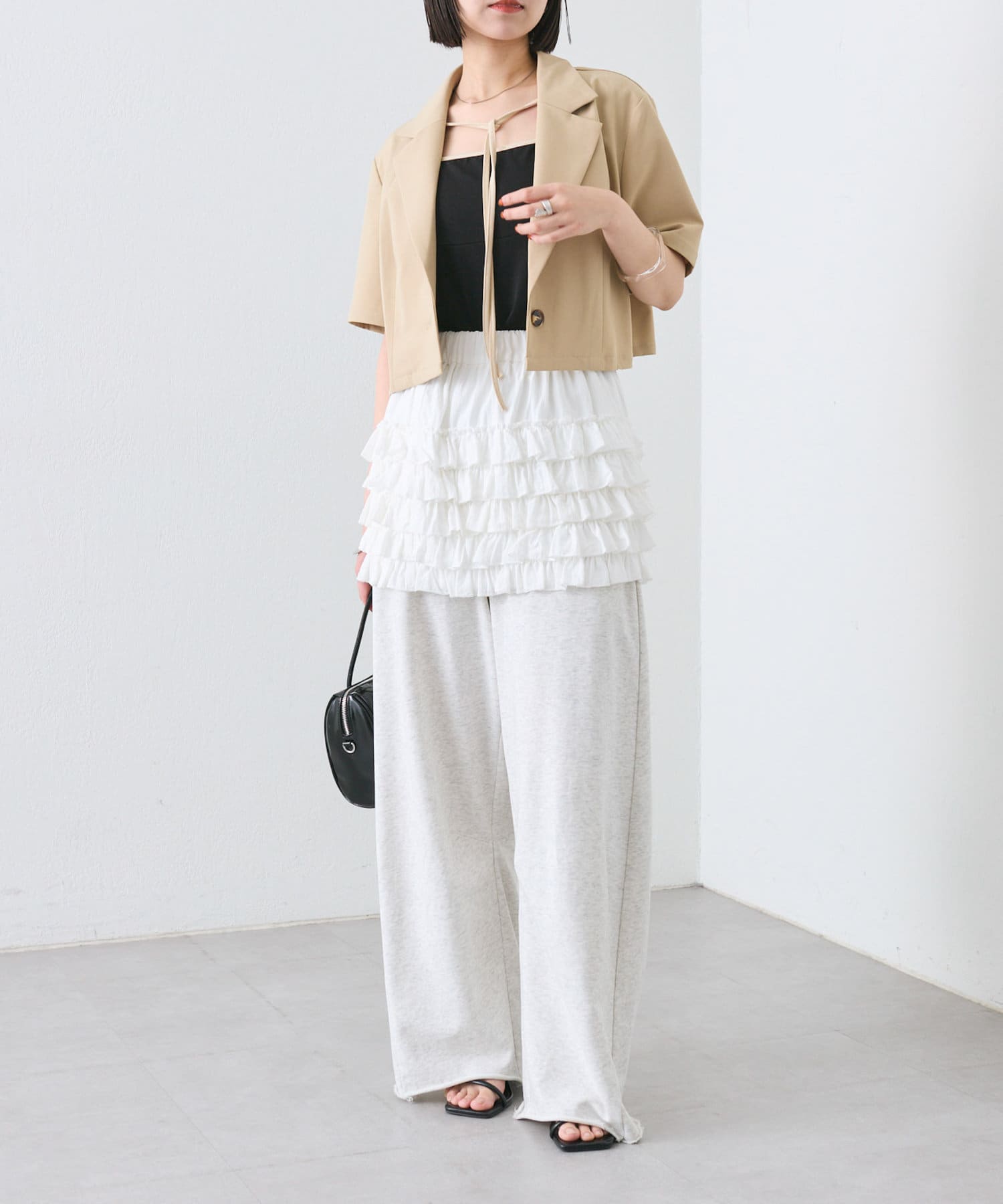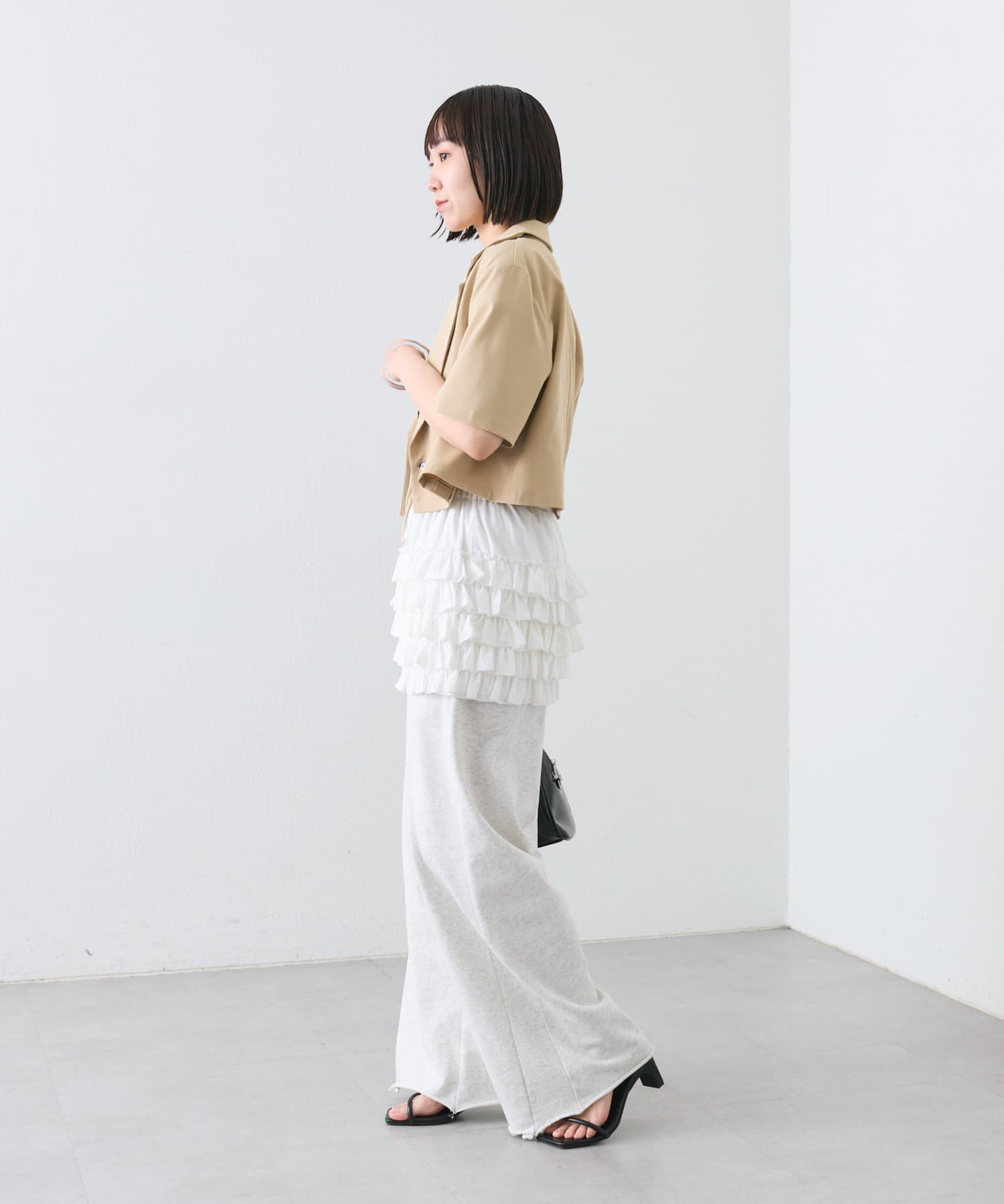 同系色のワイドパンツやロングスカートと合わせて、大人っぽい着こなしに。