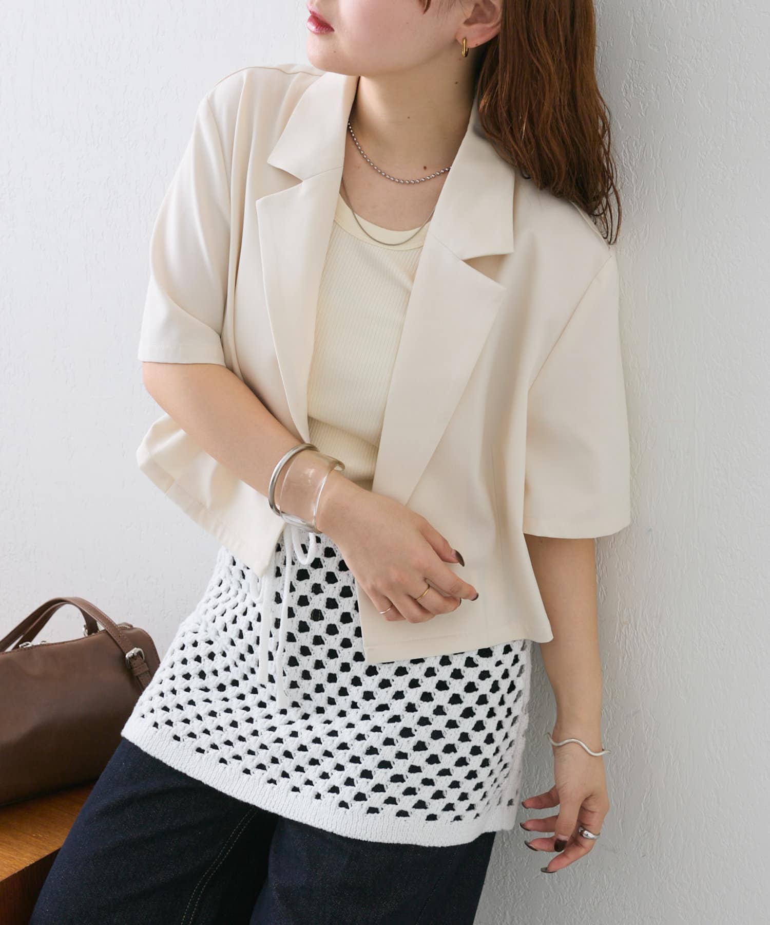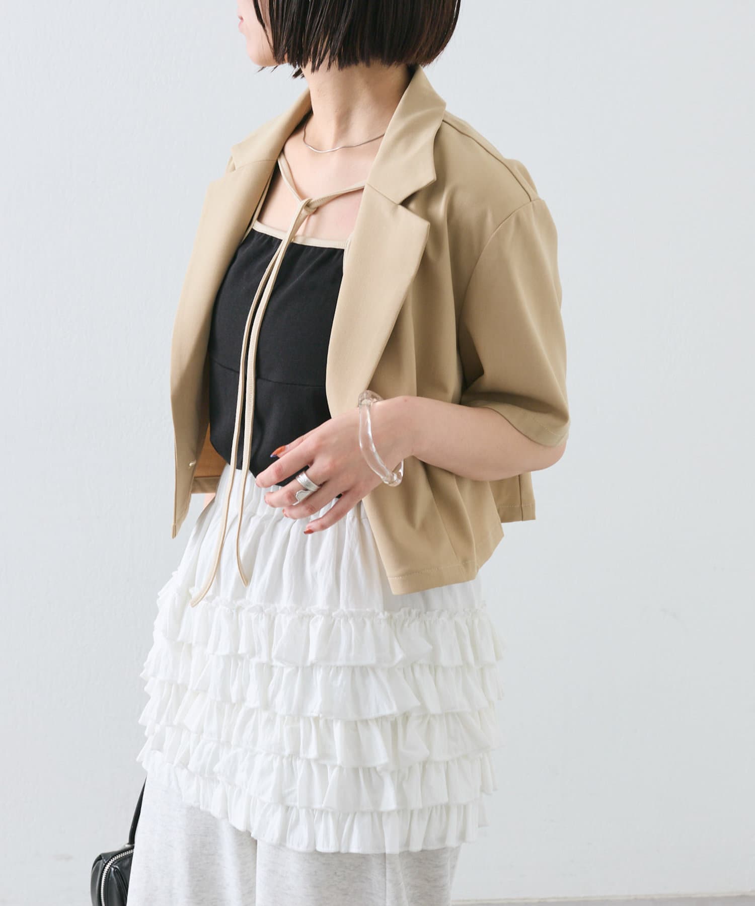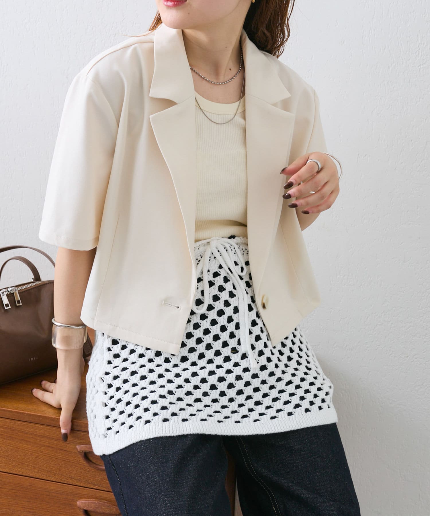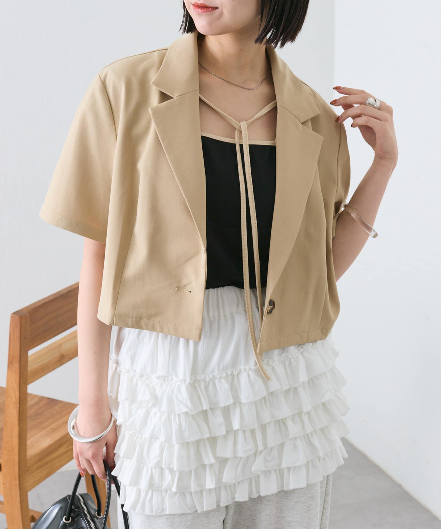 程よくコンパクトな丈感がトレンド感漂うショート丈テーラードジャケットです♡