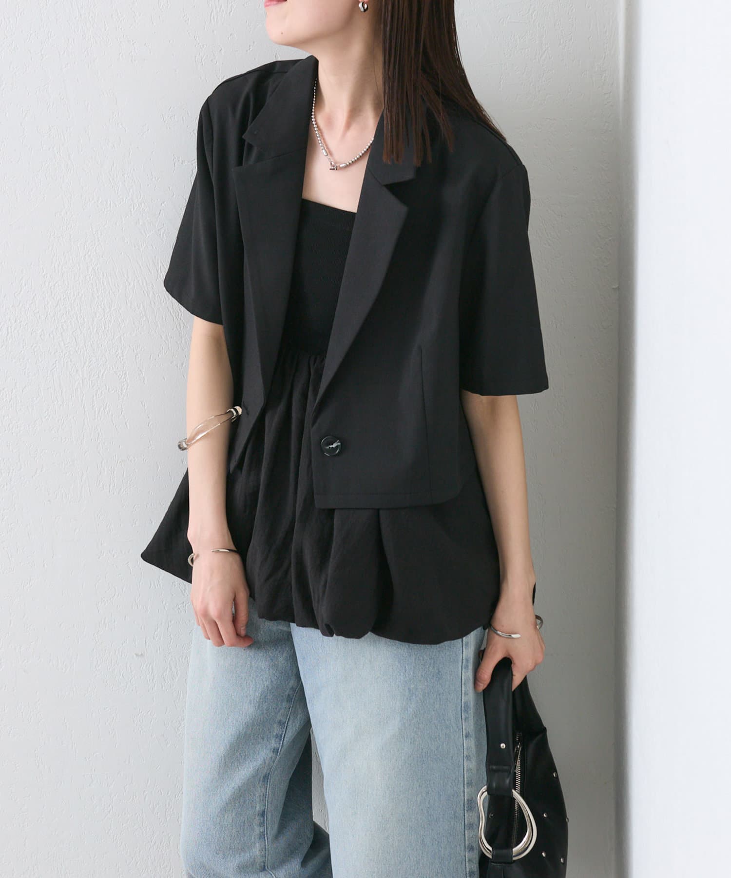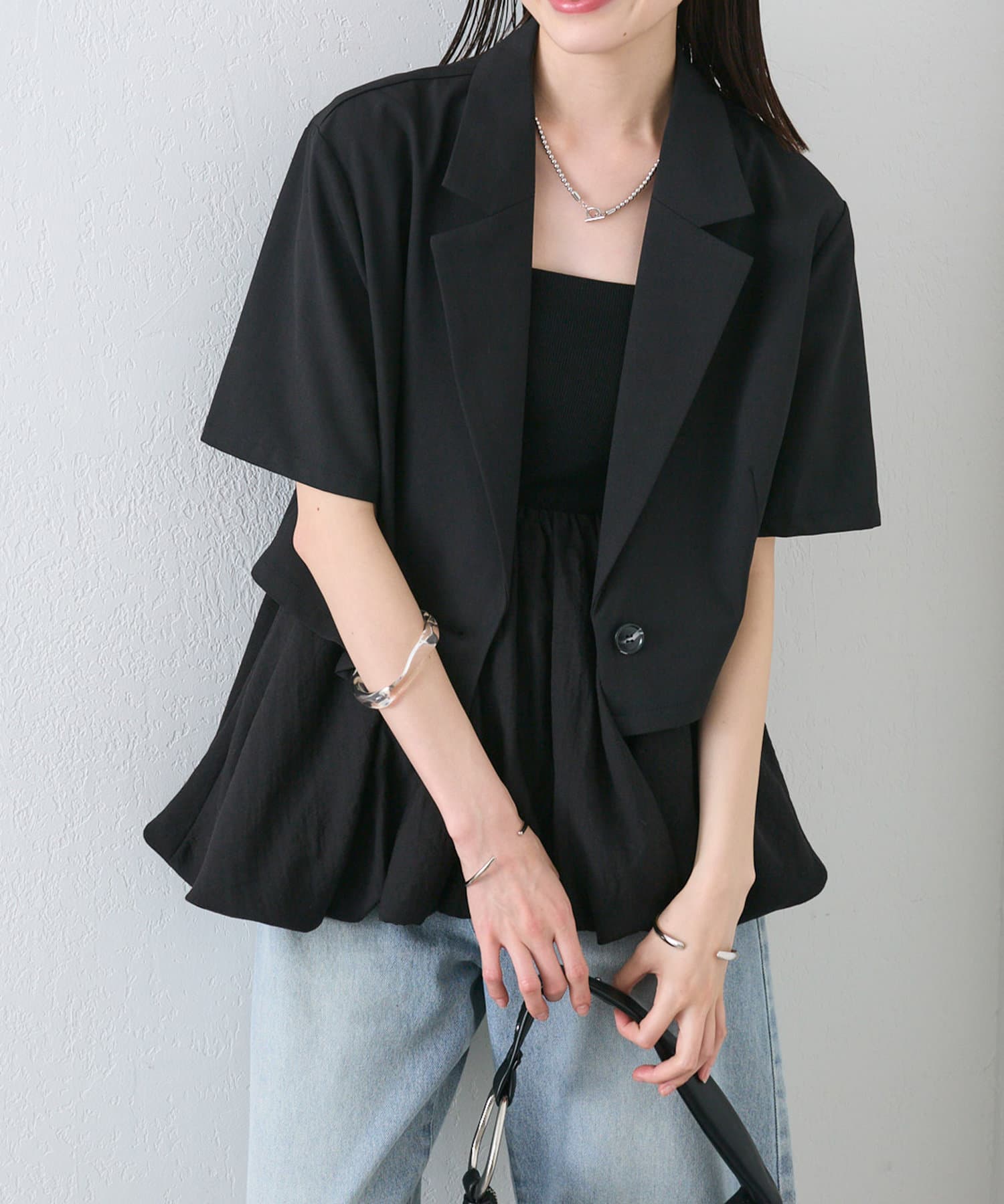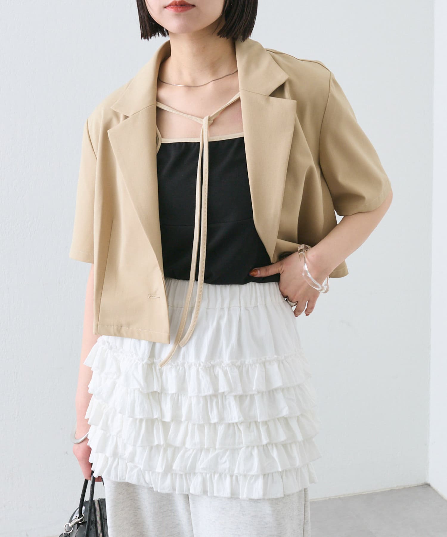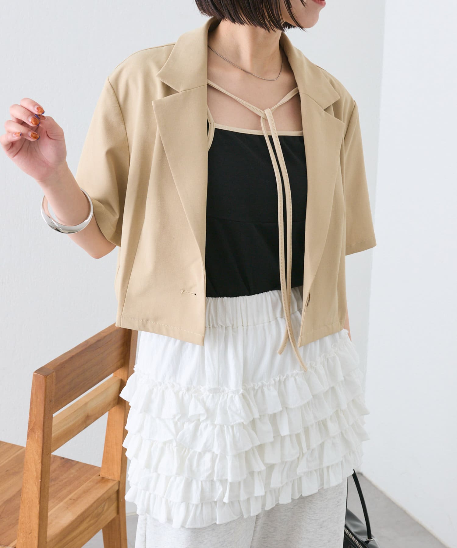 程よくコンパクトな丈感がトレンド感漂うショート丈テーラードジャケットです♡
