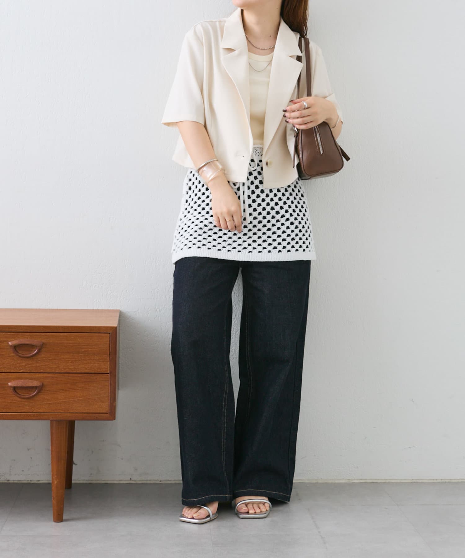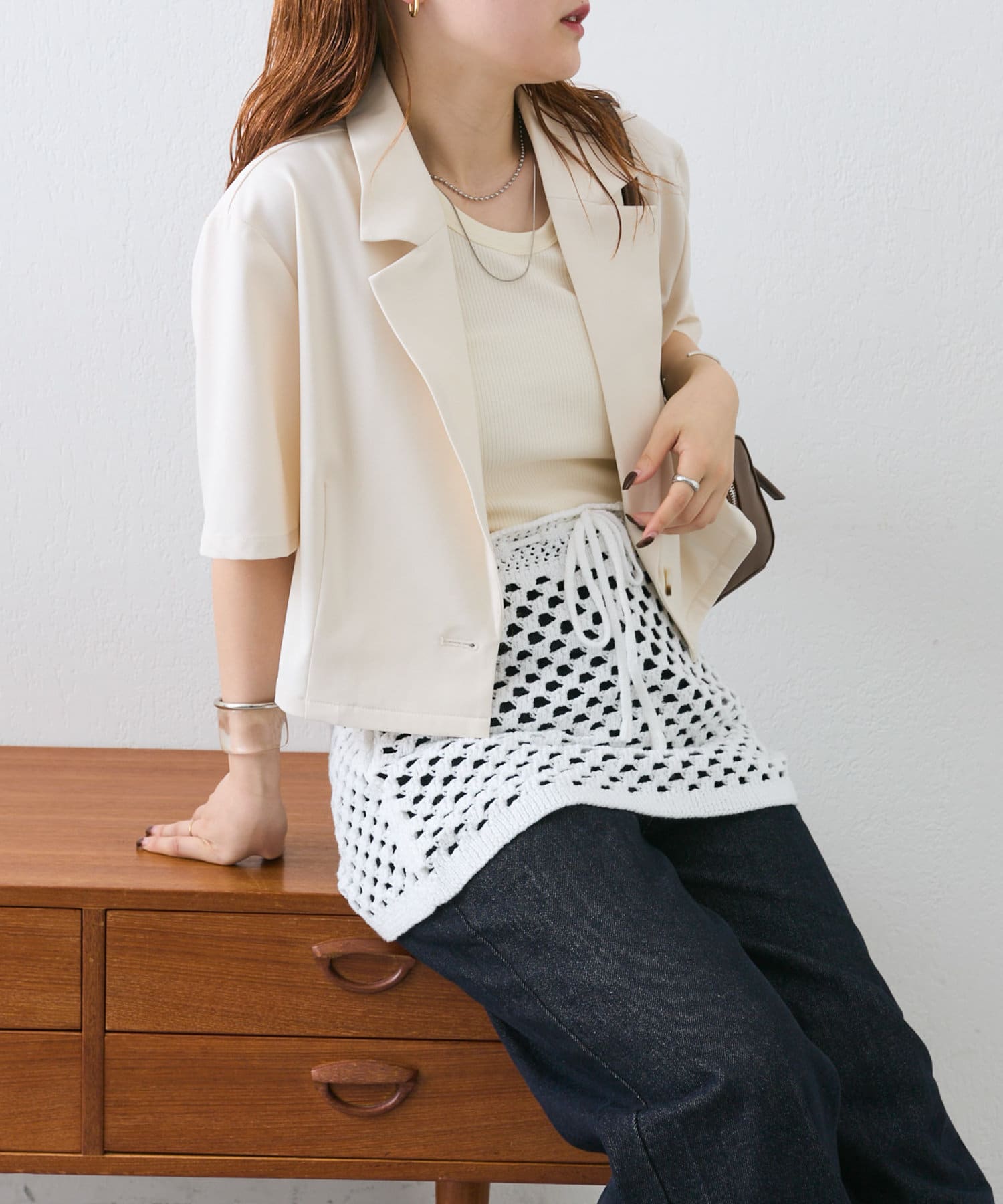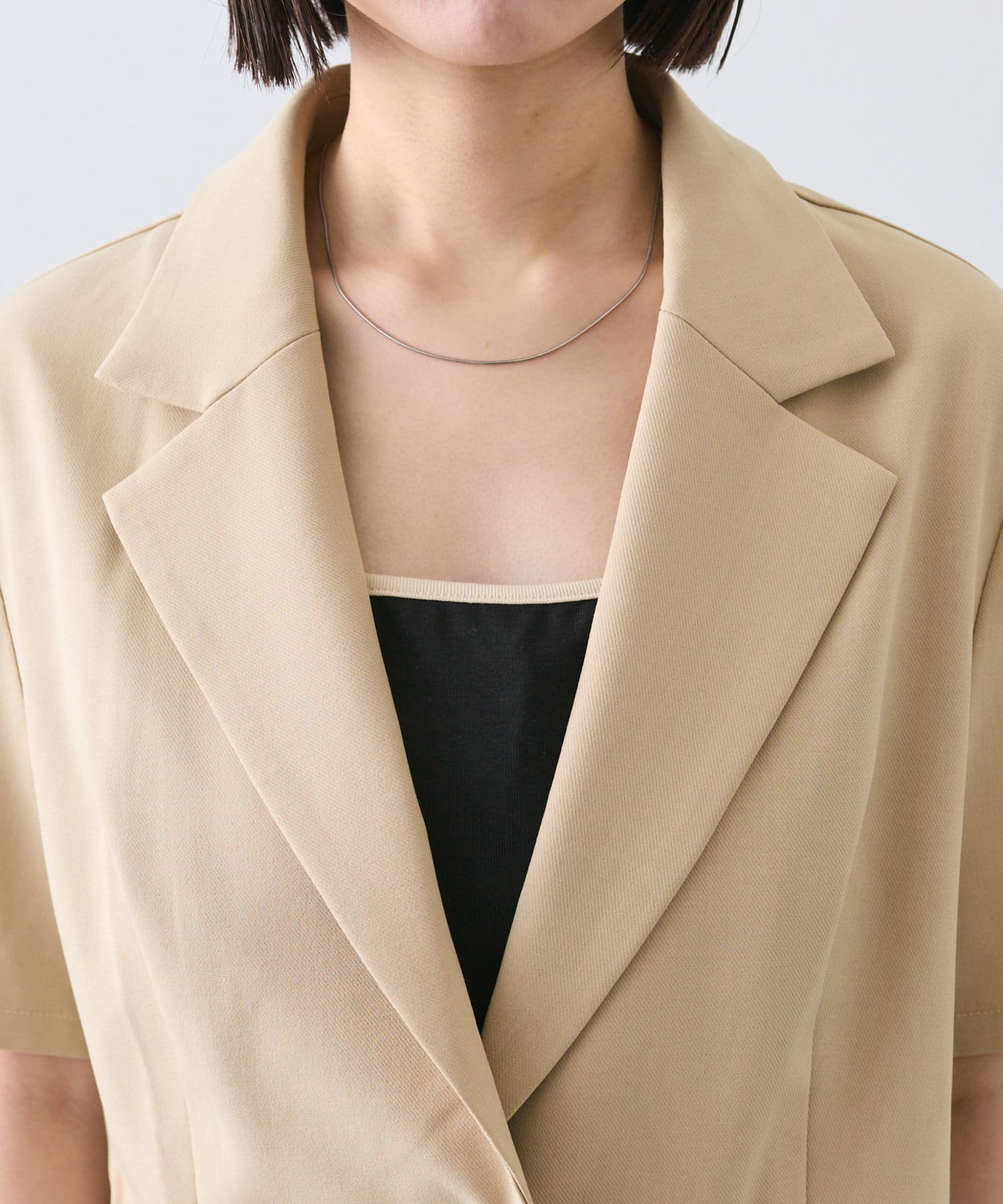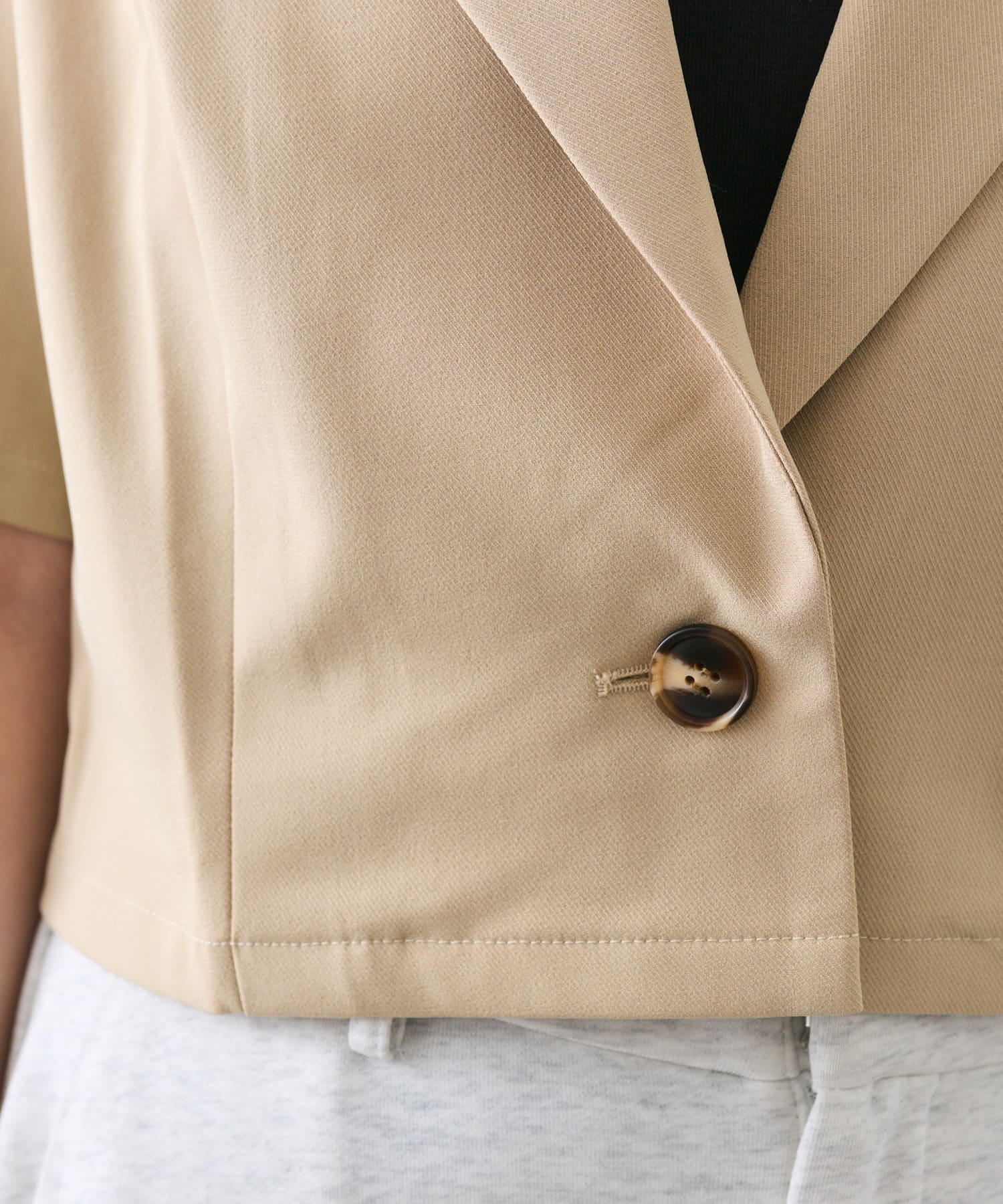 カジュアルなショート丈ながら、きちんと感のあるテーラードカラーとボタンで、大人っぽい着こなしも叶えます。