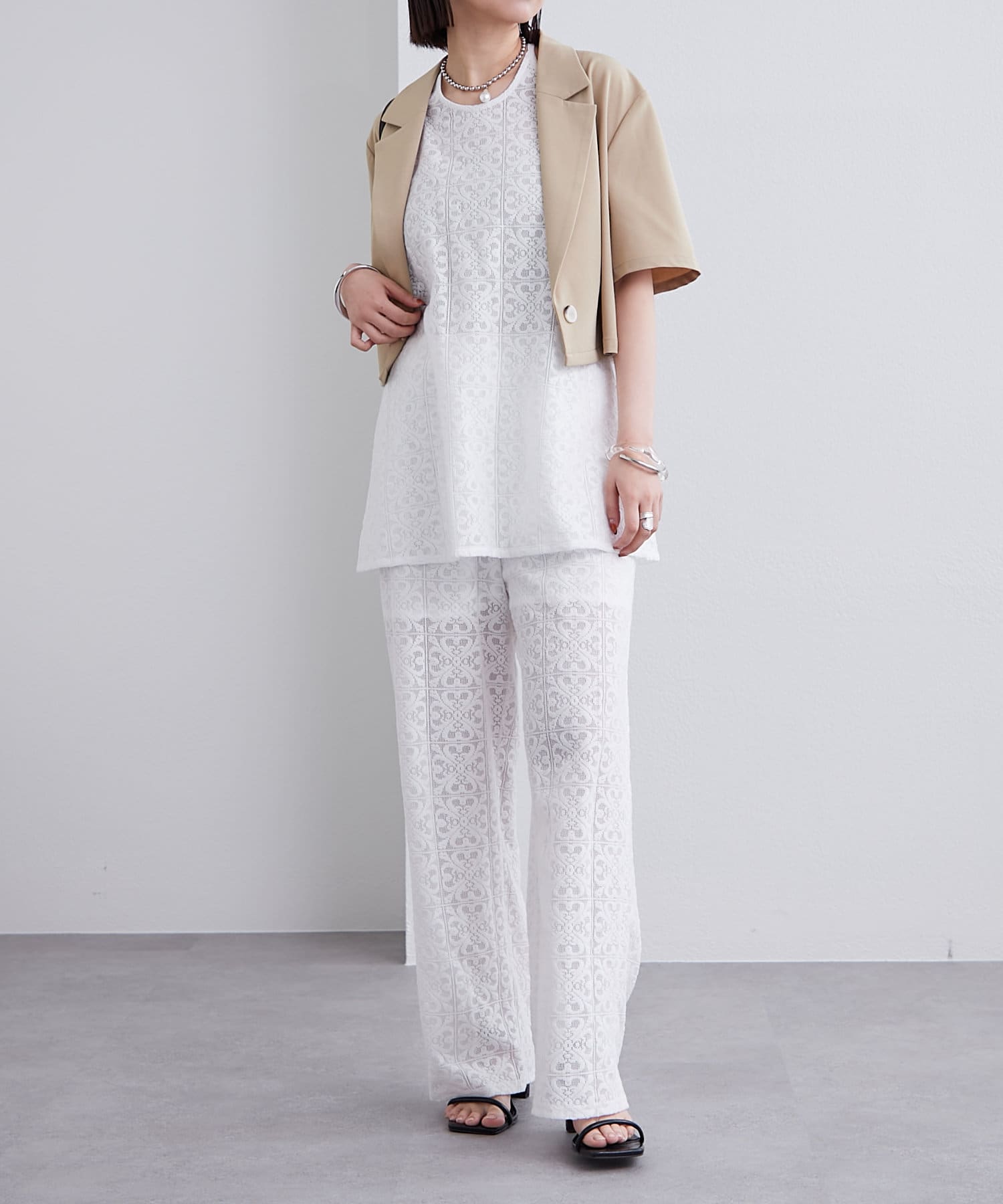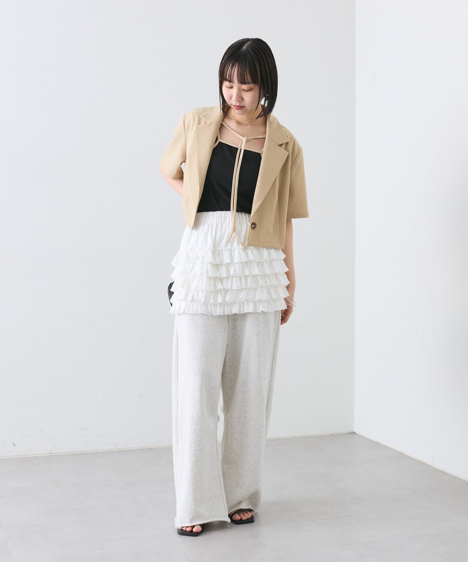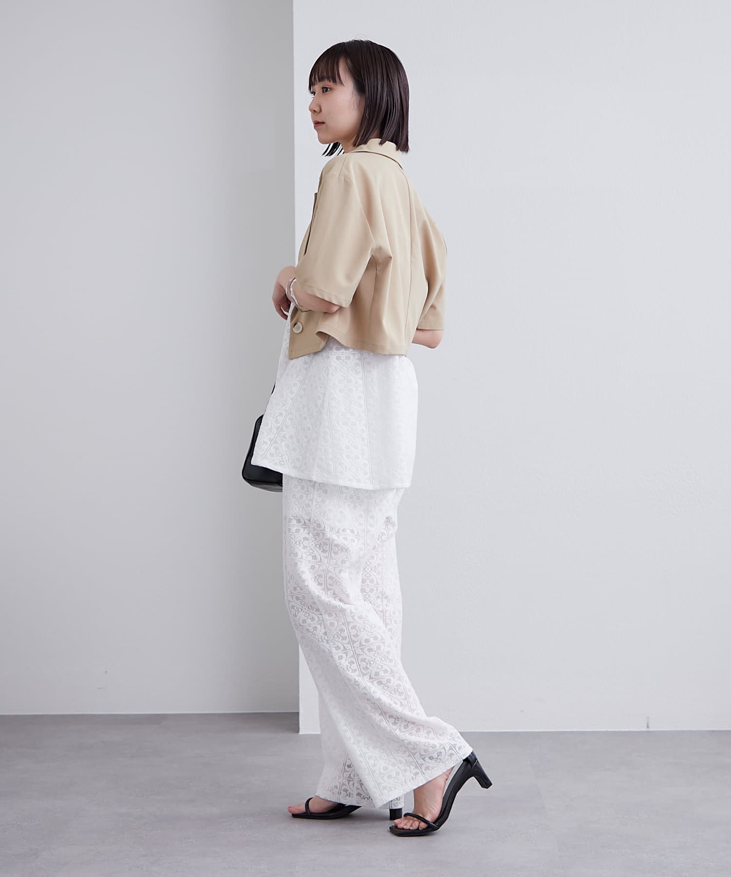 シンプルなブラウスやキャミソールと合わせて、上品なスタイルに仕上げるのも♡
