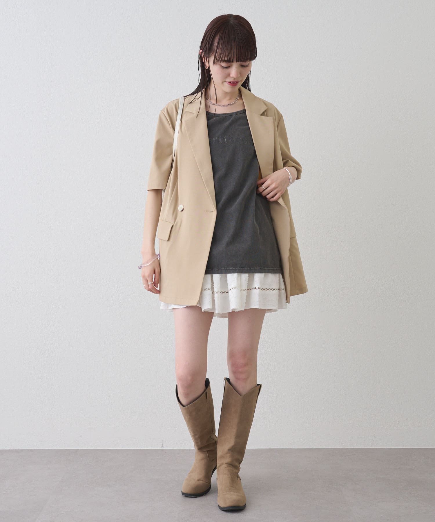 シンプルなTシャツやデニム合わせてカジュアルダウンスタイルに。
