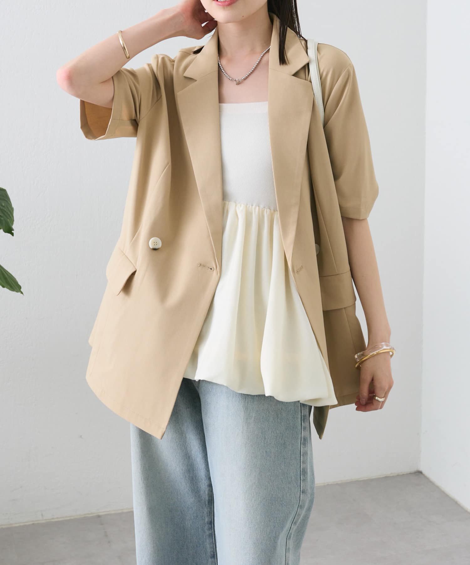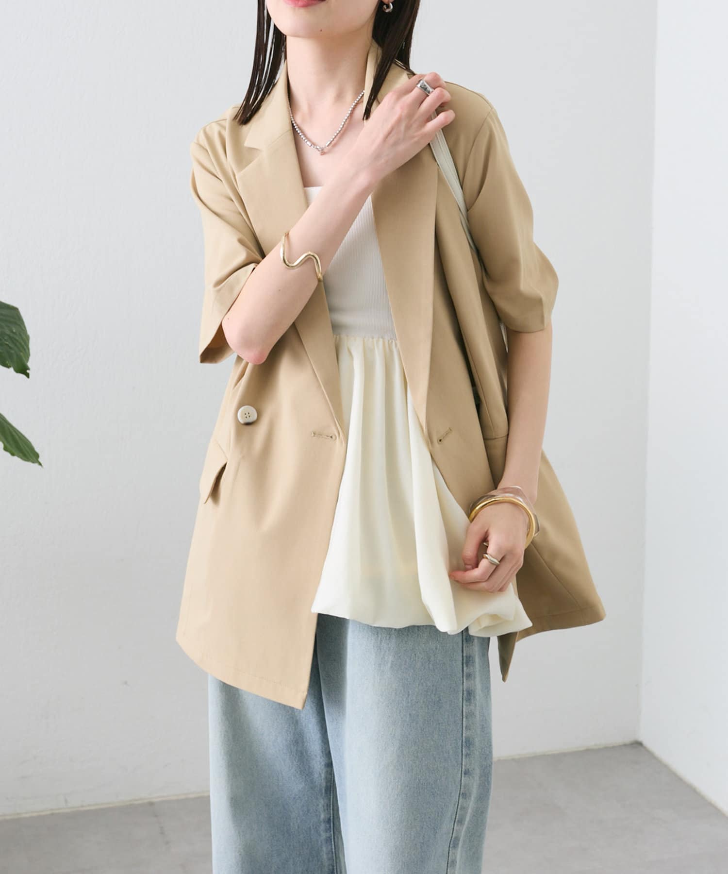 場でも涼しく快適に着用できます。程よくゆとりのあるシルエットで、体型カバー効果も期待できます◎