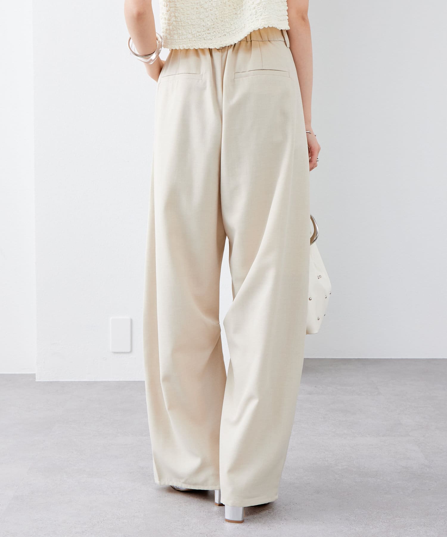ウエスト後ろがゴム仕様になっており窮屈感がなくストレスフリーな履き心地となっております!