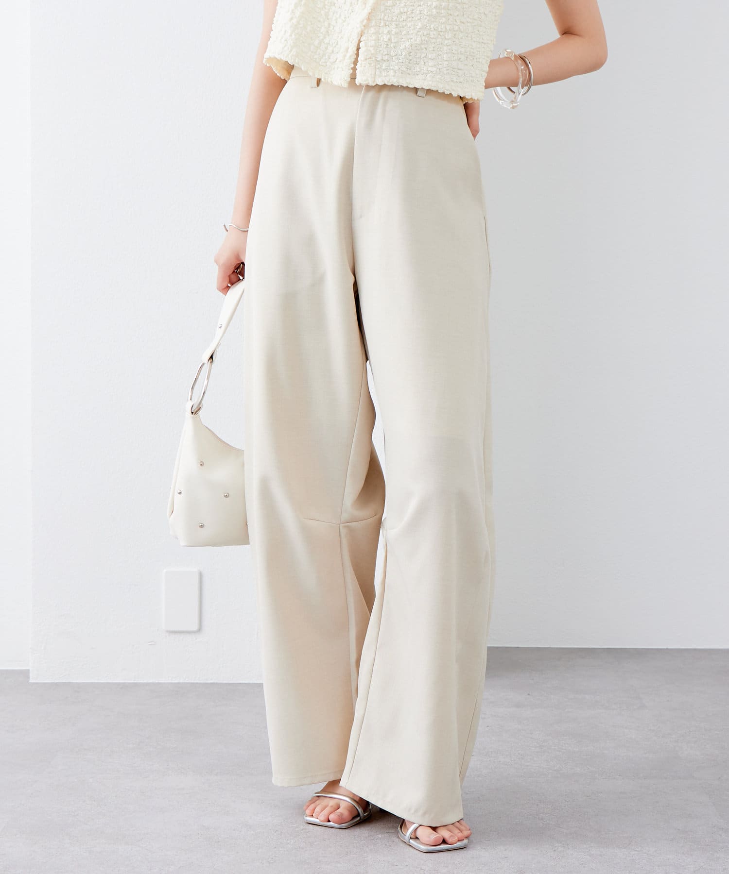 【3サイズ展開/カーブシルエットでスタイルアップ◎】カーブスラックス