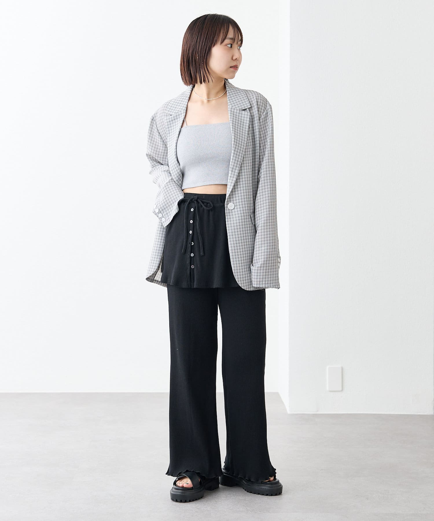 ・クロップド丈のシャツやブラウスとスタイリングするとバランスよく着こなしができます。