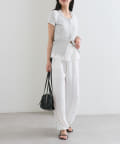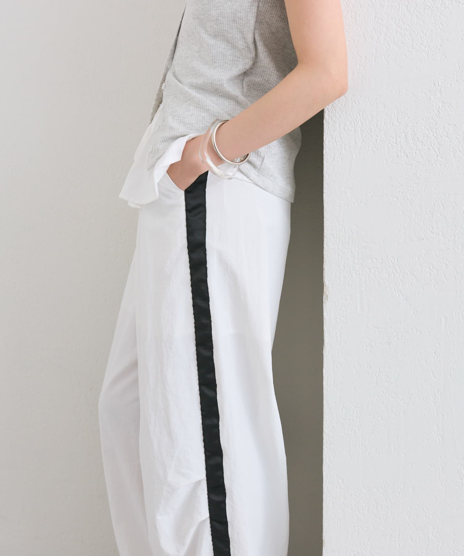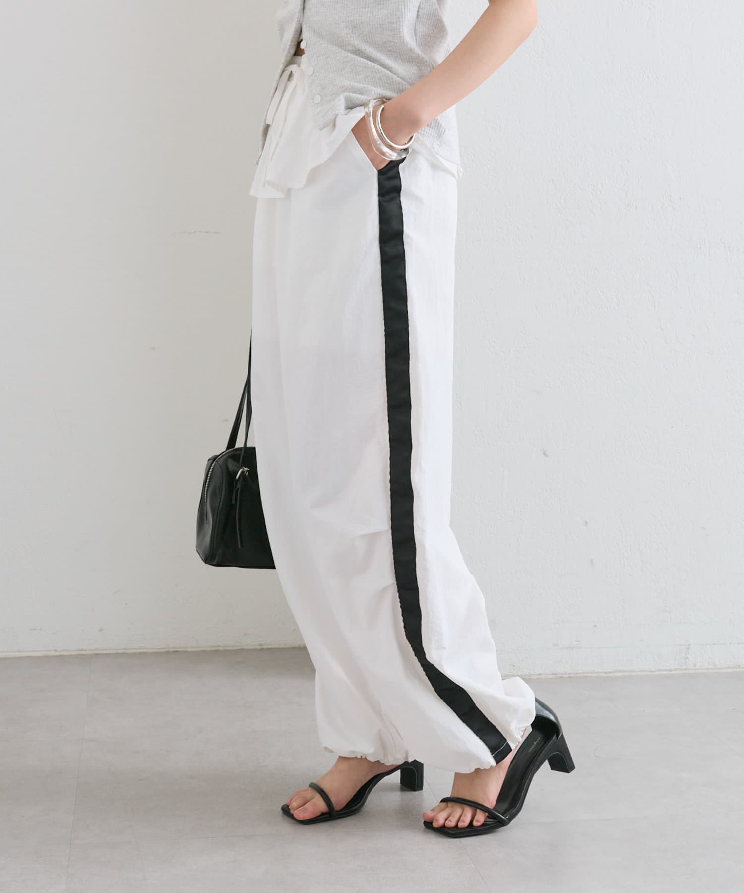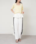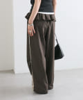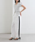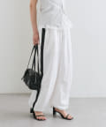 サイドにラインが入っていることでポイントになりつつ、シルエットが協調されて脚を長くすっきりと見せてくれる効果◎