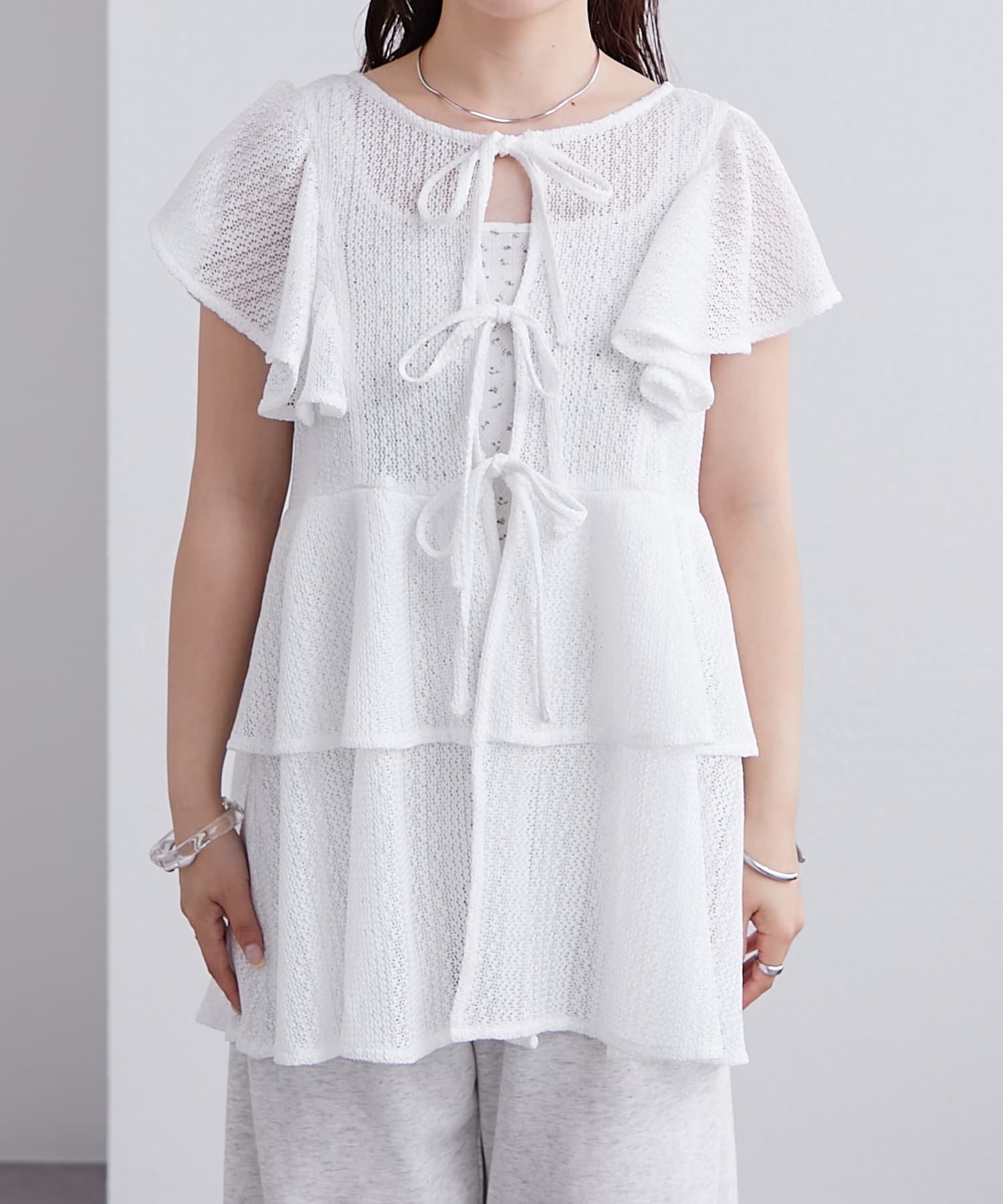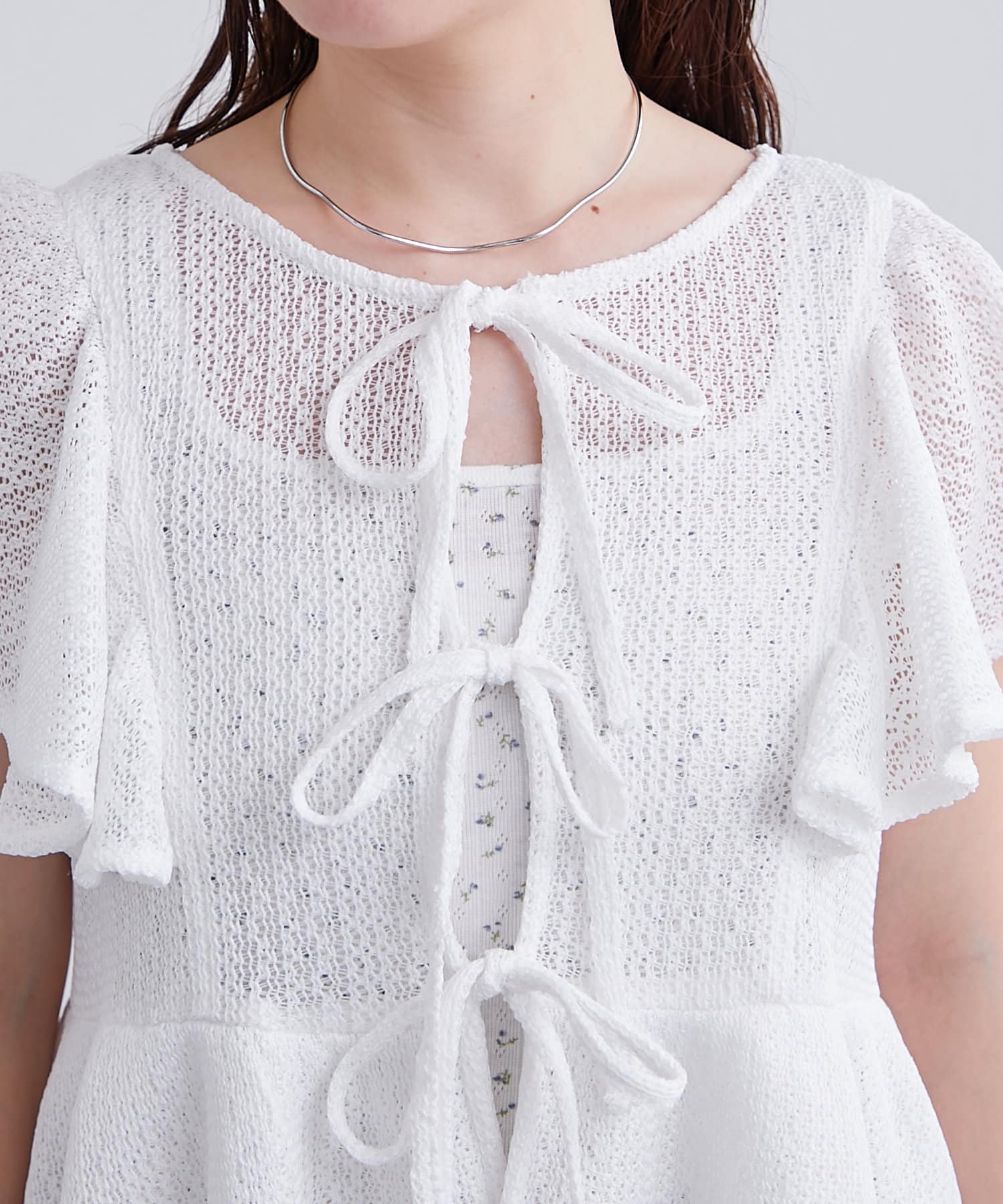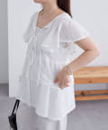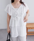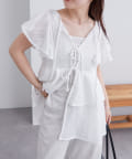 フロントのリボンと袖のフリルが華やかな1枚。