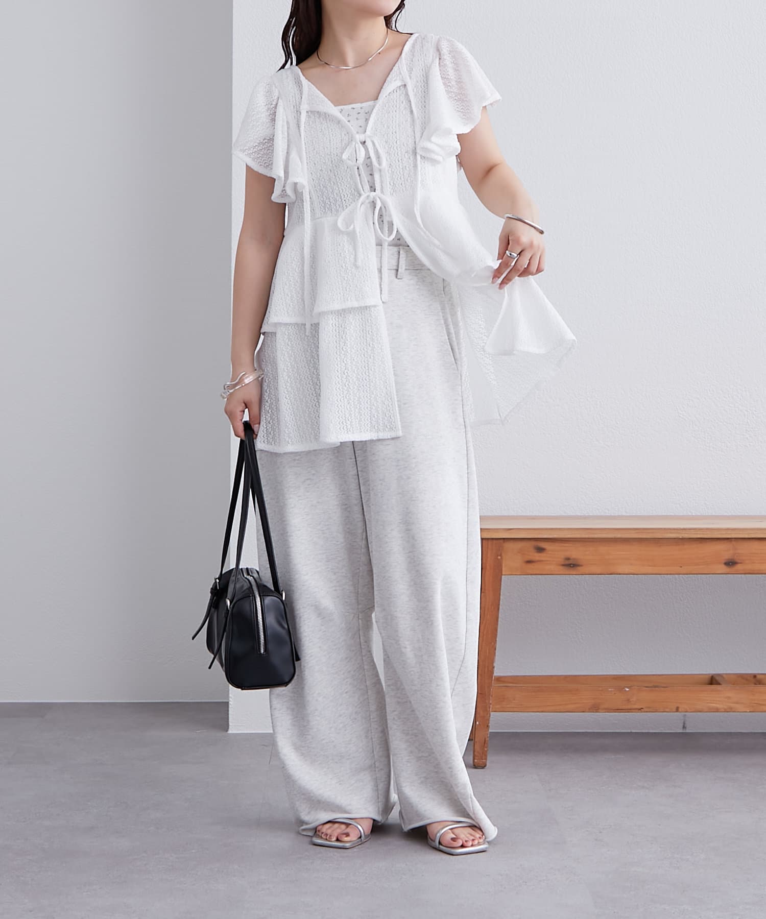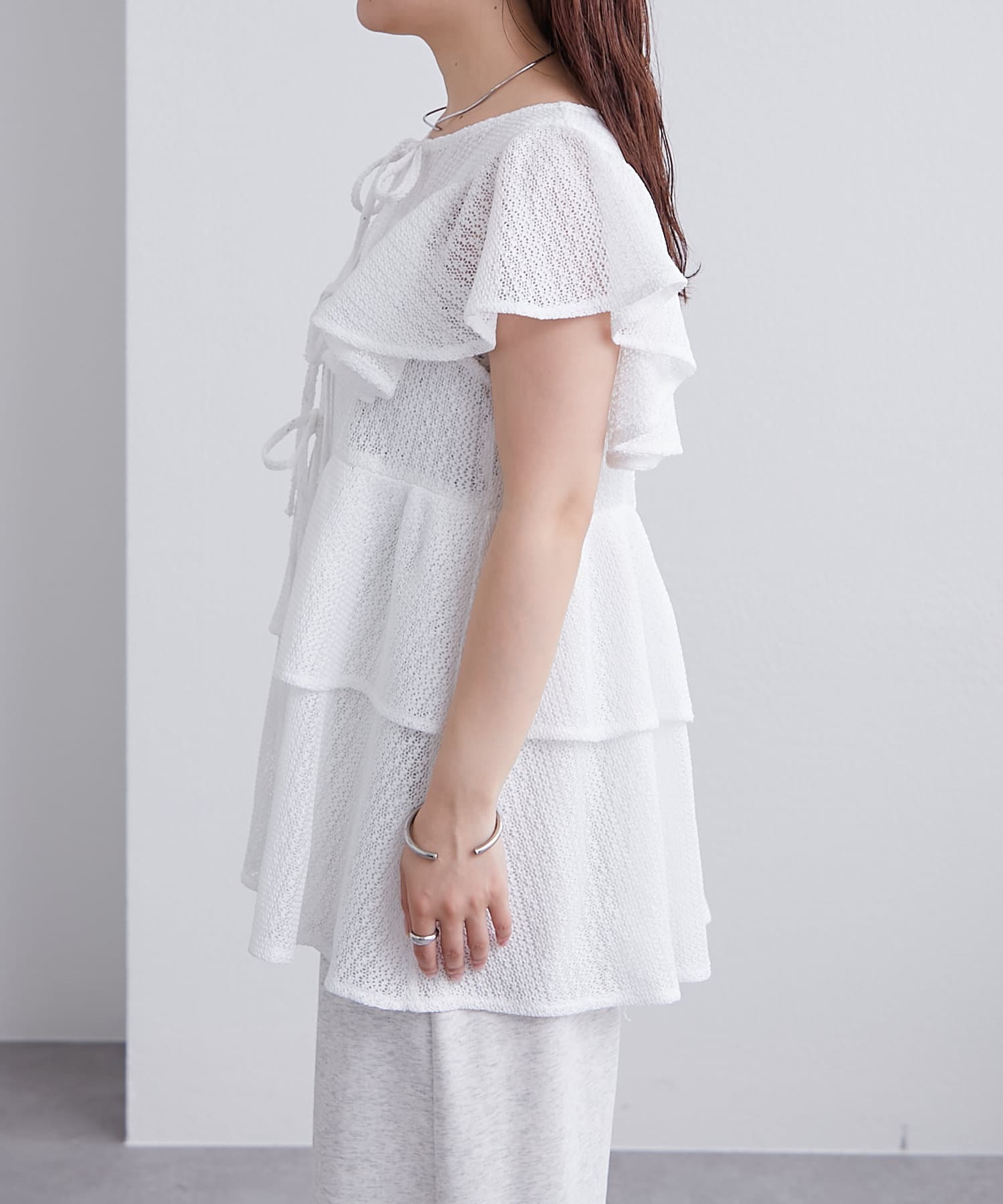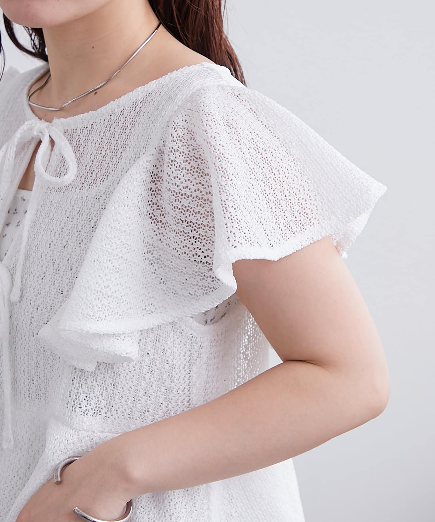袖のフリルが二の腕周りをすっきり見せてくれます。