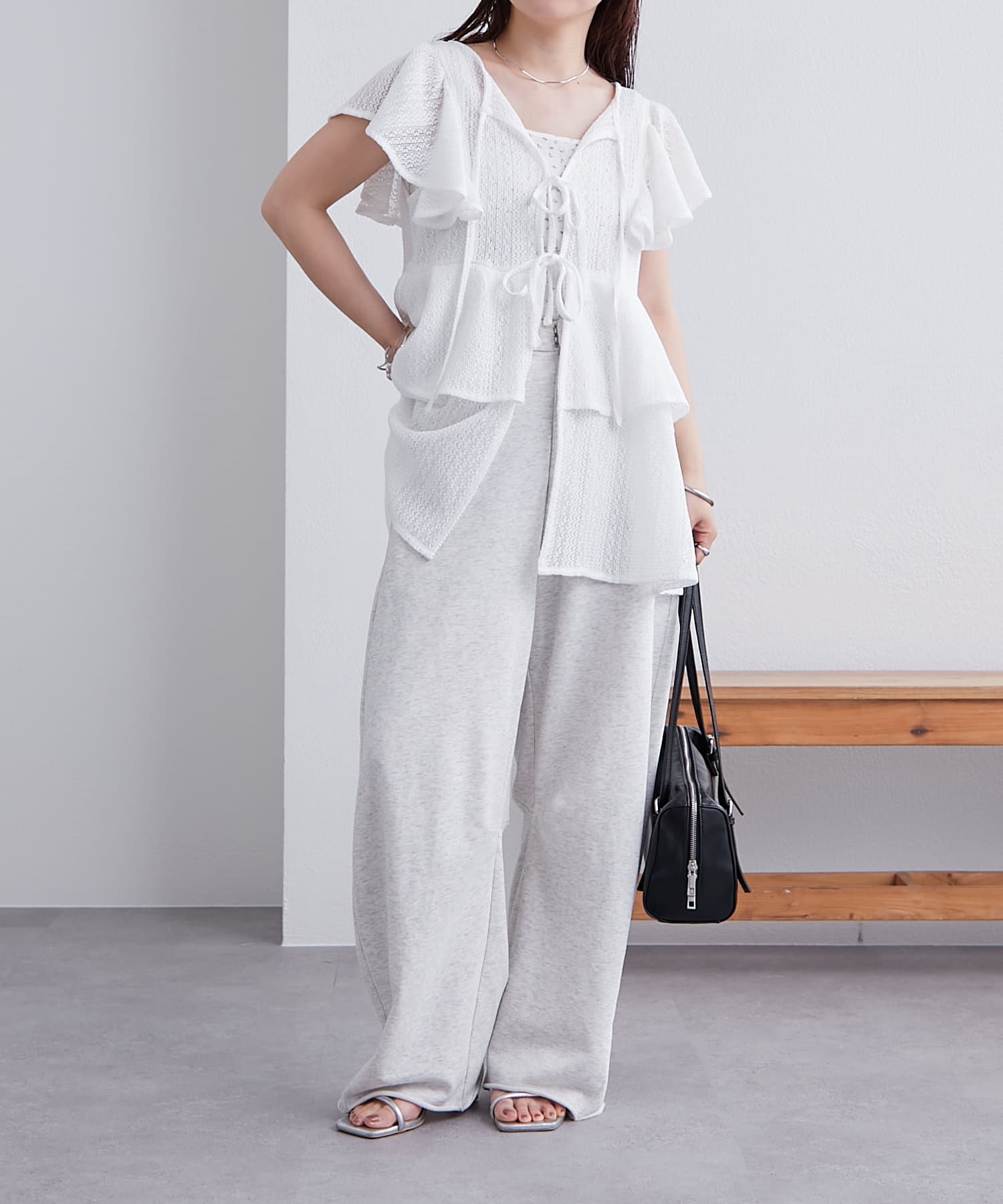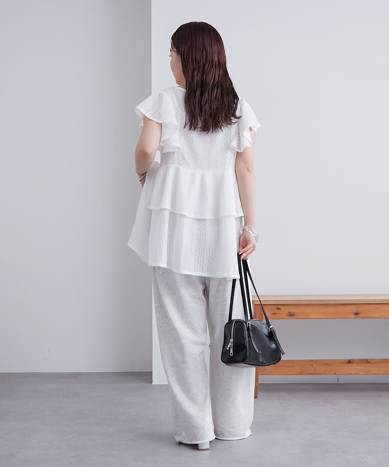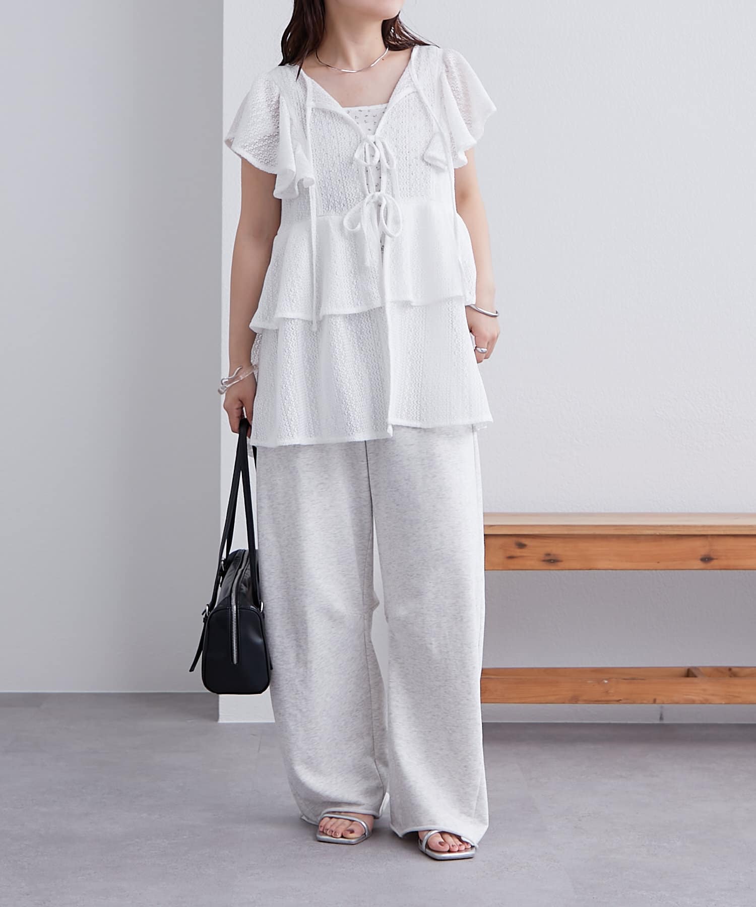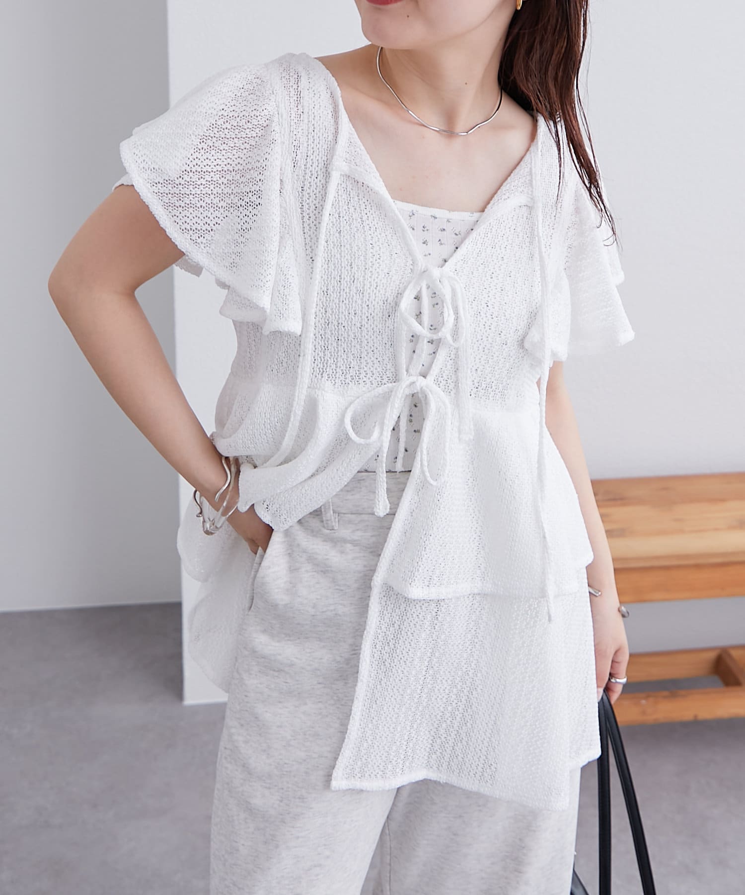 袖のフリルが二の腕周りをすっきり見せてくれます。