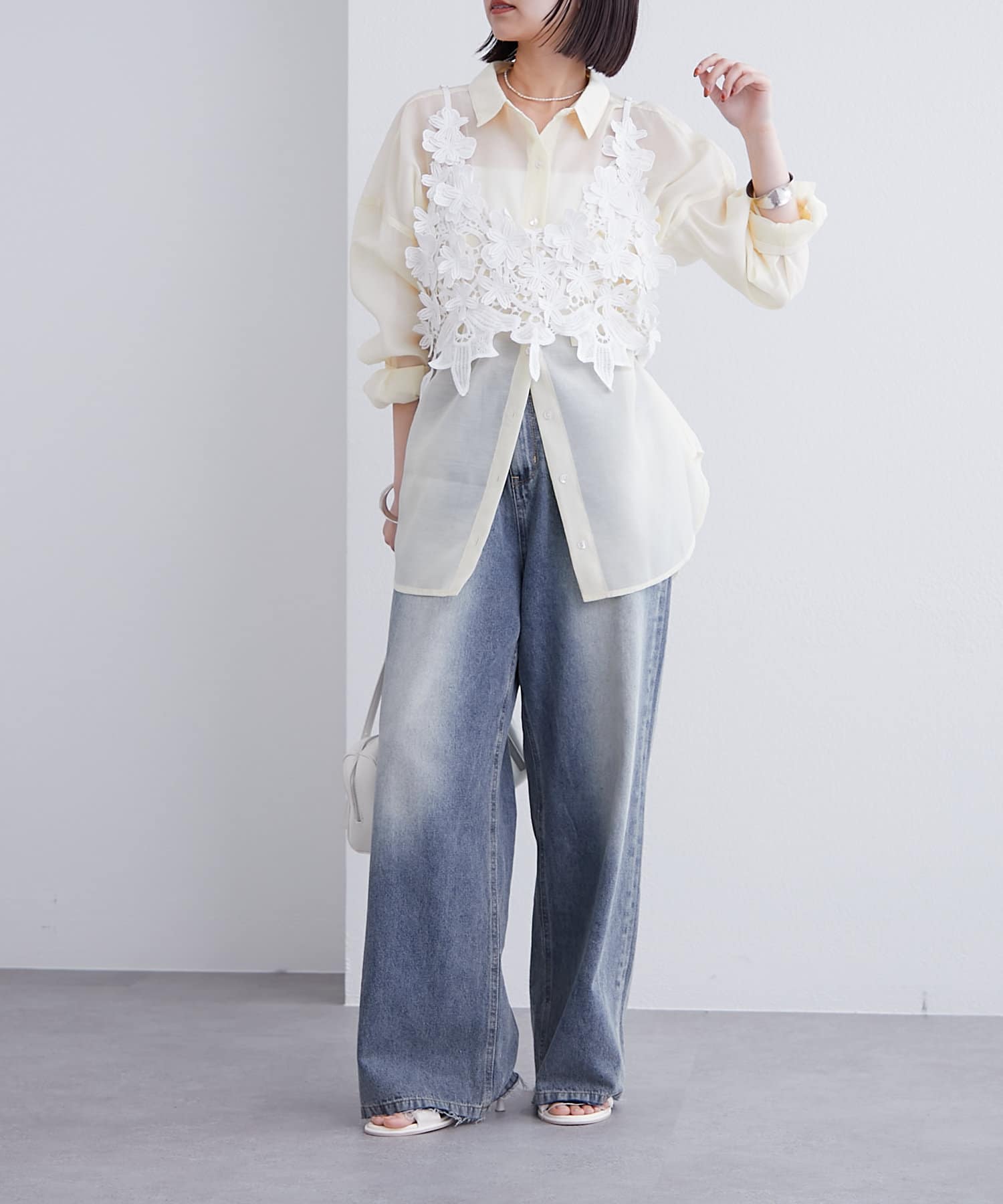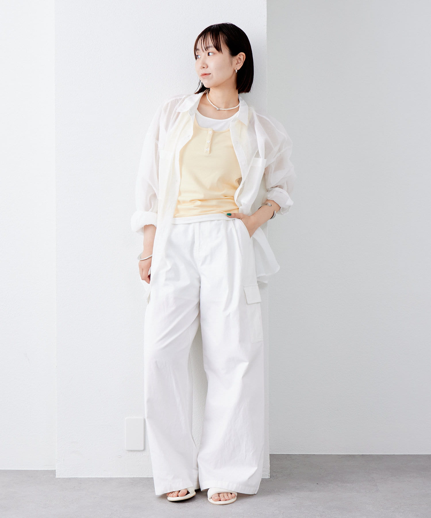 シアー素材で夏らしく、暑い季節でも日差し避けの羽織としても活躍するアイテムです。