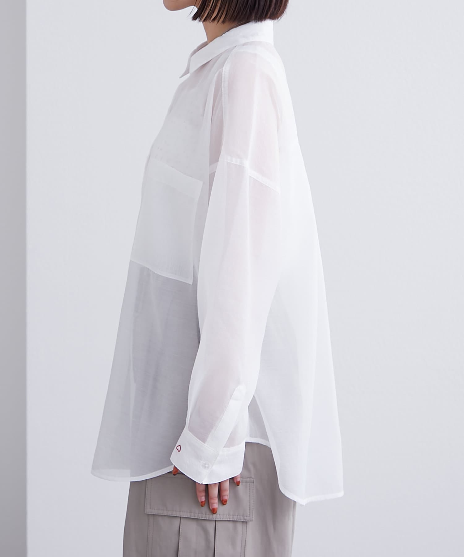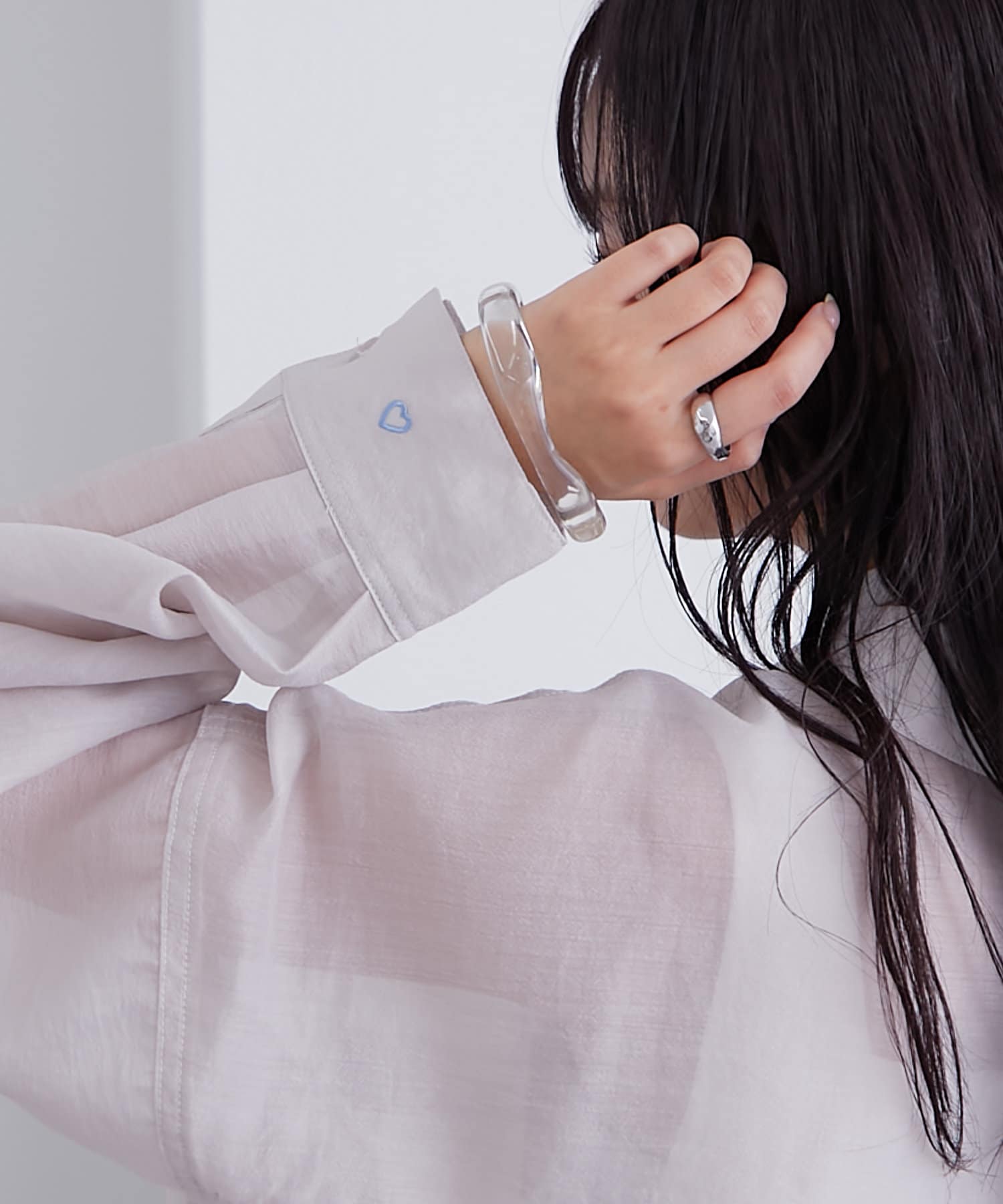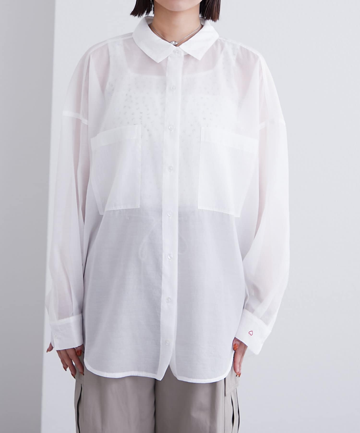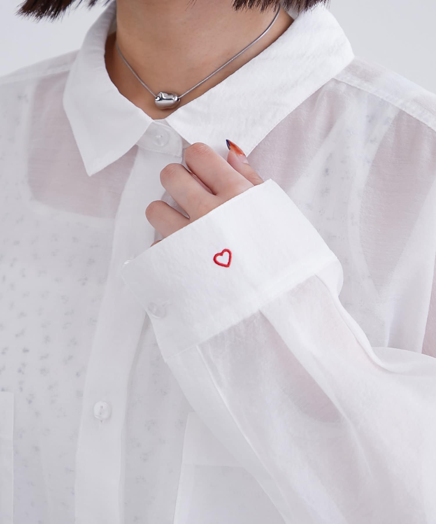 袖口にハートの刺繍が♡シアー素材の透け感が可愛いシャツが登場!
