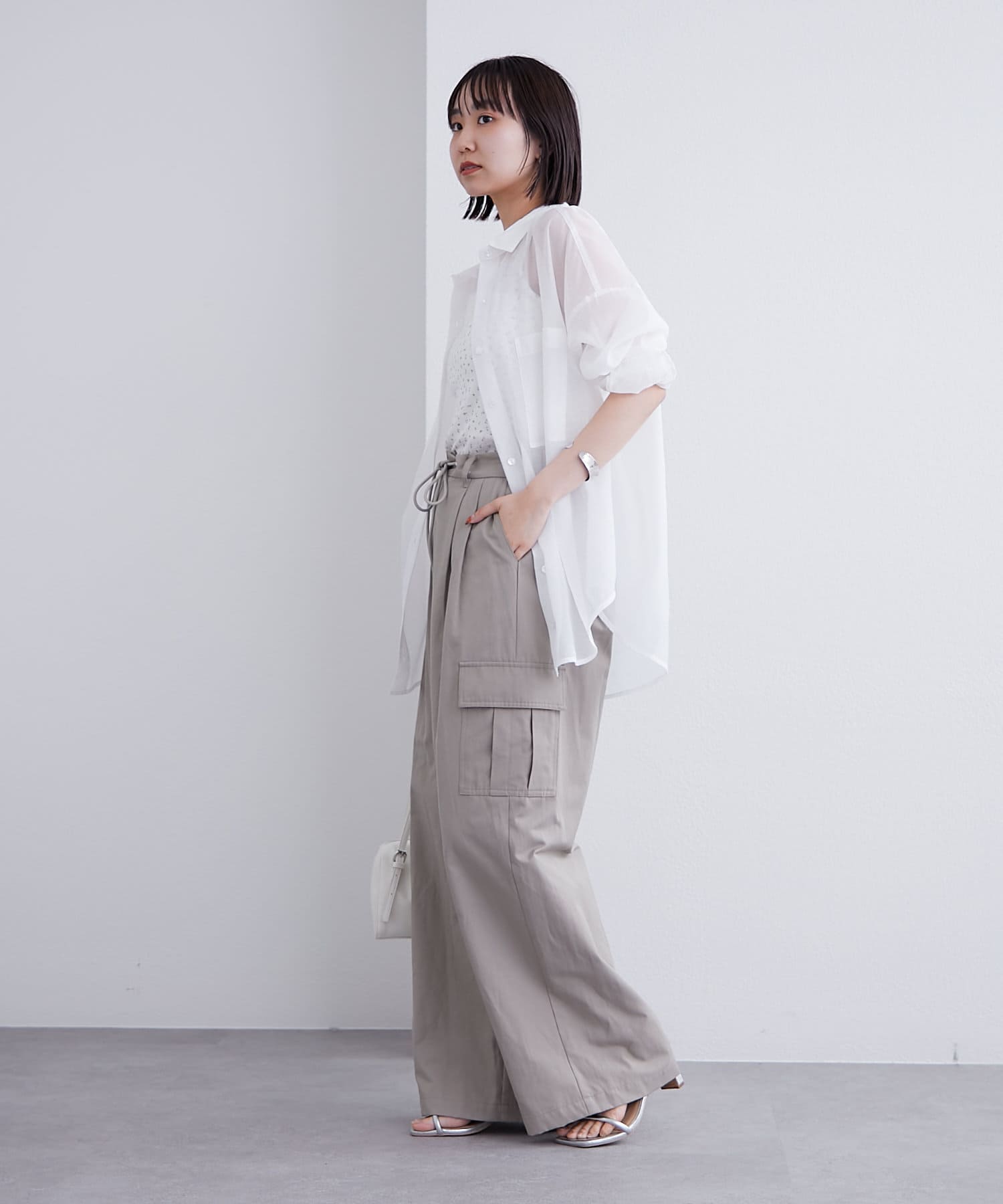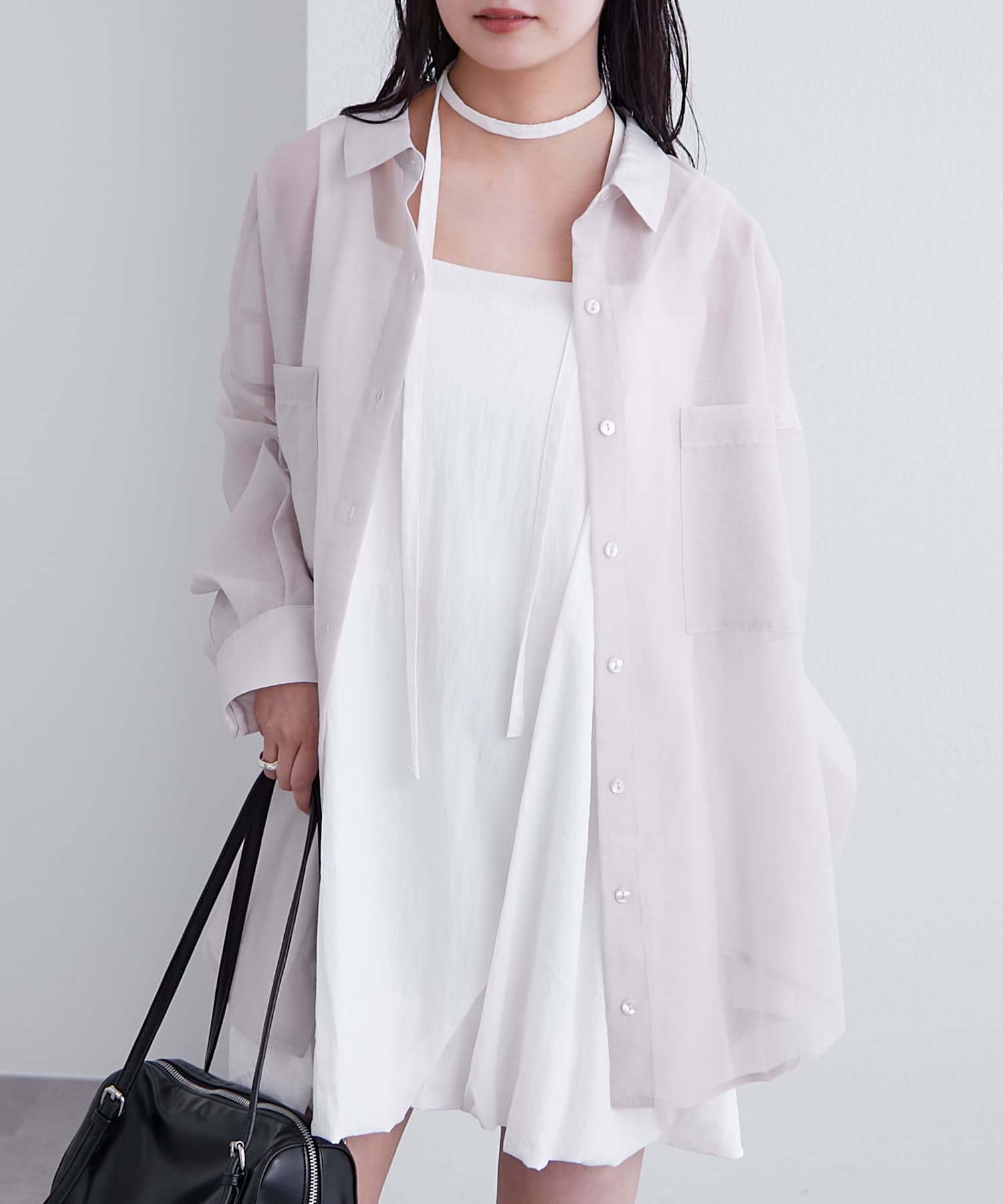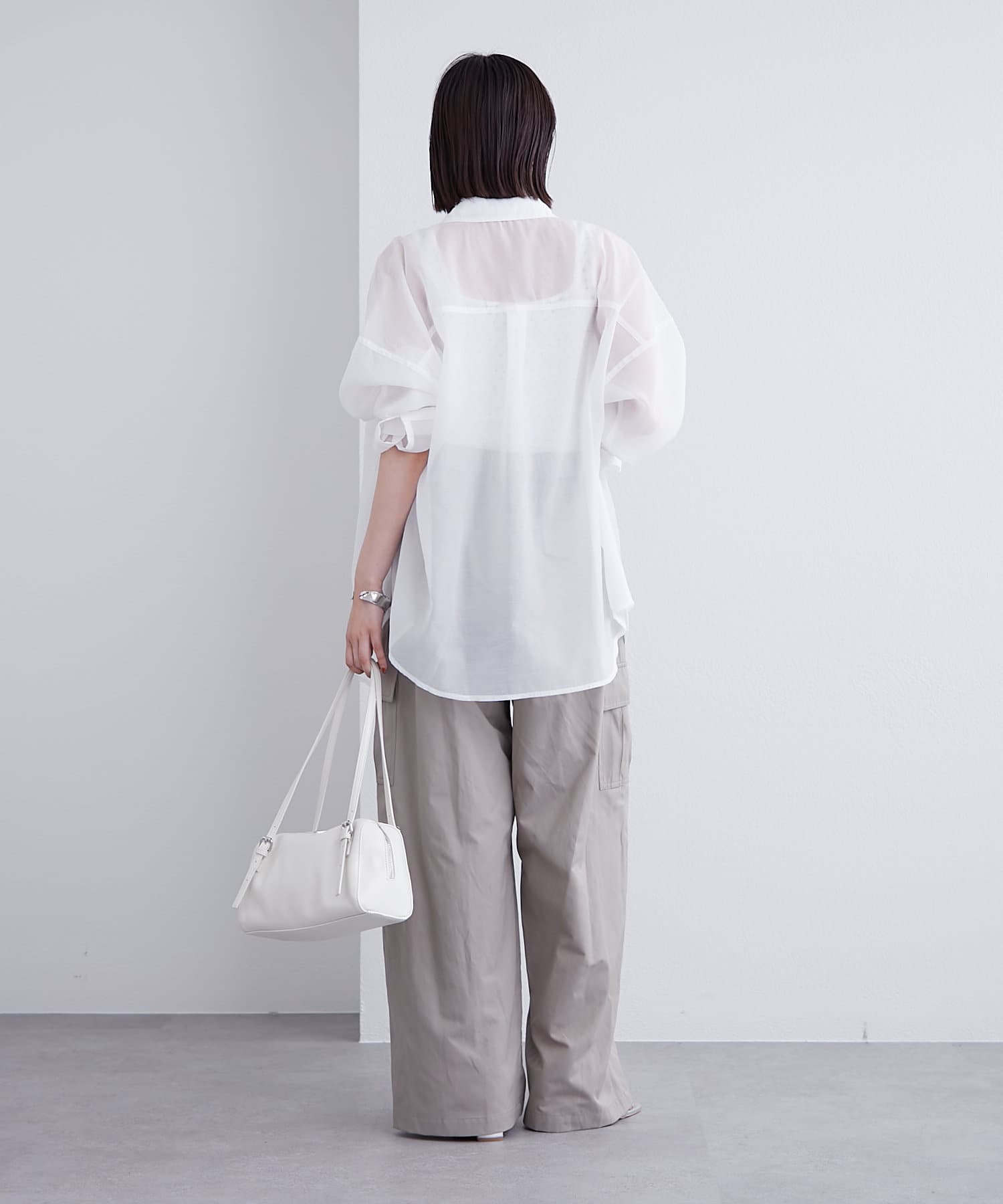 大きめのシルエットですがシアー素材で重たくならず