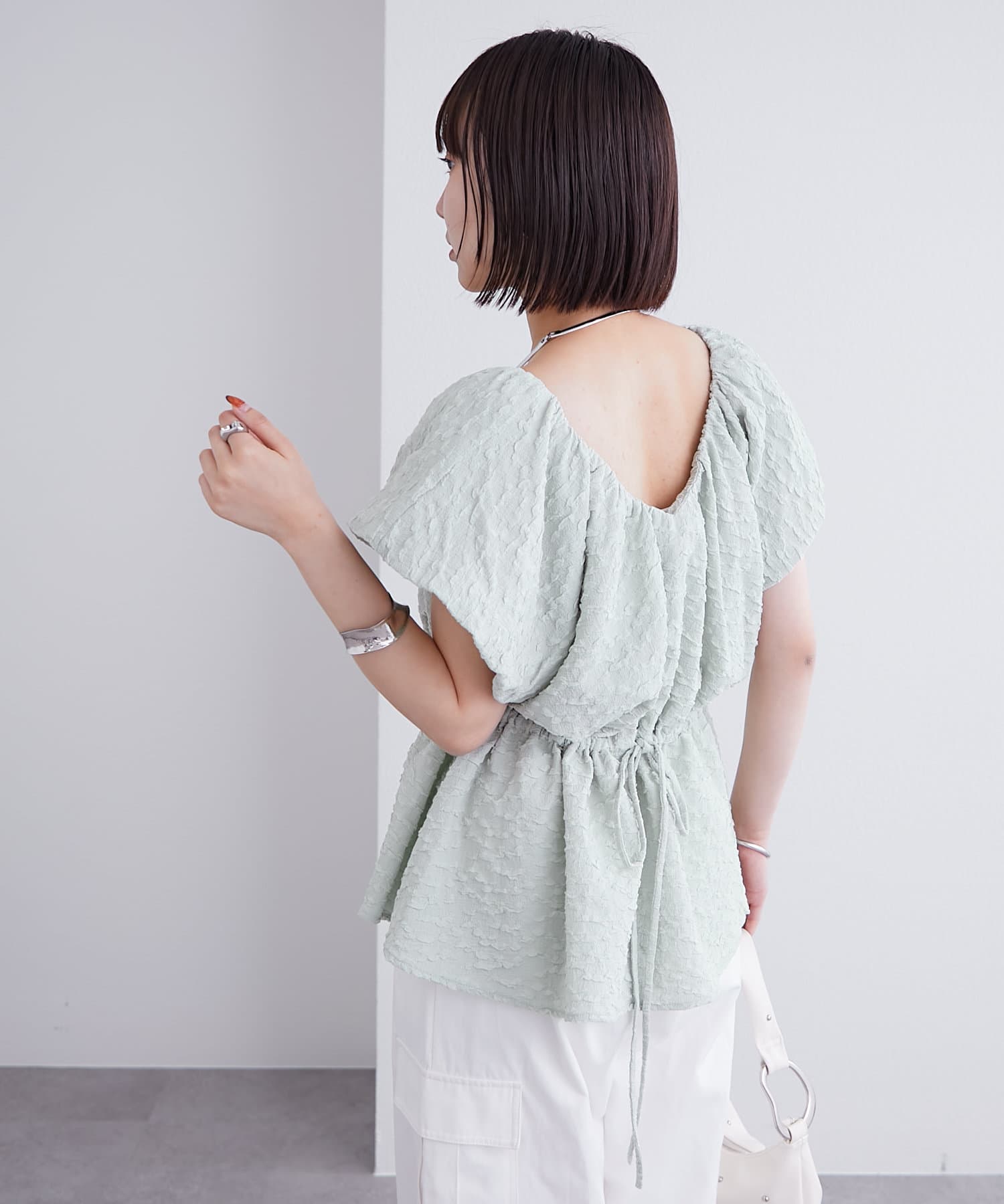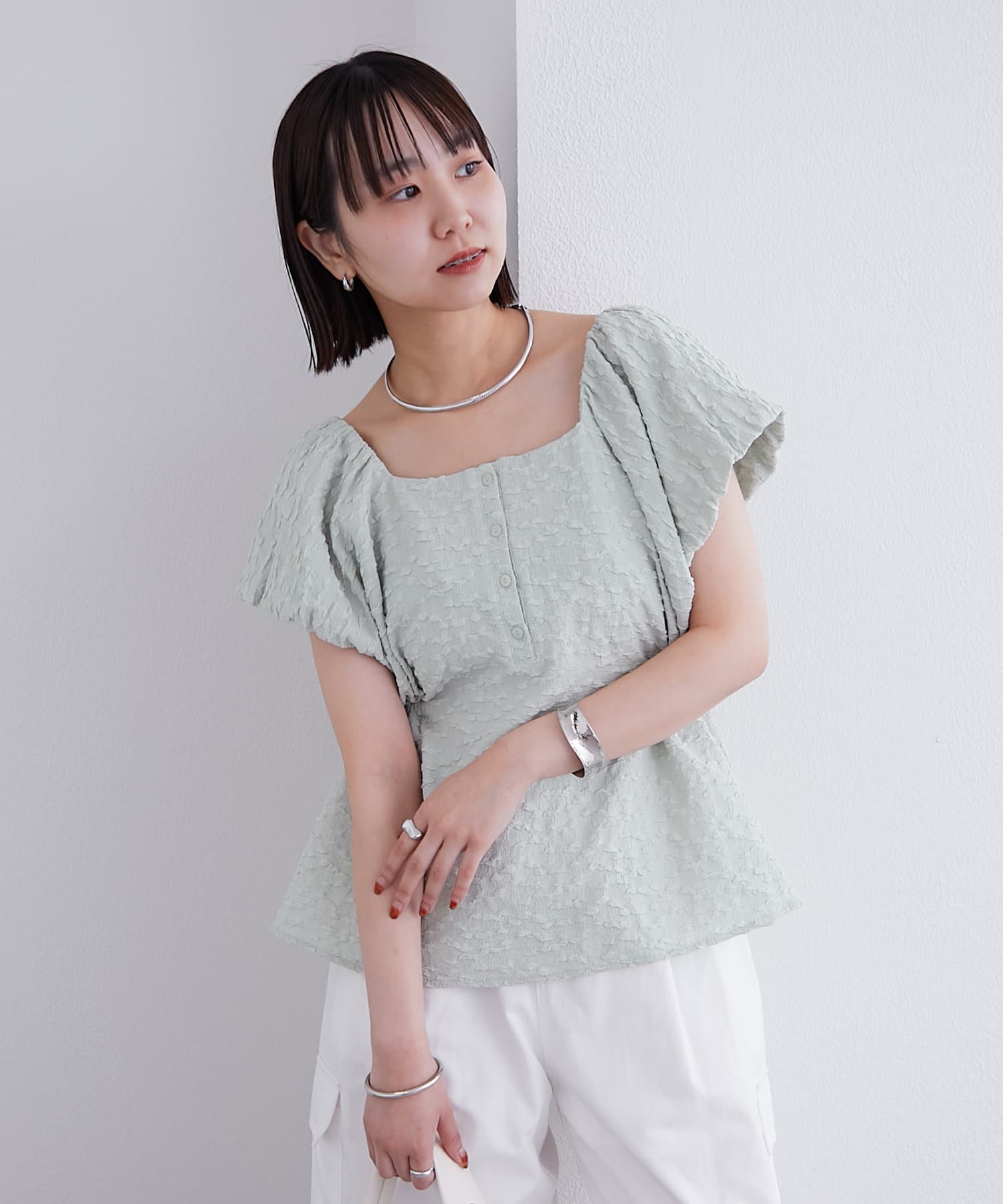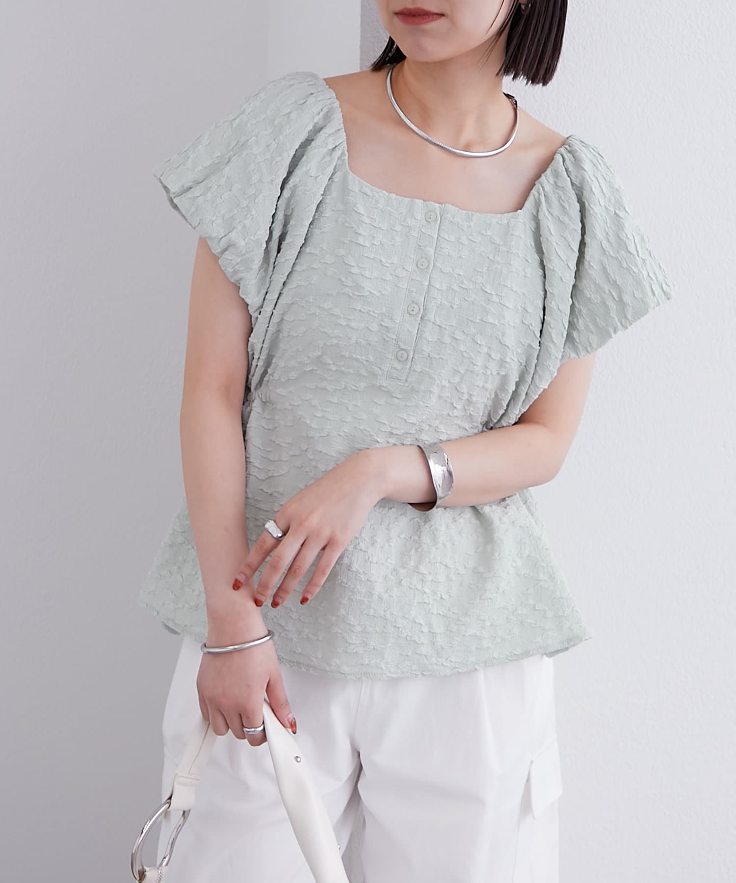 エンボスパフブラウス