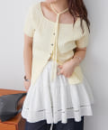 ボリューム感のあるスカートを合わせて甘めなスタイリングに♡