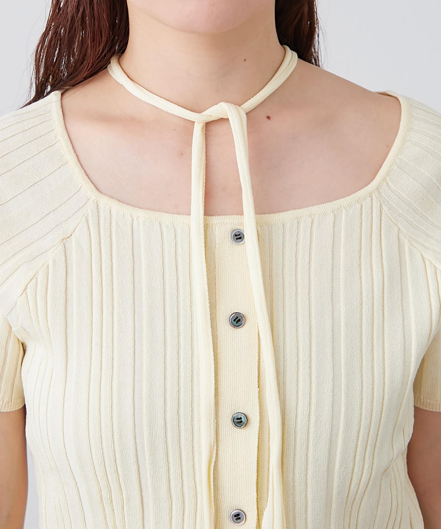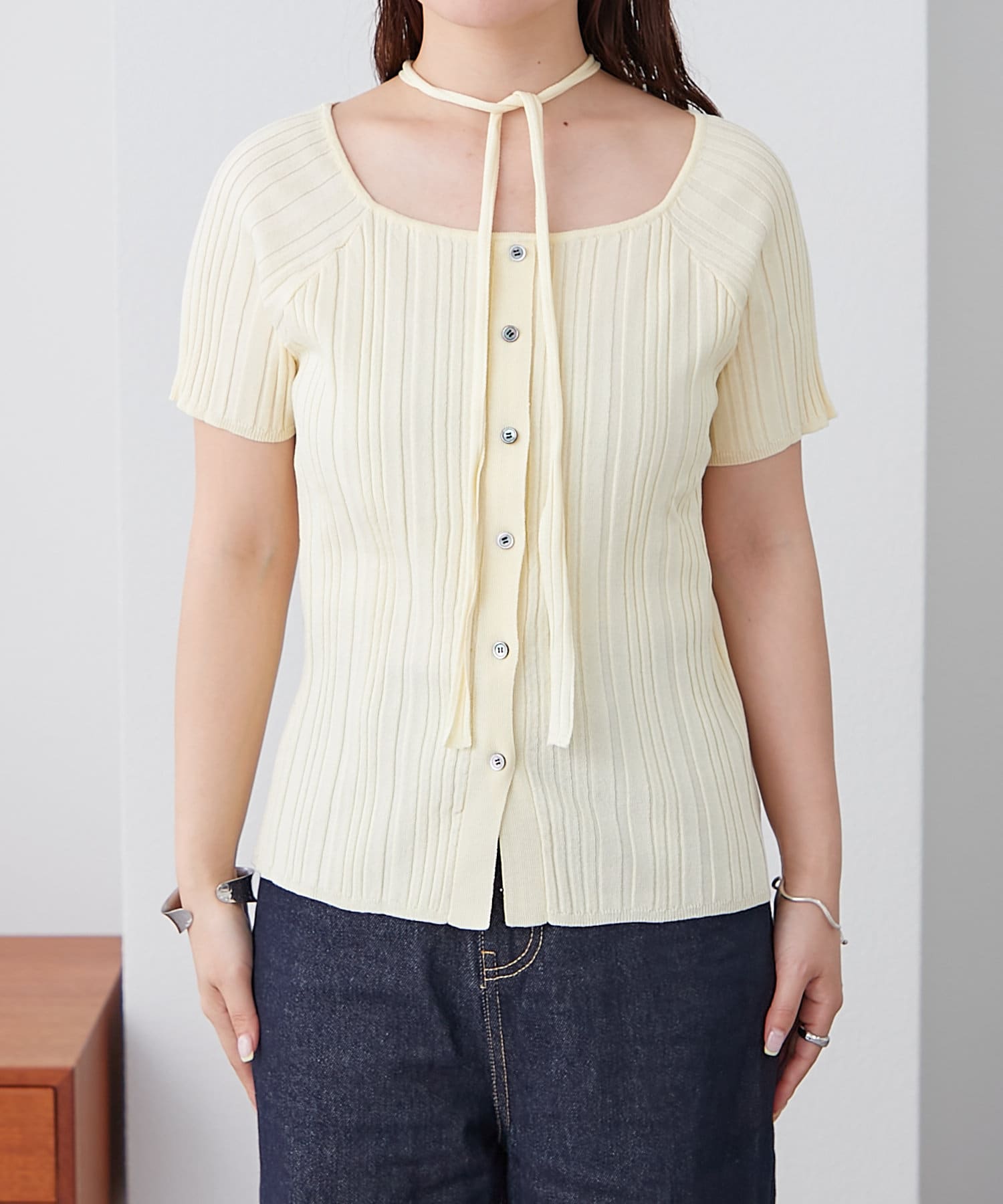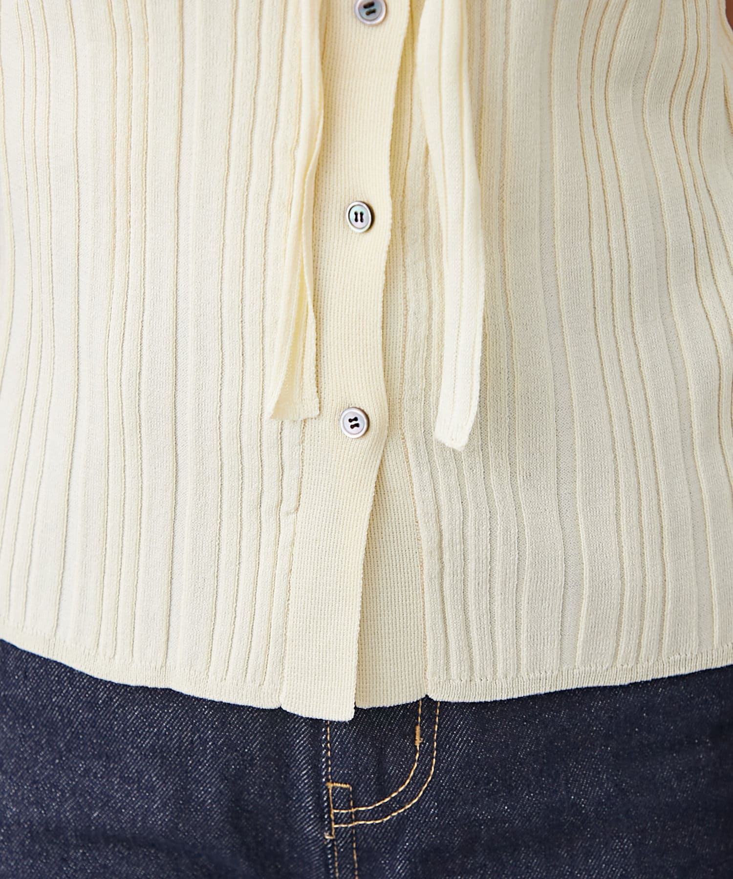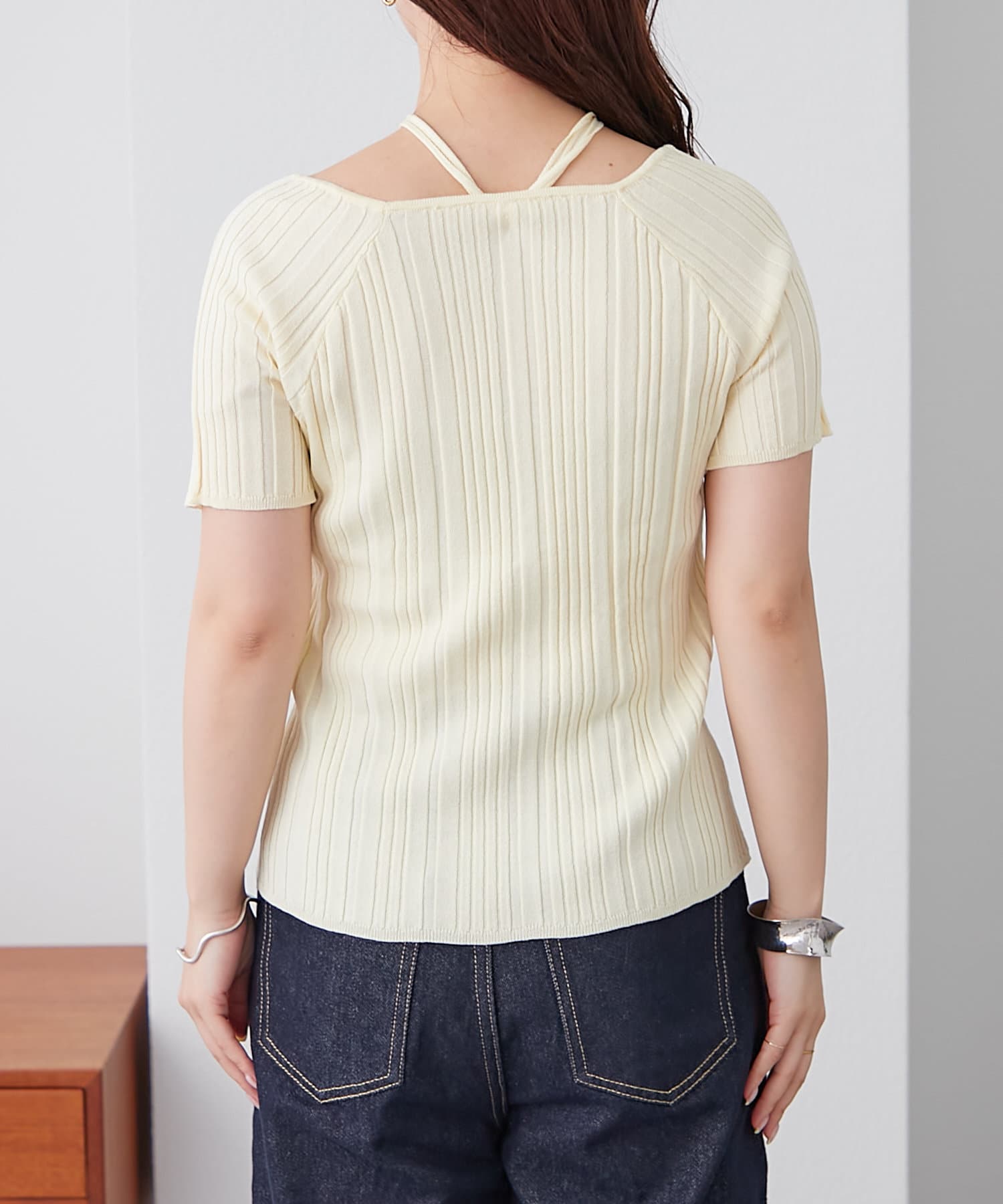 ・デコルテラインを綺麗に見せてくれるリブニット。