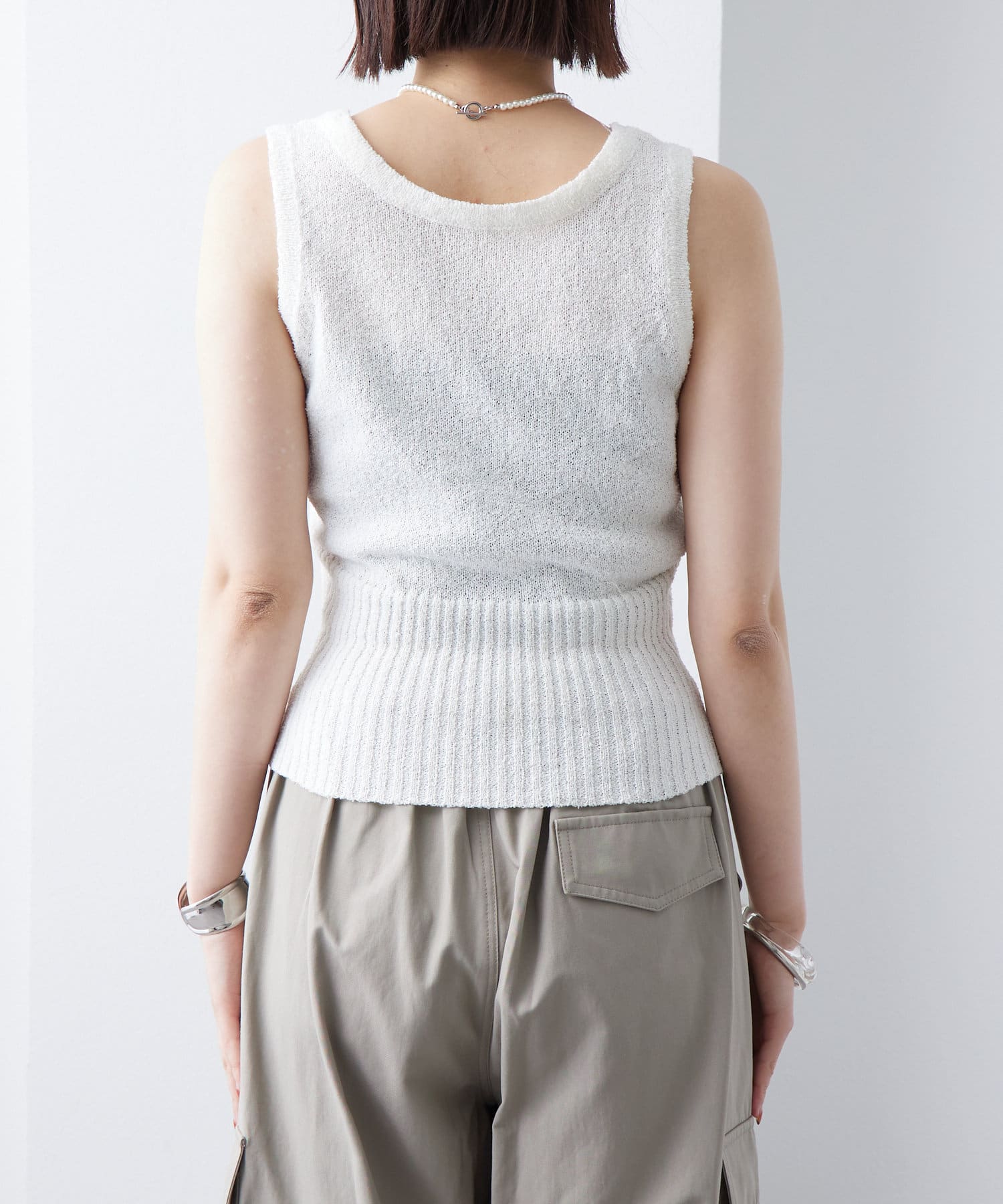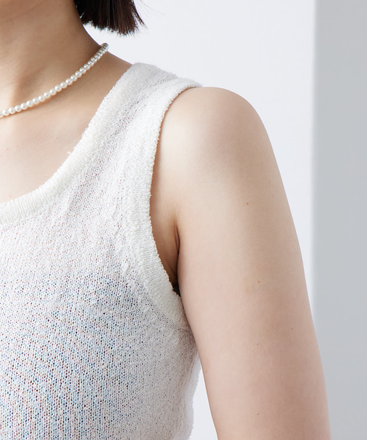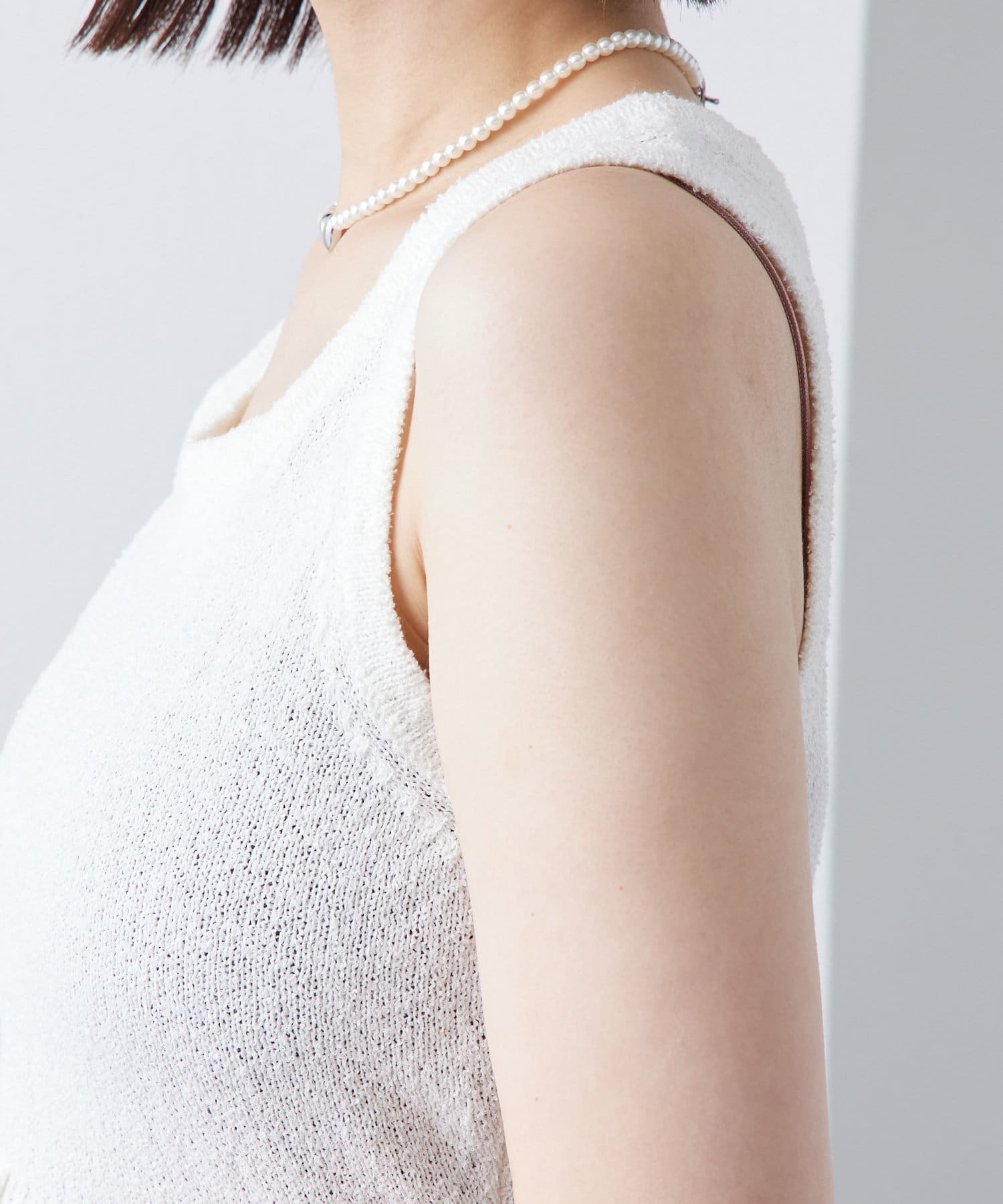 ・もこもことした素材感のあるブークレで仕立てたニットタンクです。