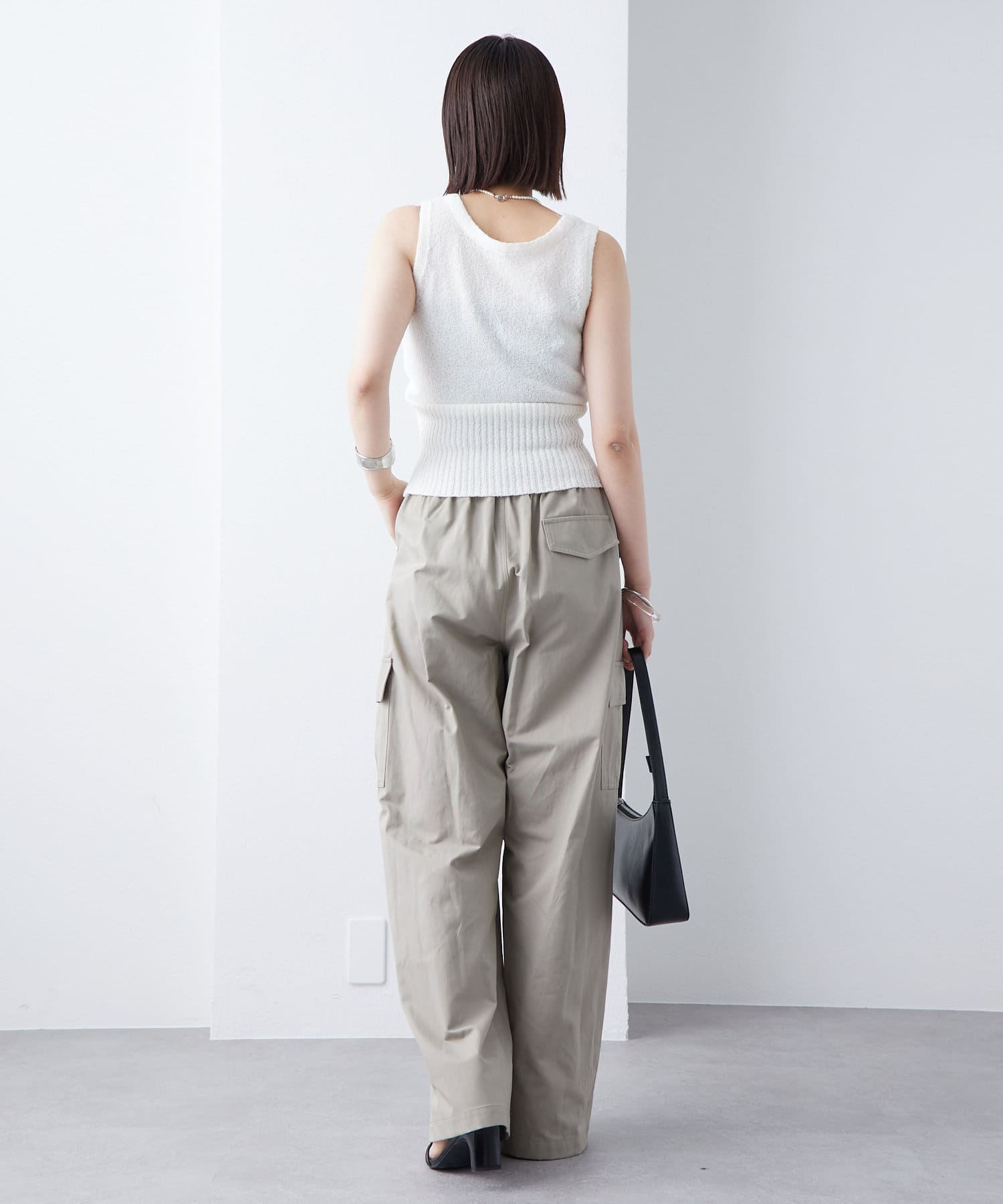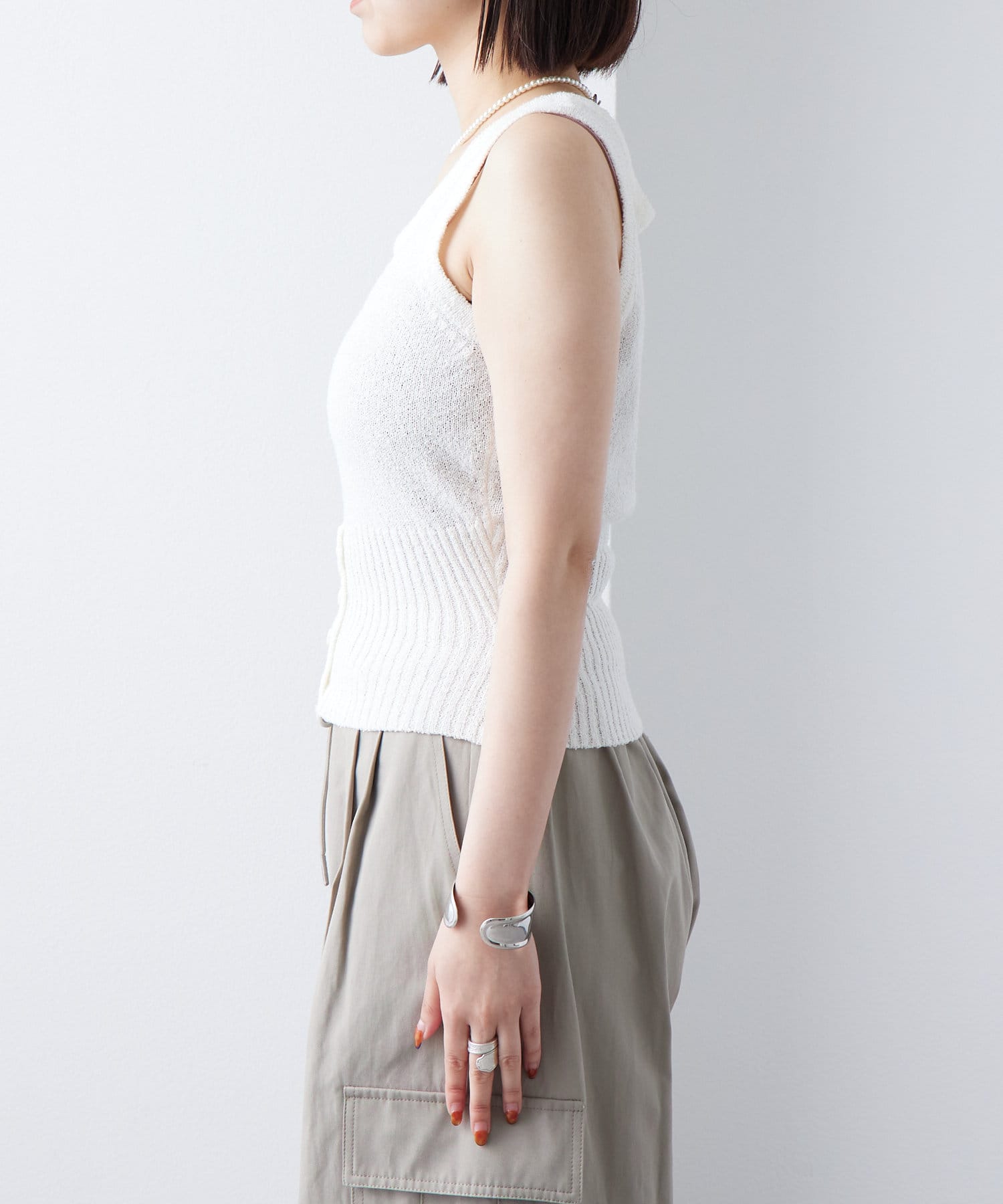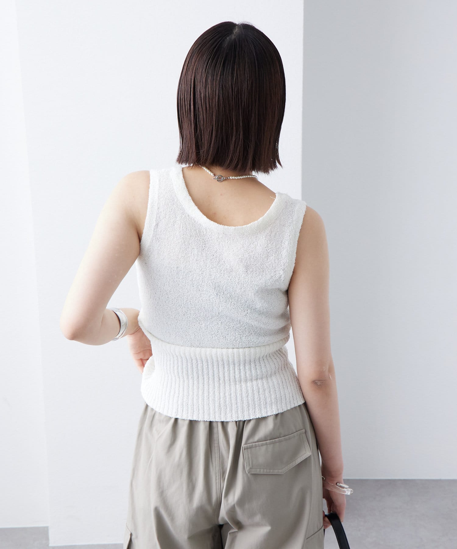・もこもことした素材感のあるブークレで仕立てたニットタンクです。