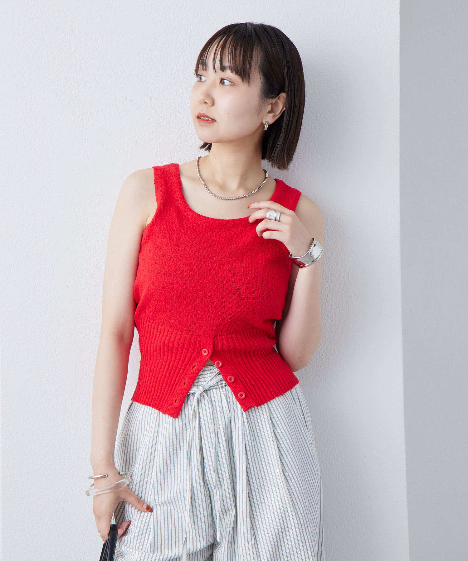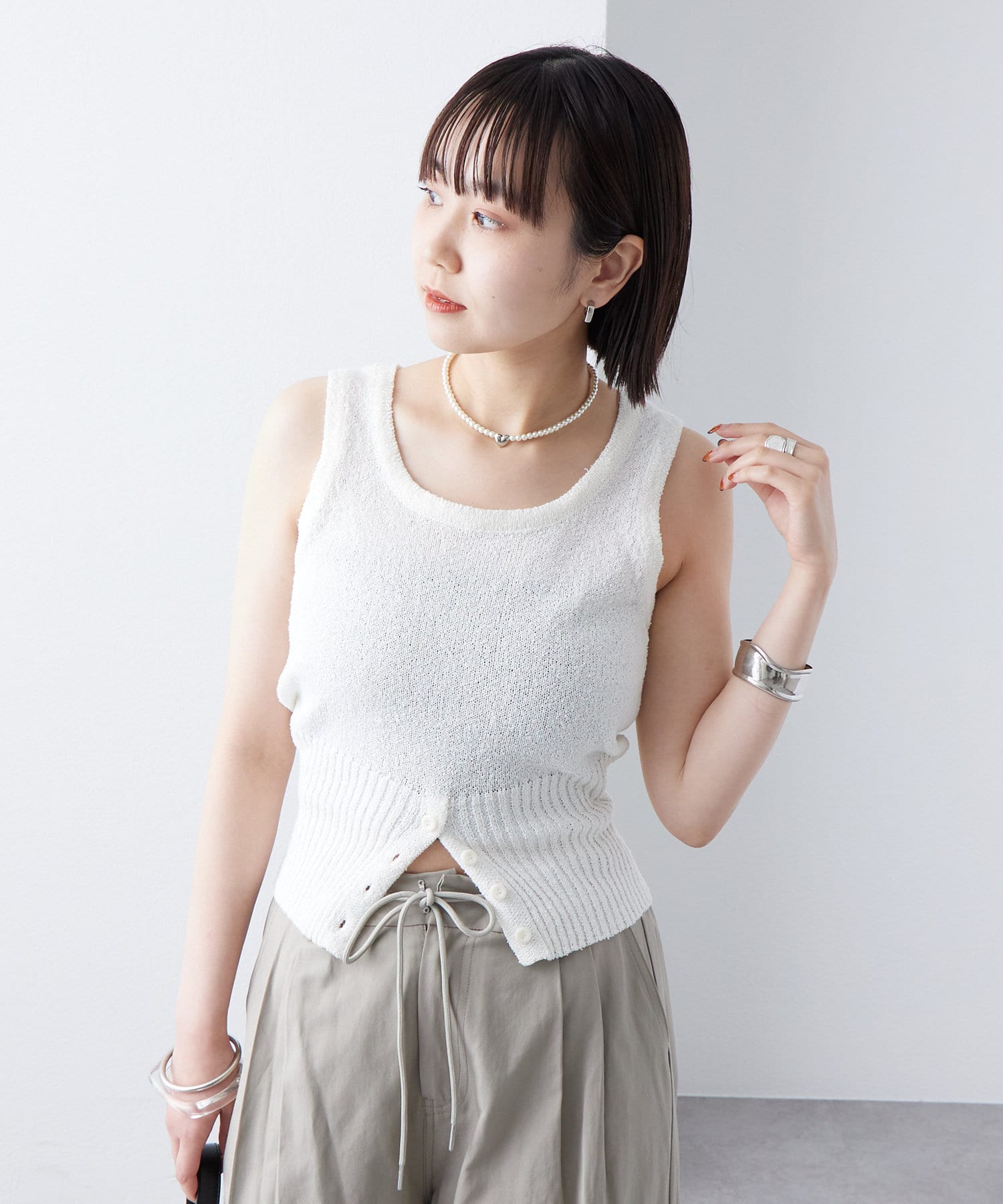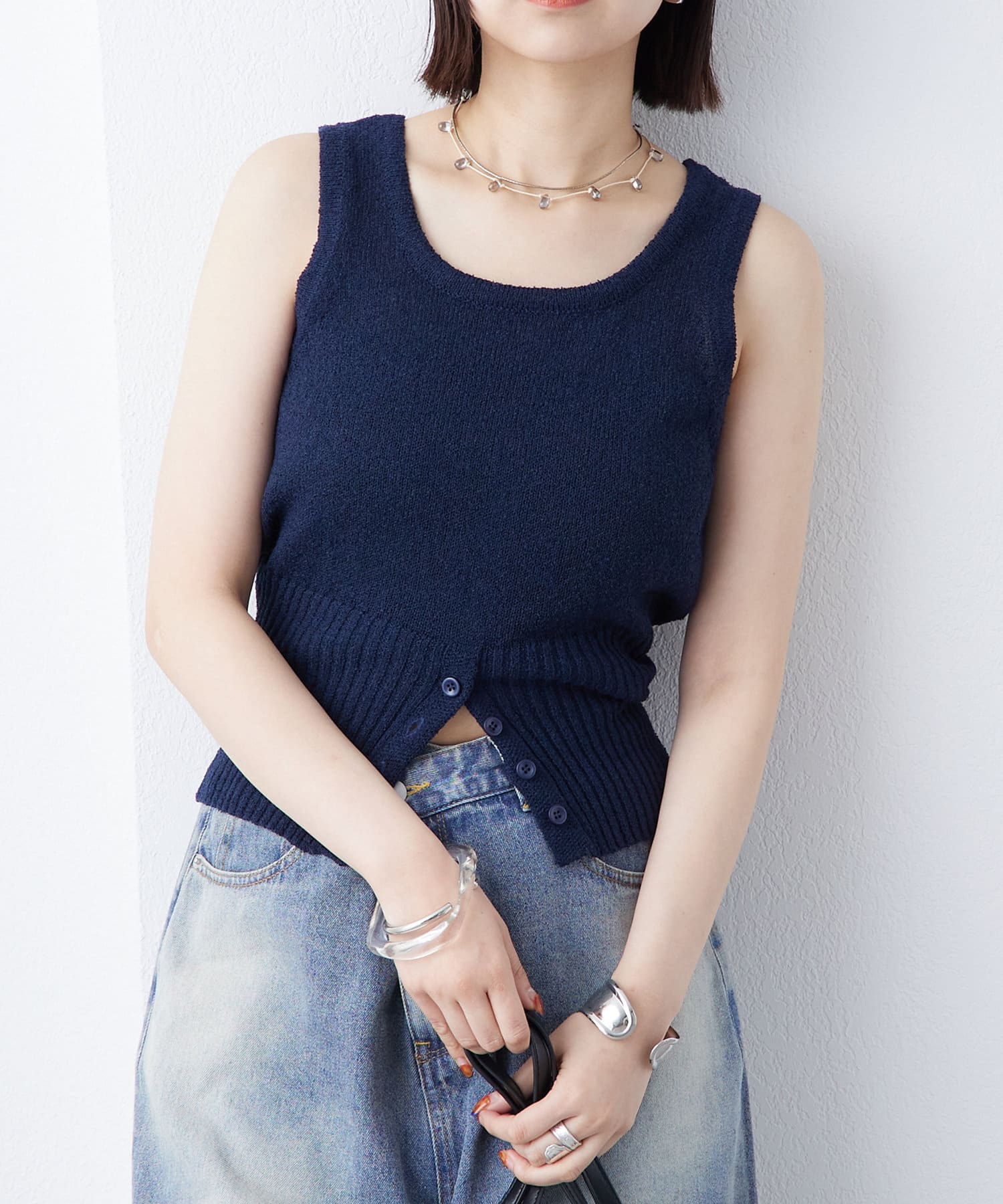 ボタンデザインが特別感のあるブークレボタンタンクが登場!