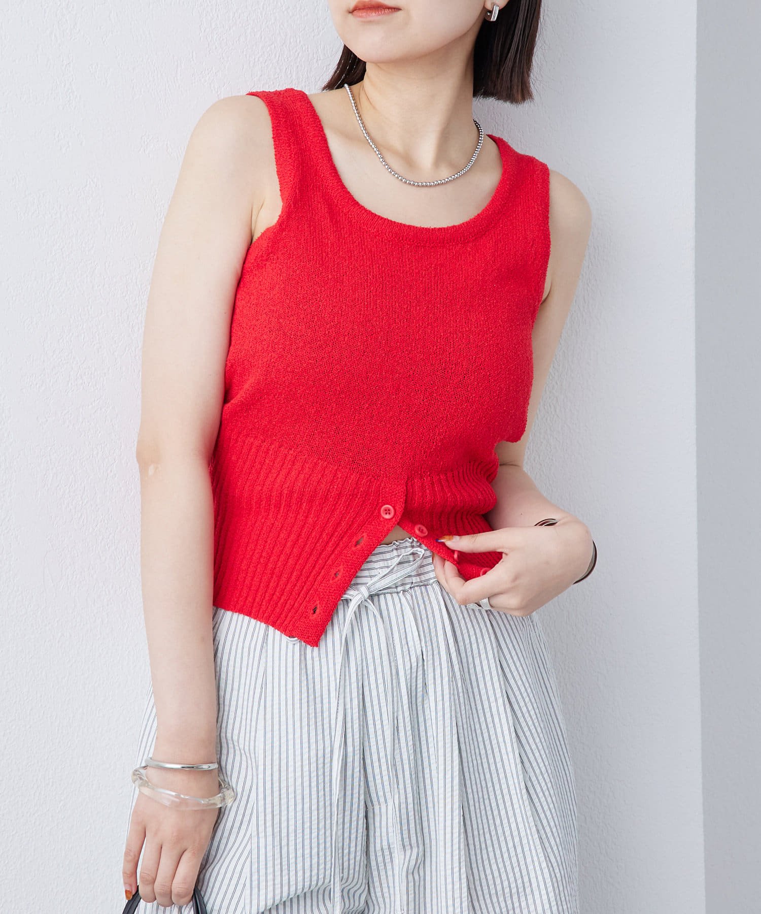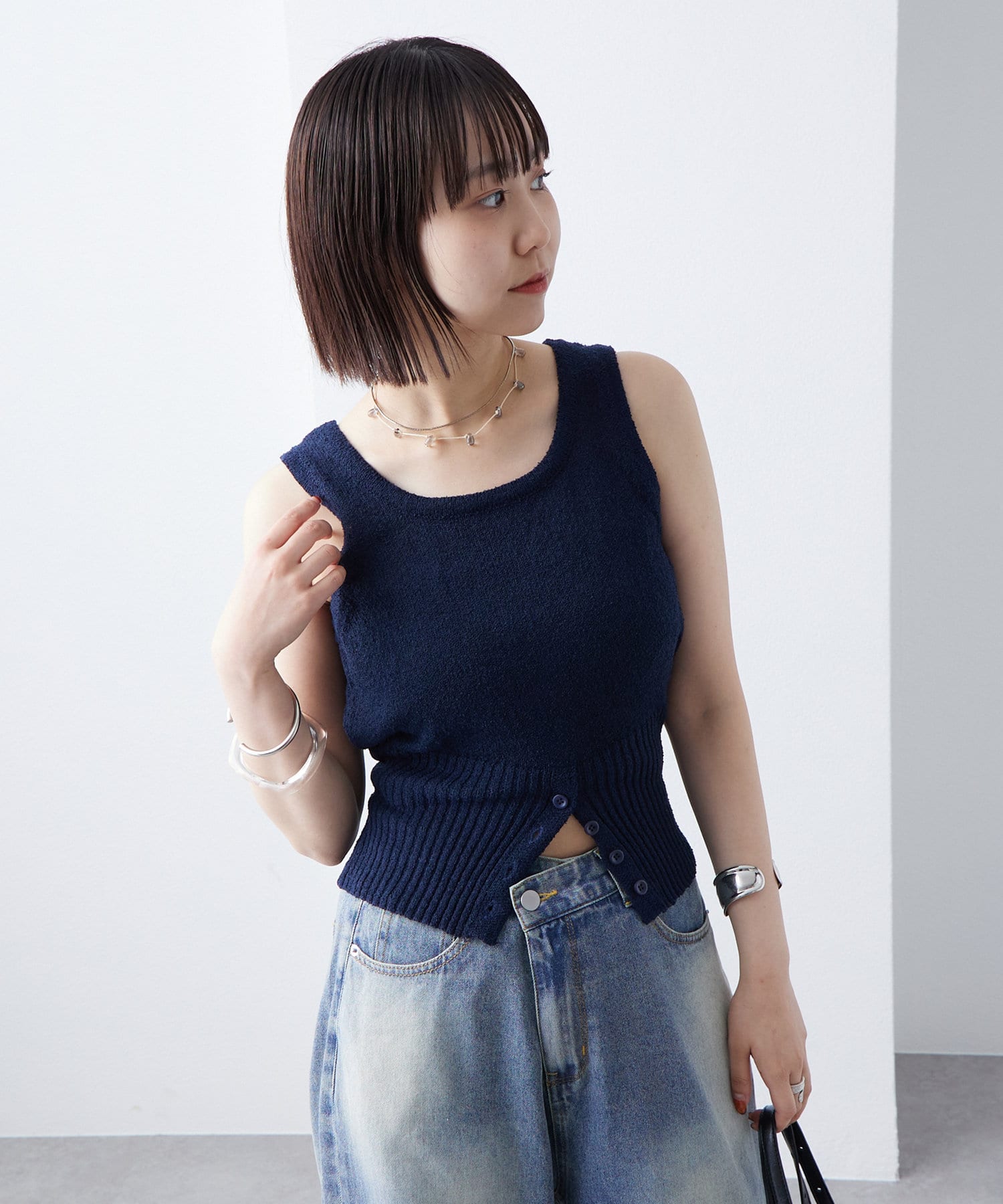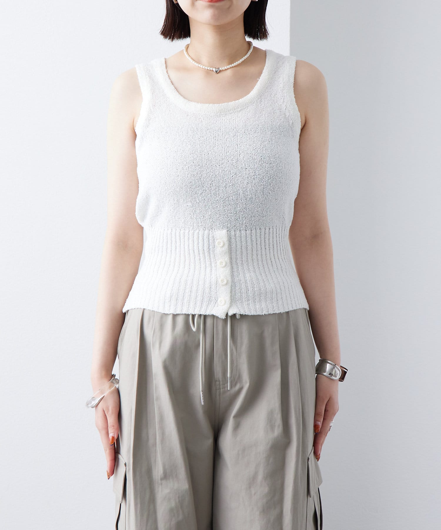 ボタンデザインが特別感のあるブークレボタンタンクが登場!