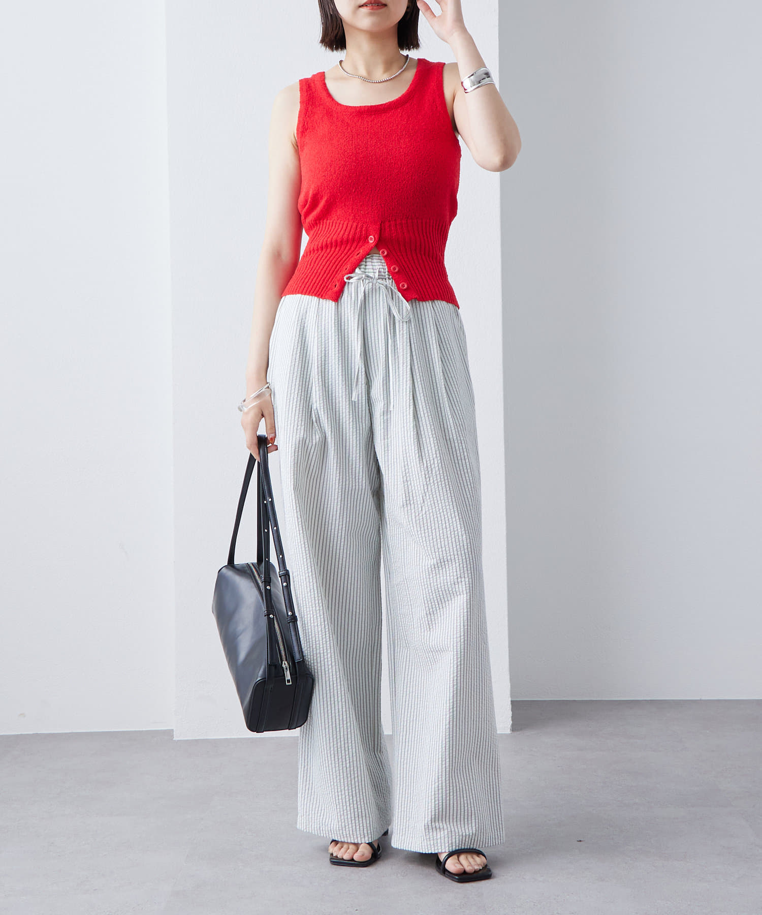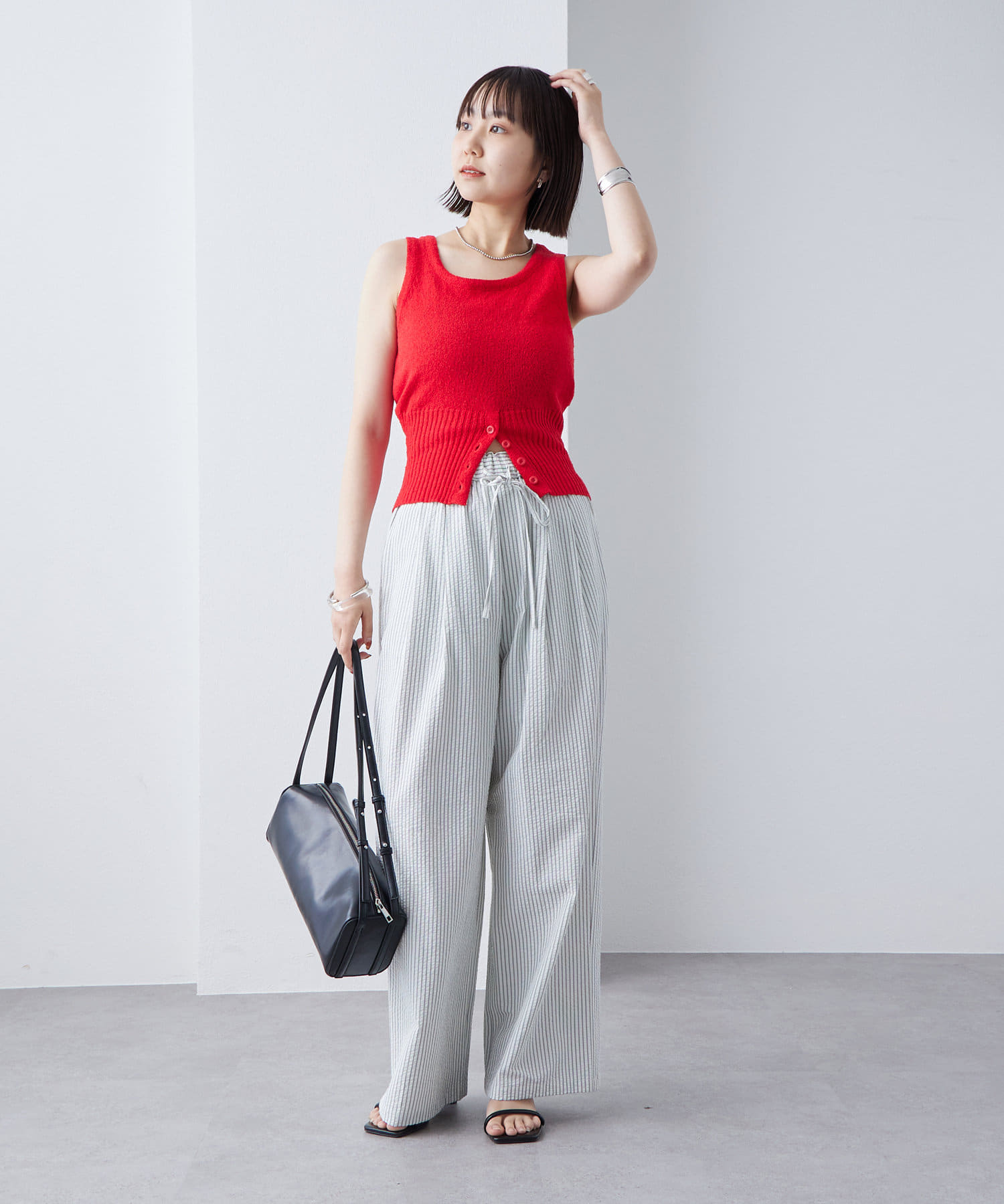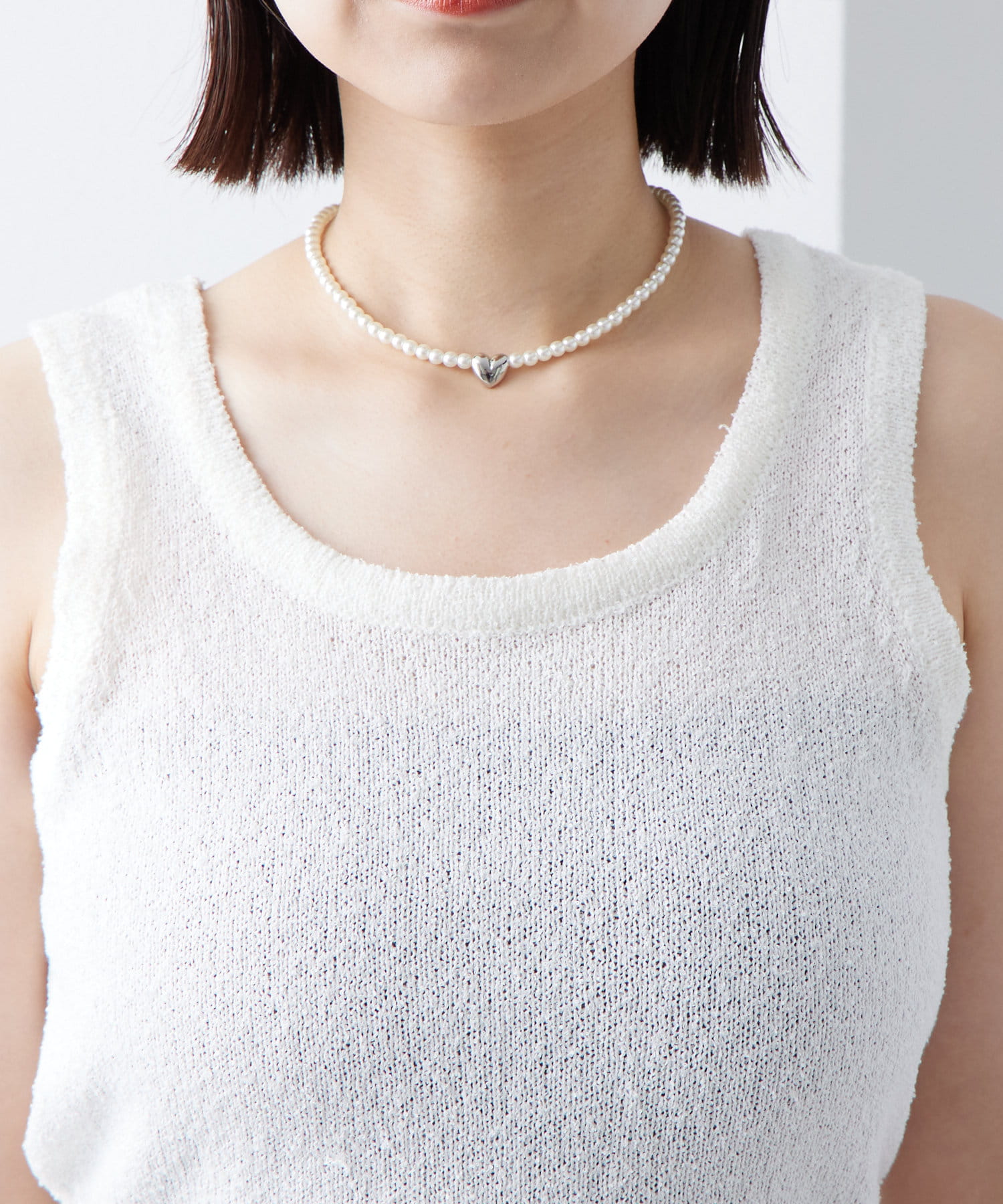 ・もこもことした素材感のあるブークレで仕立てたニットタンクです。