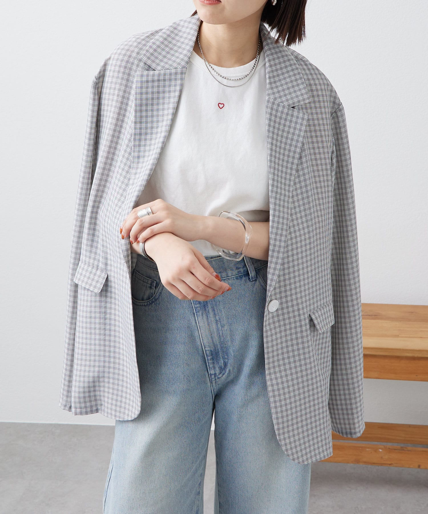 胸元にはさりげないワンポイントのハートが施されており、シンプルなデザインの中にアクセントが◎