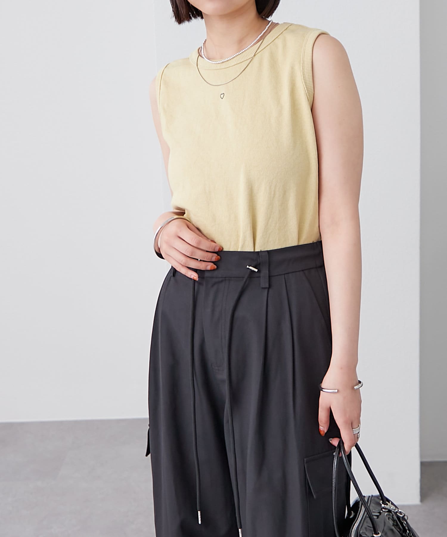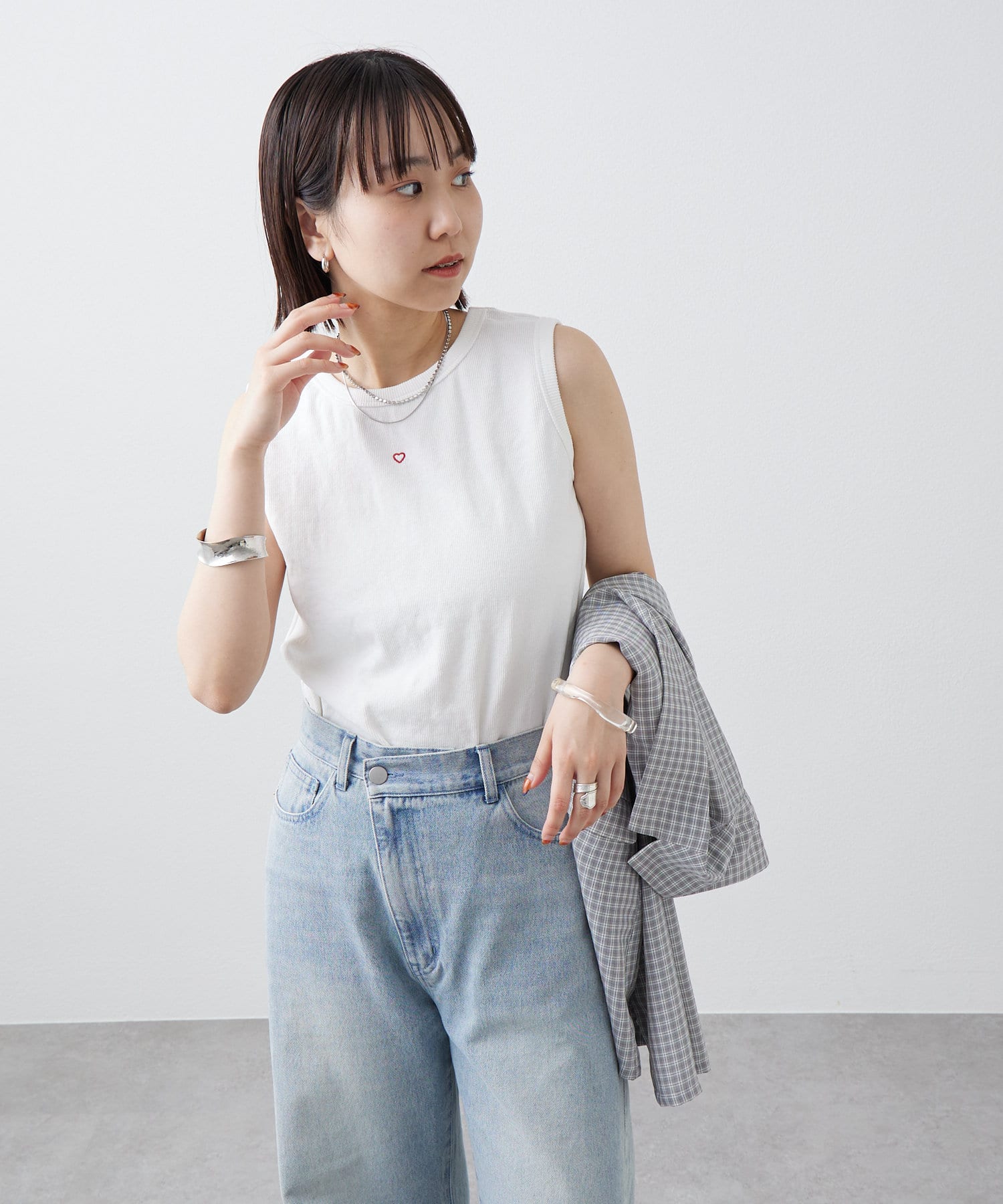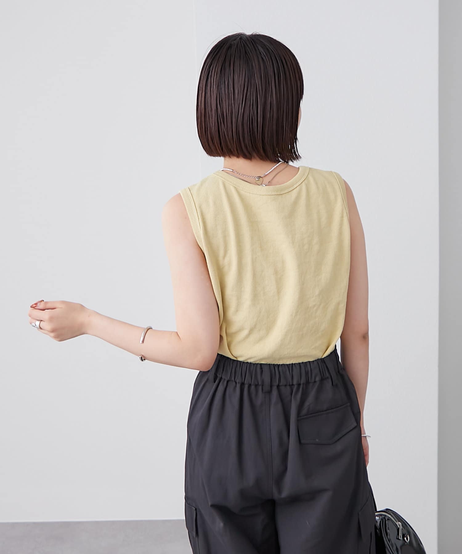 シンプルでデイリー使いしやすいタンクトップTシャツ。