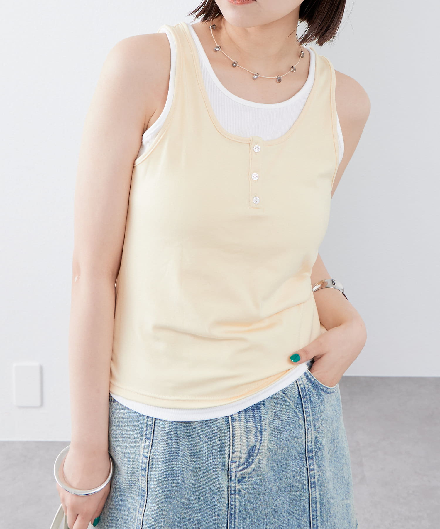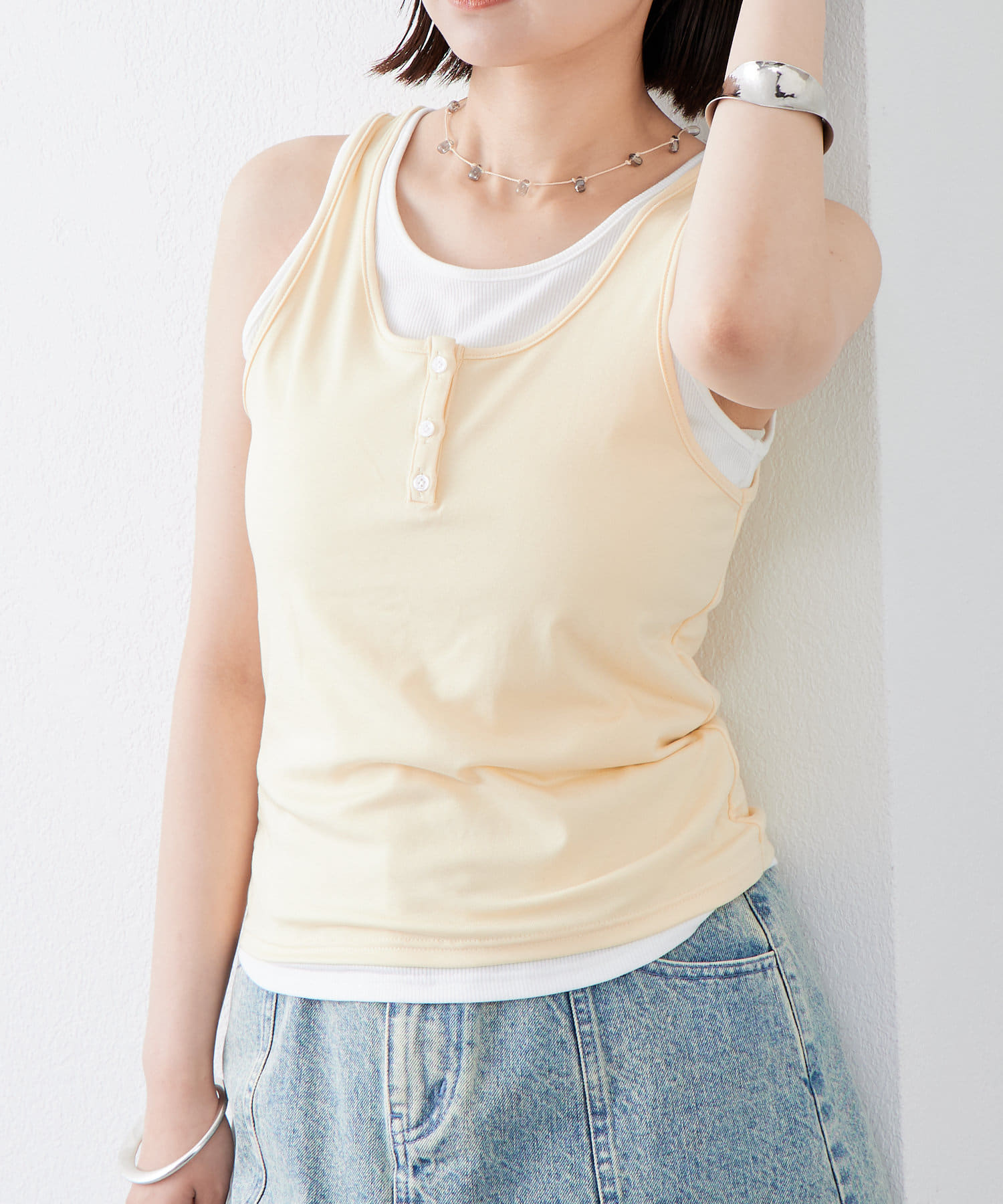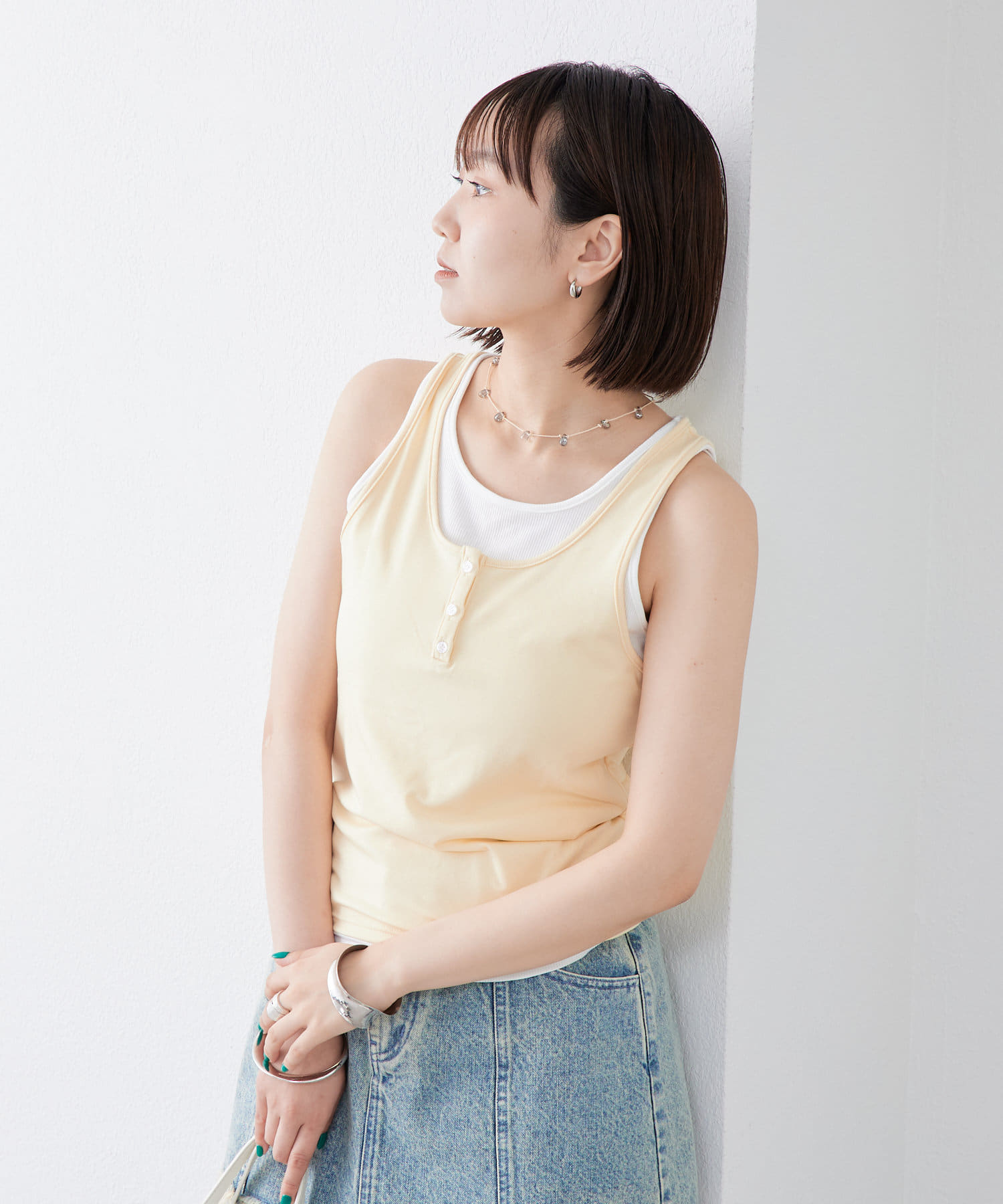 カラーのタンクトップとホワイトのタンクトップのレイヤードが他にはない可愛さです。