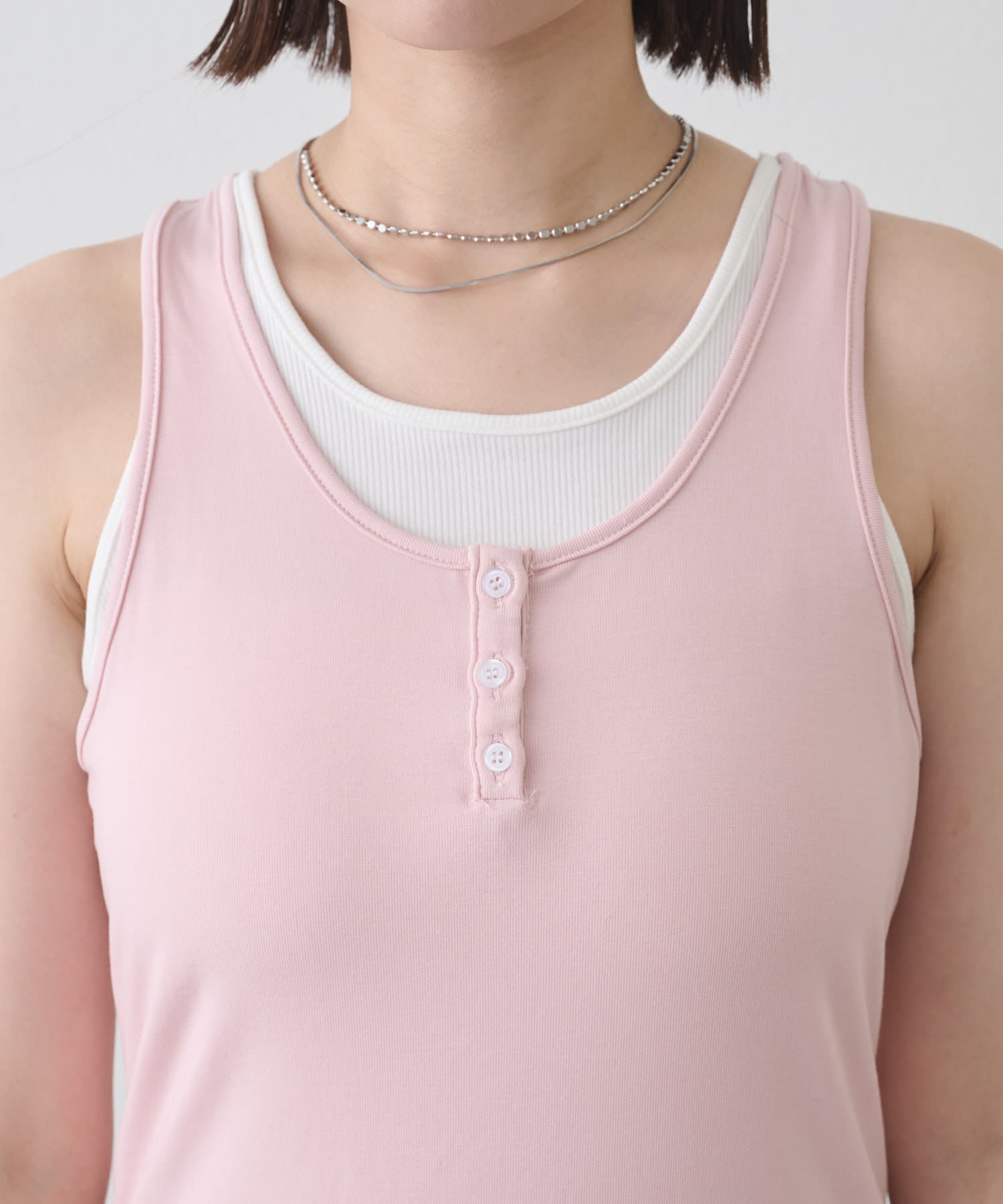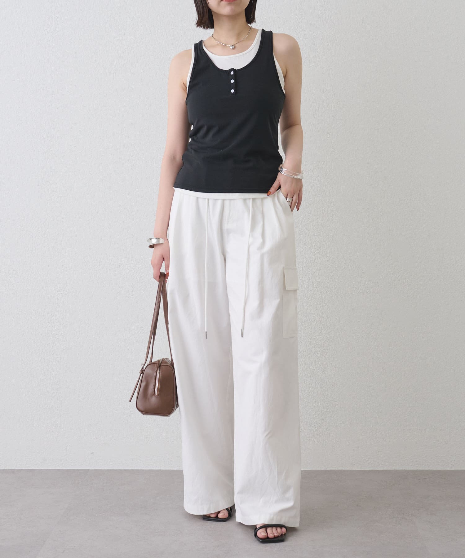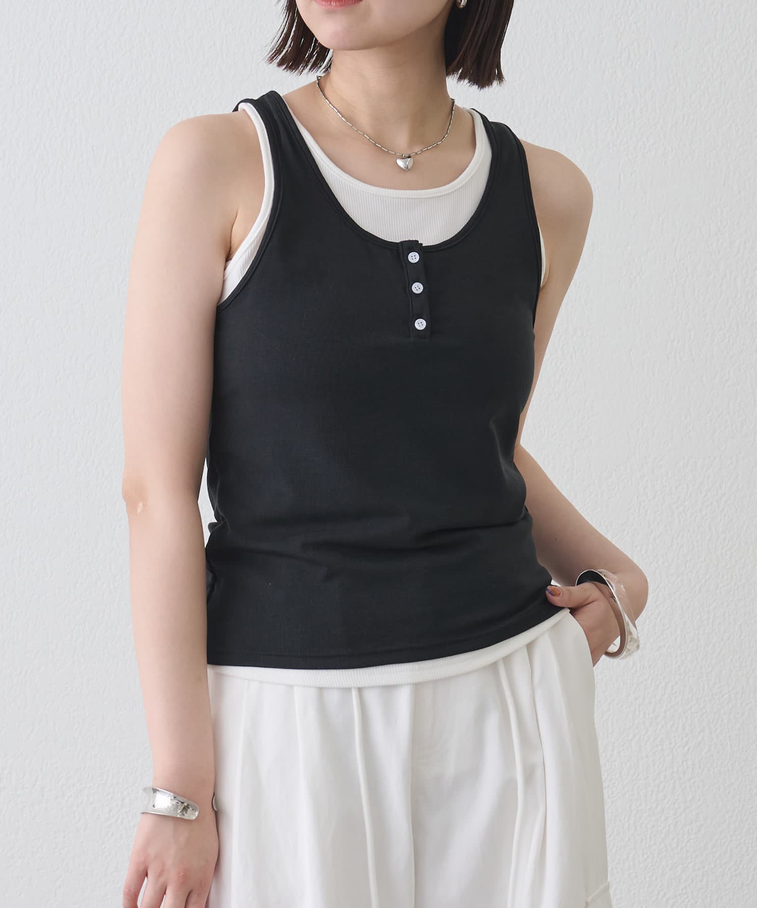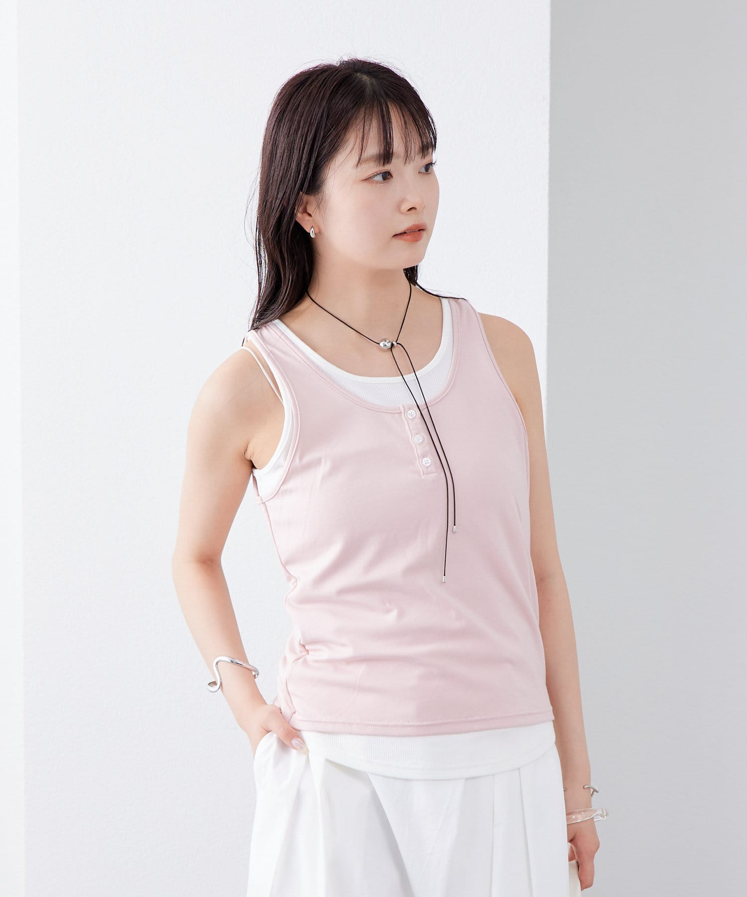 カラーのタンクトップとホワイトのタンクトップのレイヤードが他にはない可愛さです。