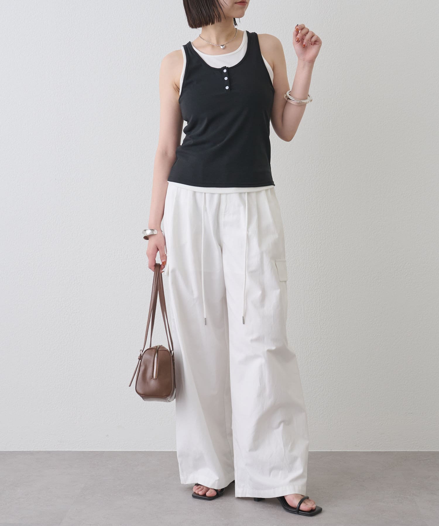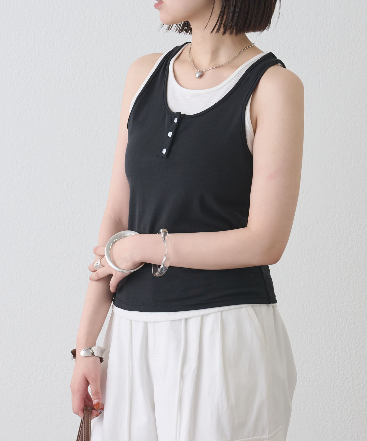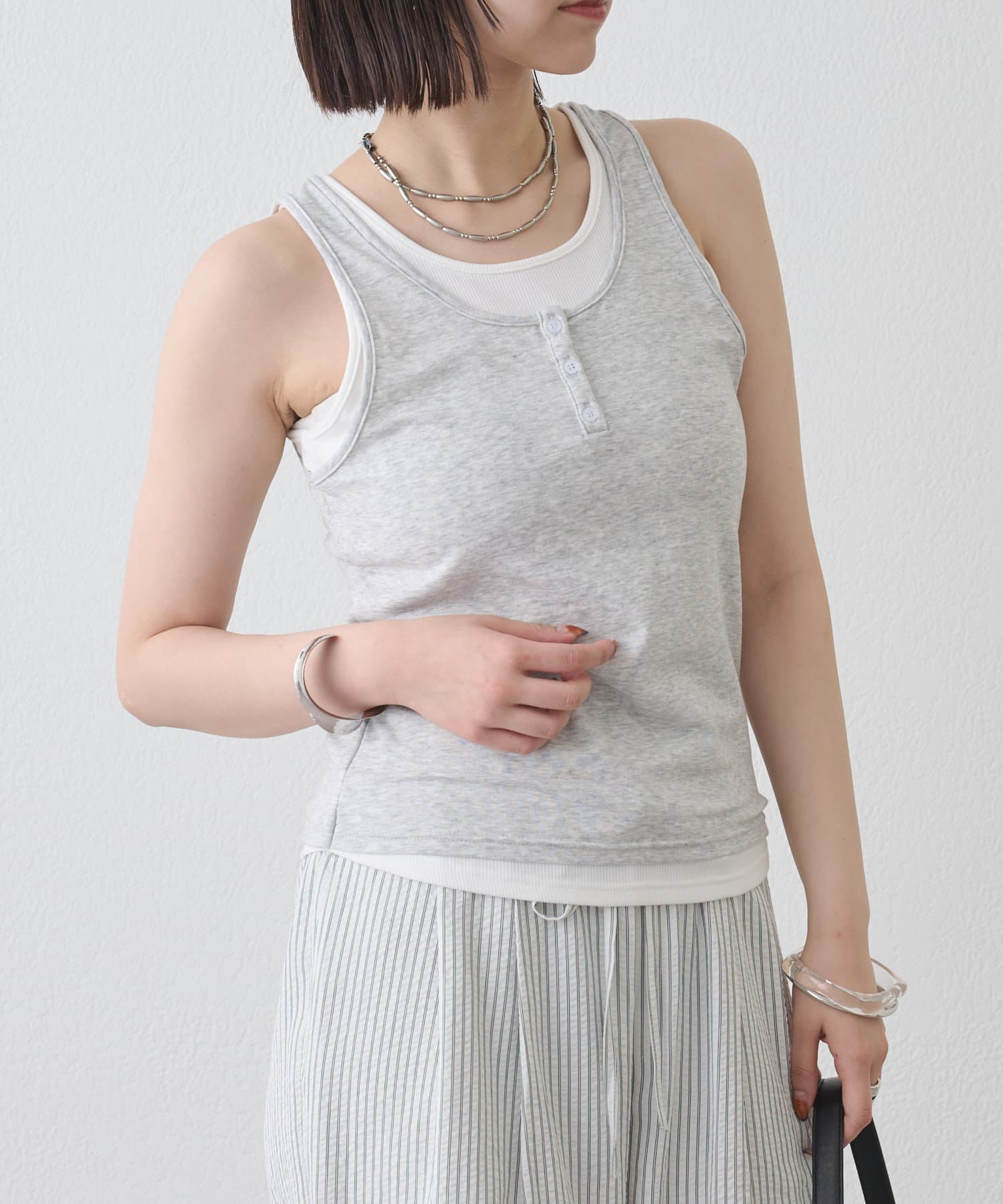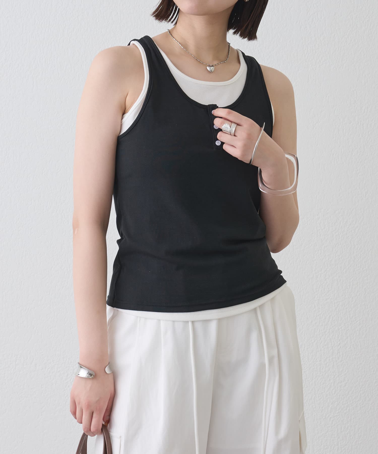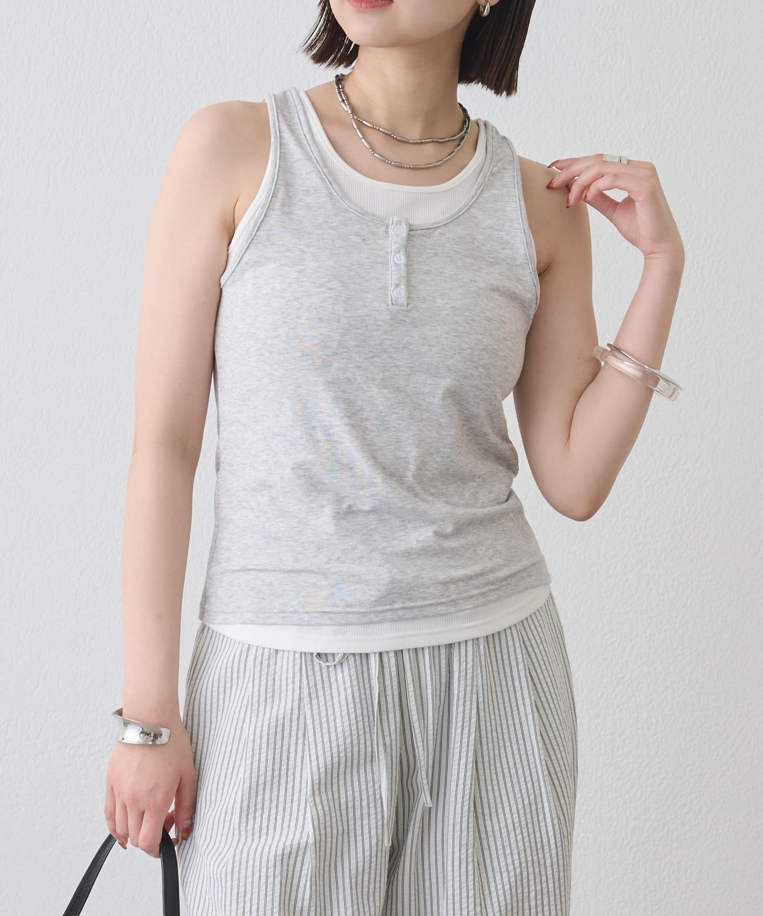 レイヤードデザインでシンプルになりすぎず、こなれ感が与えてくれるタンク◎